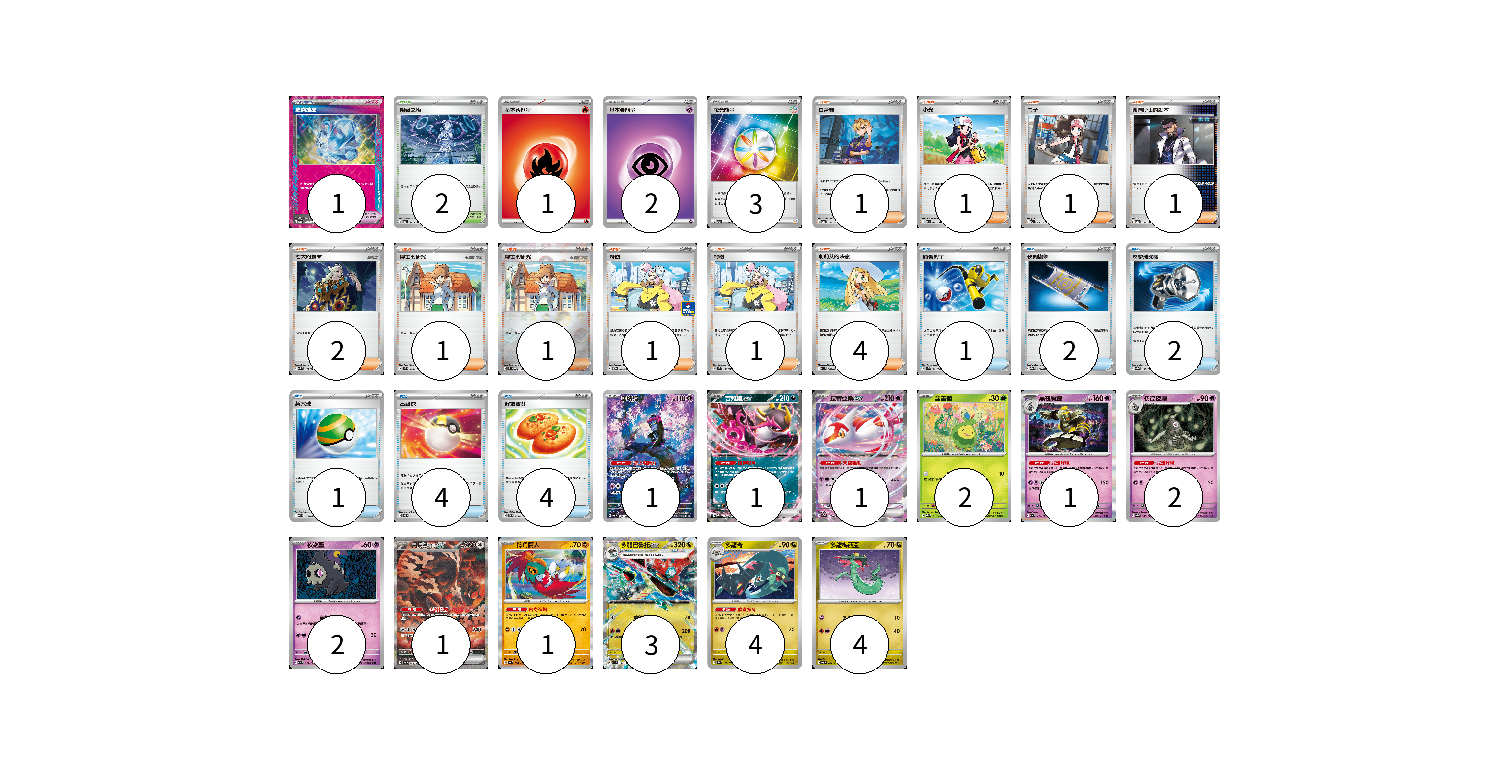 牌組構築方案 以此牌組為基礎新構築牌組 顯示卡面 顯示列表 寶可夢卡(23) 1 1 1 2 1 2 2 1 1 3 4 4 寶可夢道具(1) 1 物品卡(14) 1 2 2 1 4 4 支援者卡(14) 1 1 1 1 2 1 1 1 1 4 競技場卡(2) 2 能量卡(6) 1 2 3 寶可夢卡(23) 卡牌名稱 張數 卡牌名稱 張數 願增猿 SV6 107/101 01 吉雉雞ex M2a 114/193 01 拉帝亞斯ex SV7a 019/064 01 含羞苞 M2a 011/193 02 黑夜魔靈 M2a 074/193 01 彷徨夜靈 SV8a 065/187 02 夜巡靈 M2a 072/193 02 月月熊 赫月ex SV8a 225/187 01 摔角鷹人 SV4a 106/190 01 多龍巴魯托ex M2a 134/193 03 多龍奇 SV8a 119/187 04 多龍梅西亞 SV6 079/101 04 寶可夢道具(1) 卡牌名稱 張數 卡牌名稱 張數 璀璨結晶 SV8a 152/187 01 物品卡(14) 卡牌名稱 張數 卡牌名稱 張數 厲害釣竿 SVK 011/042 01 夜間擔架 MBG 017/022 02 反擊捕捉器 SV8a 139/187 02 巢穴球 SVEL 011/020 01 高級球 SVOD 012/020 04 好友寶芬 SVTH 009/018 04 支援者卡(14) 卡牌名稱 張數 卡牌名稱 張數 白蕾雅 SV8a 176/187 01 小光 M2 077/080 01 鬥子 M2a 172/193 01 弗圖博士的劇本 SV8a 175/187 01 老大的指令 SVM 172/175 02 博士的研究 SVM 166/175 01 博士的研究 SV11B 084/086 01 奇樹 SV-P 106/SV-P 01 奇樹 SVM 160/175 01 莉莉艾的決意 M1L 062/063 04 競技場卡(2) 卡牌名稱 張數 卡牌名稱 張數 阻礙之塔 SV8a 181/187 02 能量卡(6) 卡牌名稱 張數 卡牌名稱 張數 基本火能量 sv-p FIR 01 基本超能量 sv-p PSY 02 夜光能量 SVK 042/042 03 以此牌組為基礎新構築牌組 牌組編碼 EsIjTJ-wevAJh-wiRWNc copy 列印牌組單 牌組編碼已複製 分享至SNS