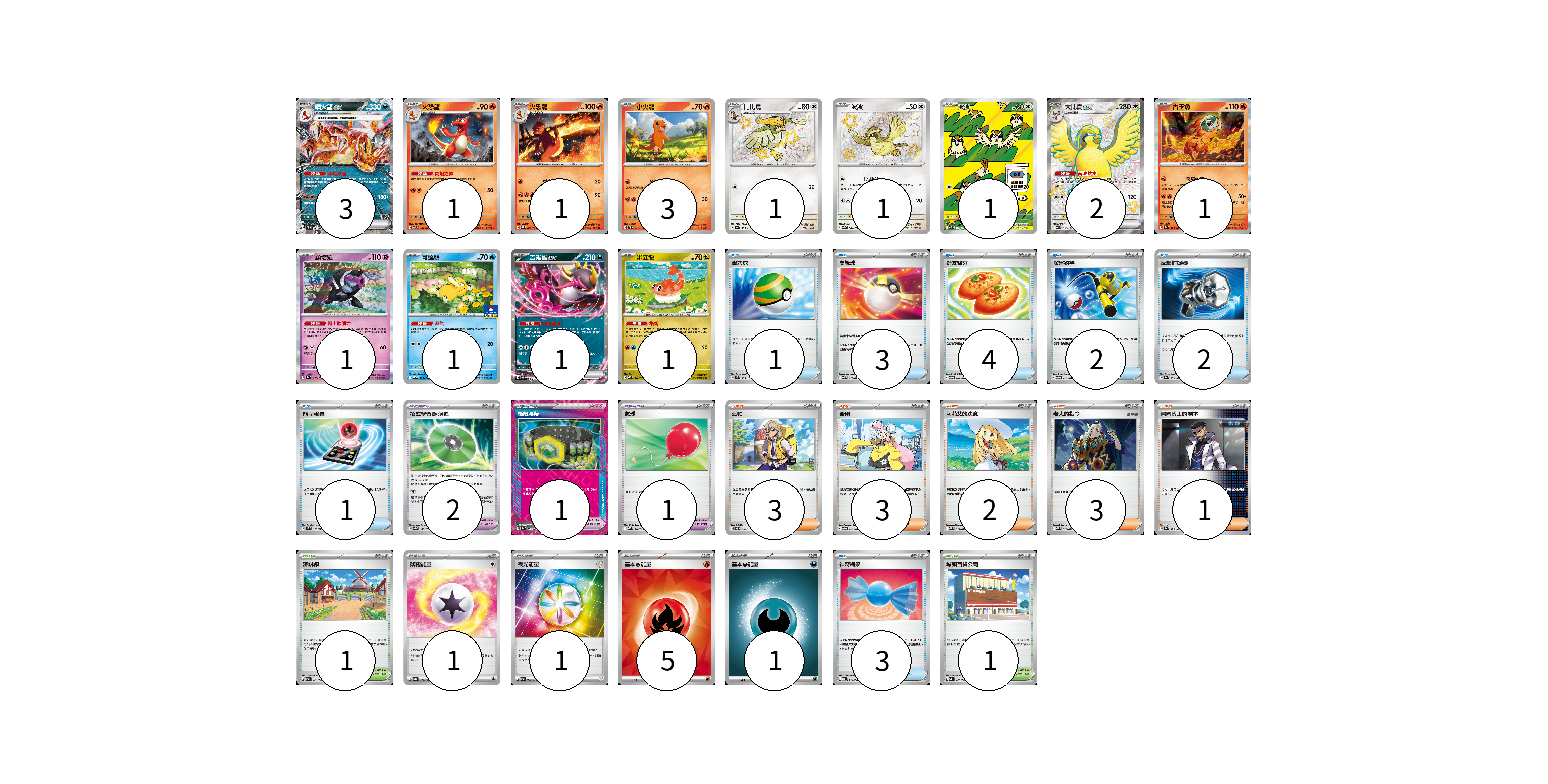 牌組構築方案 以此牌組為基礎新構築牌組 顯示卡面 顯示列表 寶可夢卡(18) 3 1 1 3 1 1 1 2 1 1 1 1 1 寶可夢道具(4) 2 1 1 物品卡(16) 1 3 4 2 2 1 3 支援者卡(12) 3 3 2 3 1 競技場卡(2) 1 1 能量卡(8) 1 1 5 1 寶可夢卡(18) 卡牌名稱 張數 卡牌名稱 張數 噴火龍ex SVTL 006/021 03 火恐龍 SVTL 002/021 01 火恐龍 SVQL 002/022 01 小火龍 SVTL 001/021 03 比比鳥 SV4a 305/190 01 波波 SV4a 304/190 01 波波 SV3 118/108 01 大比鳥ex SV4a 335/190 02 古玉魚 SV8a 025/187 01 願增猿 SV8a 075/187 01 可達鴨 SV-P 220/SV-P 01 吉雉雞ex SVOD 004/020 01 米立龍 MBD 010/022 01 寶可夢道具(4) 卡牌名稱 張數 卡牌名稱 張數 招式學習器 演進 SV8a 160/187 02 極限腰帶 SV8a 159/187 01 氣球 MBD 018/022 01 物品卡(16) 卡牌名稱 張數 卡牌名稱 張數 巢穴球 SVM 133/175 01 高級球 SVQP 015/023 03 好友寶芬 SVOD 011/020 04 厲害釣竿 SVOD 010/020 02 反擊捕捉器 SV8a 139/187 02 能量輸送 SVM 128/175 01 神奇糖果 MBG 013/022 03 支援者卡(12) 卡牌名稱 張數 卡牌名稱 張數 派帕 SVOD 018/020 03 奇樹 SVOD 016/020 03 莉莉艾的決意 MBD 021/022 02 老大的指令 MBD 020/022 03 弗圖博士的劇本 SV8a 175/187 01 競技場卡(2) 卡牌名稱 張數 卡牌名稱 張數 深缽鎮 SVK 039/042 01 城鎮百貨公司 SVK 037/042 01 能量卡(8) 卡牌名稱 張數 卡牌名稱 張數 薄霧能量 SV8a 186/187 01 夜光能量 SVK 042/042 01 基本【火】能量 SVQL FIR 05 基本【惡】能量 MBG DAR 01 以此牌組為基礎新構築牌組 牌組編碼 FFJDZw-NxRjTF-wCTyZz copy 列印牌組單 牌組編碼已複製 分享至SNS