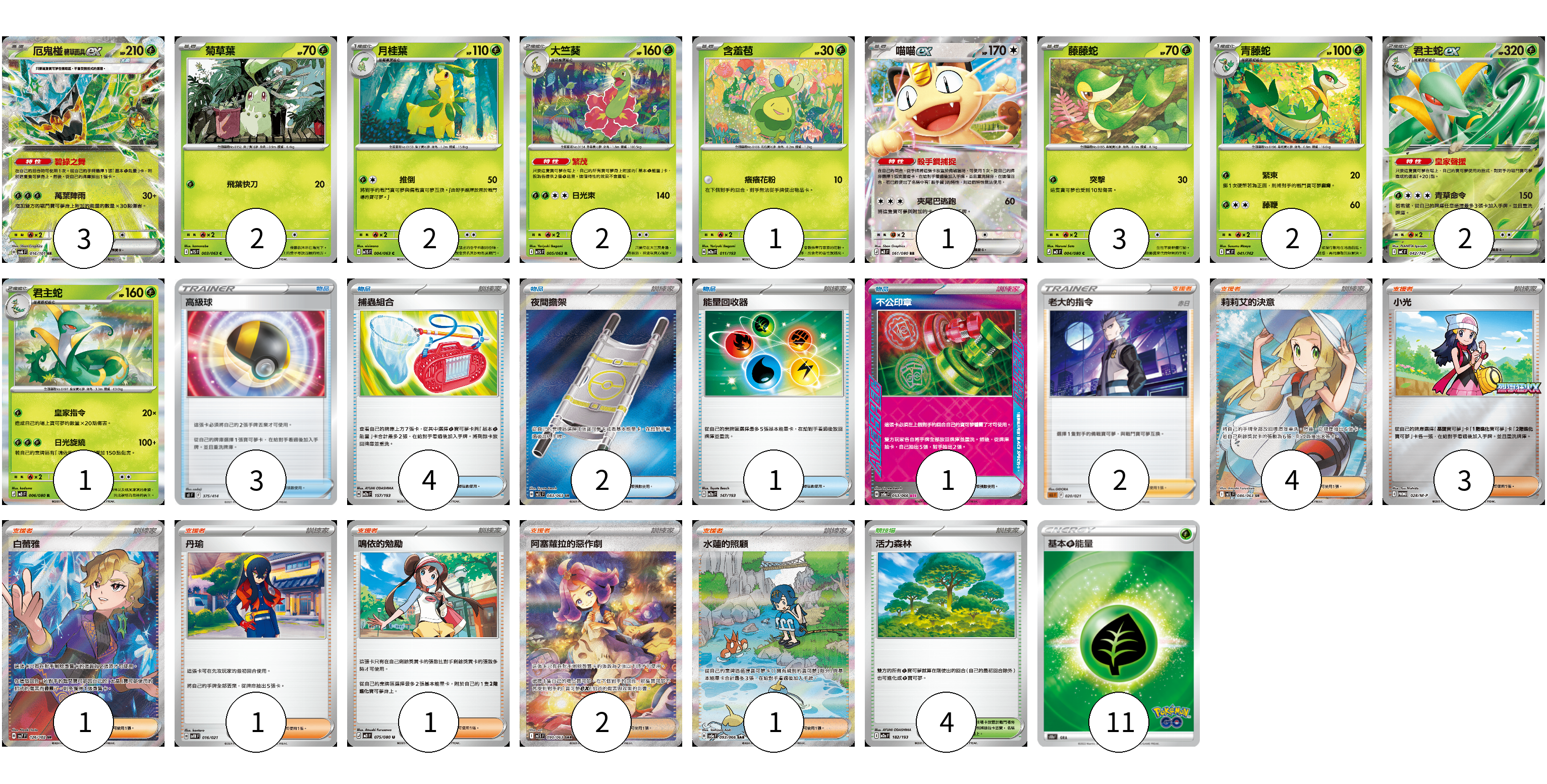 牌組構築方案 以此牌組為基礎新構築牌組 顯示卡面 顯示列表 寶可夢卡(19) 3 2 2 2 1 1 3 2 2 1 物品卡(11) 3 4 2 1 1 支援者卡(15) 2 4 3 1 1 1 2 1 競技場卡(4) 4 能量卡(11) 11 寶可夢卡(19) 卡牌名稱 張數 卡牌名稱 張數 厄鬼椪 碧草面具ex SV6 016/101 03 菊草葉 M1S 003/063 02 月桂葉 M1S 004/063 02 大竺葵 M1S 005/063 02 含羞苞 M2a 011/193 01 喵喵ex M3 061/080 01 藤藤蛇 M3 004/080 03 青藤蛇 MC 041/742 02 君主蛇ex MC 042/742 02 君主蛇 M3 006/080 01 物品卡(11) 卡牌名稱 張數 卡牌名稱 張數 高級球 SI 375/414 03 捕蟲組合 M2a 157/193 04 夜間擔架 M1L 083/063 02 能量回收器 M2a 147/193 01 不公印章 SV5a 053/066 01 支援者卡(15) 卡牌名稱 張數 卡牌名稱 張數 老大的指令(赤日) SLL 020/021 02 莉莉艾的決意 M1L 086/063 04 小光 M-P 028/M-P 03 白蕾雅 SV7 126/102 01 丹瑜 SVTR 016/021 01 鳴依的勉勵 M3 075/080 01 阿塞蘿拉的惡作劇 M1S 090/063 02 水蓮的照顧 SV5a 093/066 01 競技場卡(4) 卡牌名稱 張數 卡牌名稱 張數 活力森林 M2a 182/193 04 能量卡(11) 卡牌名稱 張數 卡牌名稱 張數 基本草能量 S10b GRA 11 以此牌組為基礎新構築牌組 牌組編碼 FPxbEK-JQbqtr-DkBCTY copy 列印牌組單 牌組編碼已複製 分享至SNS