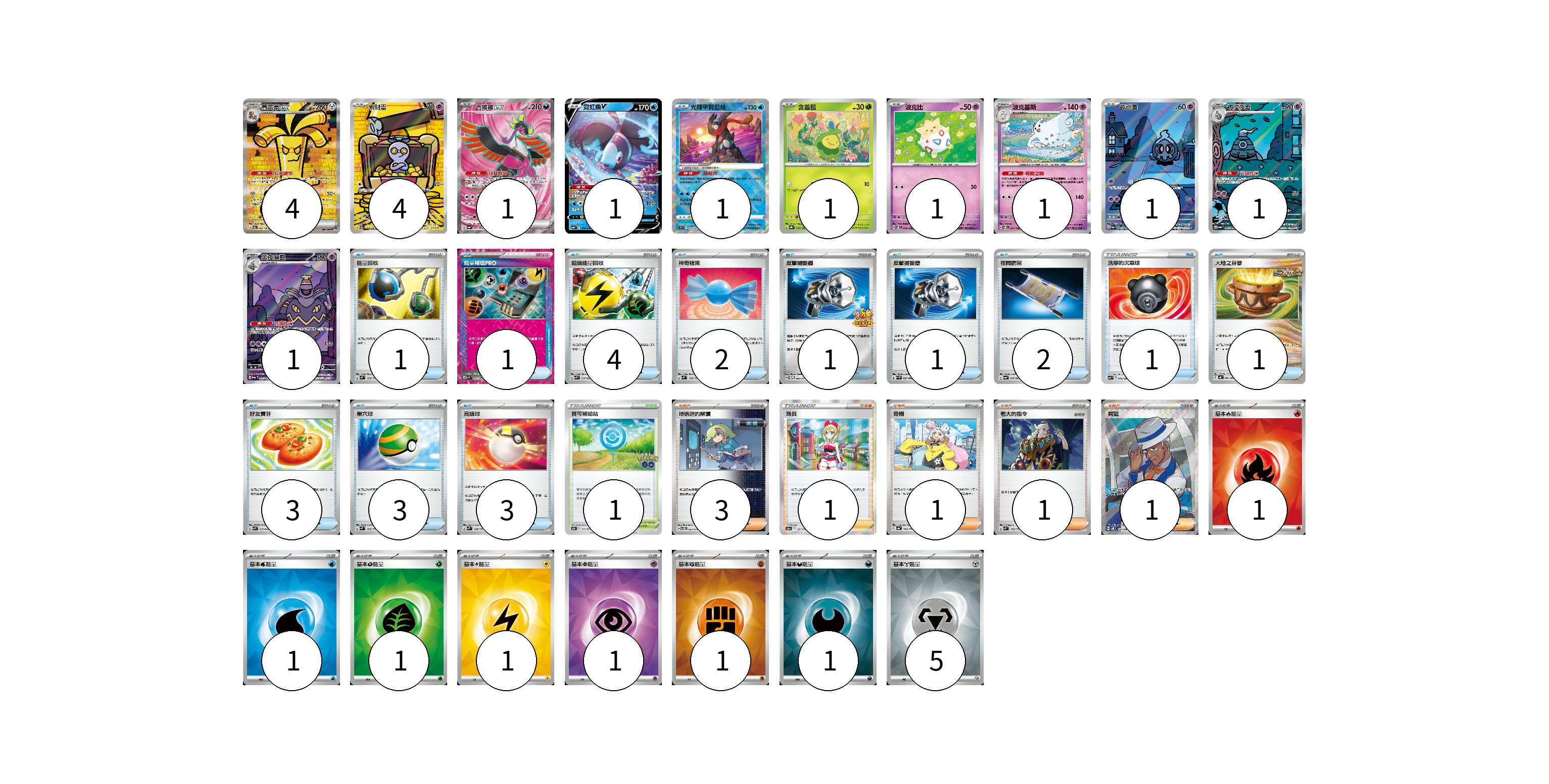 牌組構築方案 以此牌組為基礎新構築牌組 顯示卡面 顯示列表 寶可夢卡(17) 4 4 1 1 1 1 1 1 1 1 1 物品卡(23) 1 1 4 2 1 1 2 1 1 3 3 3 支援者卡(7) 3 1 1 1 1 競技場卡(1) 1 能量卡(12) 1 1 1 1 1 1 1 5 寶可夢卡(17) 卡牌名稱 張數 卡牌名稱 張數 賽富豪ex SV3a 087/062 04 索財靈 SV3a 068/062 04 吉雉雞ex SV6a 081/064 01 霓虹魚V SVB 008/028 01 光輝甲賀忍蛙 S9a 026/067 01 含羞苞 SV8a 001/187 01 波克比 SV8 045/106 01 波克基斯 SV8 047/106 01 夜巡靈 SV6a 068/064 01 彷徨夜靈 SV6a 069/064 01 黑夜魔靈 SV6a 070/064 01 物品卡(23) 卡牌名稱 張數 卡牌名稱 張數 能量回收 SVM 125/175 01 能量輸送PRO SV7a 052/064 01 超級能量回收 SVK 010/042 04 神奇糖果 SVM 135/175 02 反擊捕捉器 SV-P 083/SV-P 01 反擊捕捉器 SV4M 059/066 01 夜間擔架 SV6a 056/064 02 洗翠的沉重球 SVF 019/038 01 大地之容器 SV4K 060/066 01 好友寶芬 SVK 015/042 03 巢穴球 SVM 133/175 03 高級球 SVM 134/175 03 支援者卡(7) 卡牌名稱 張數 卡牌名稱 張數 暗碼迷的解讀 SV5M 067/071 03 珠貝 S12a 149/172 01 奇樹 SV4a 174/190 01 老大的指令 SVM 172/175 01 席藍 SV8 127/106 01 競技場卡(1) 卡牌名稱 張數 卡牌名稱 張數 寶可補給站 S10b 071/071 01 能量卡(12) 卡牌名稱 張數 卡牌名稱 張數 基本【火】能量 SVK FIR 01 基本【水】能量 SVK WAT 01 基本【草】能量 SVK GRA 01 基本【雷】能量 SVK LIG 01 基本【超】能量 SVK PSY 01 基本【鬥】能量 SVK FIG 01 基本【惡】能量 SVK DAR 01 基本【鋼】能量 SVK MET 05 以此牌組為基礎新構築牌組 牌組編碼 Gseozm-mtQczA-CkjEnl copy 列印牌組單 牌組編碼已複製 分享至SNS