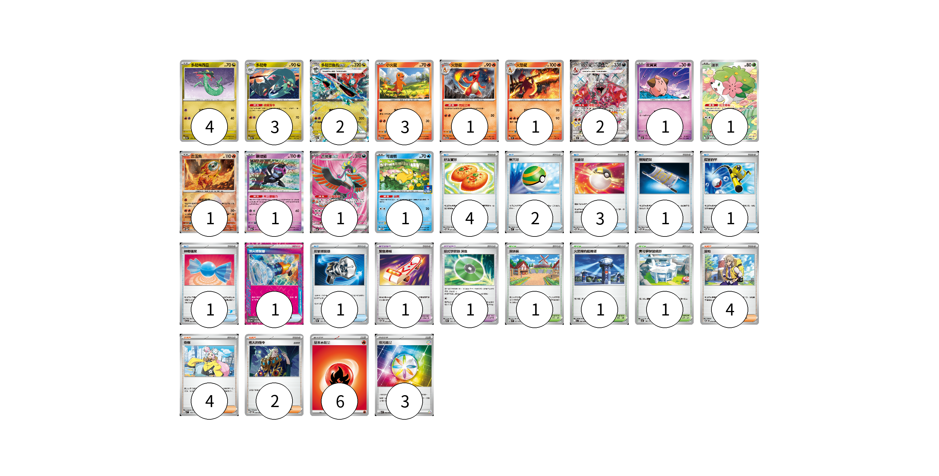 牌組構築方案 以此牌組為基礎新構築牌組 顯示卡面 顯示列表 寶可夢卡(22) 4 3 2 3 1 1 2 1 1 1 1 1 1 寶可夢道具(2) 1 1 物品卡(14) 4 2 3 1 1 1 1 1 支援者卡(10) 4 4 2 競技場卡(3) 1 1 1 能量卡(9) 6 3 寶可夢卡(22) 卡牌名稱 張數 卡牌名稱 張數 多龍梅西亞 SV8a 118/187 04 多龍奇 SV8a 119/187 03 多龍巴魯托ex SV8a 120/187 02 小火龍 SVTL 001/021 03 火恐龍 SVTL 002/021 01 火恐龍 SV2a 005/165 01 噴火龍ex SV4a 331/190 02 皮寶寶 SV4a 077/190 01 謝米 SV9a 066/063 01 古玉魚 SV8a 025/187 01 願增猿 SV8a 075/187 01 吉雉雞ex SV6a 081/064 01 可達鴨 SV-P 220/SV-P 01 寶可夢道具(2) 卡牌名稱 張數 卡牌名稱 張數 緊急滑板 SVOD 015/020 01 招式學習器 演進 SV8a 160/187 01 物品卡(14) 卡牌名稱 張數 卡牌名稱 張數 好友寶芬 SVOD 011/020 04 巢穴球 SVM 133/175 02 高級球 SVOD 012/020 03 夜間擔架 SVOM 016/021 01 厲害釣竿 SVOD 010/020 01 神奇糖果 SVI 053/066 01 頂尖捕捉器 SV8a 148/187 01 反擊捕捉器 SV8a 139/187 01 支援者卡(10) 卡牌名稱 張數 卡牌名稱 張數 派帕 SVOD 018/020 04 奇樹 SVM 160/175 04 老大的指令 SVOD 019/020 02 競技場卡(3) 卡牌名稱 張數 卡牌名稱 張數 深缽鎮 SVK 039/042 01 火箭隊的監視塔 SV10 096/098 01 寶可夢聯盟總部 SV4a 186/190 01 能量卡(9) 卡牌名稱 張數 卡牌名稱 張數 基本火能量 sv-p FIR 06 夜光能量 SVK 042/042 03 以此牌組為基礎新構築牌組 牌組編碼 HBgLBw-fiTNyg-JvjKdp copy 列印牌組單 牌組編碼已複製 分享至SNS