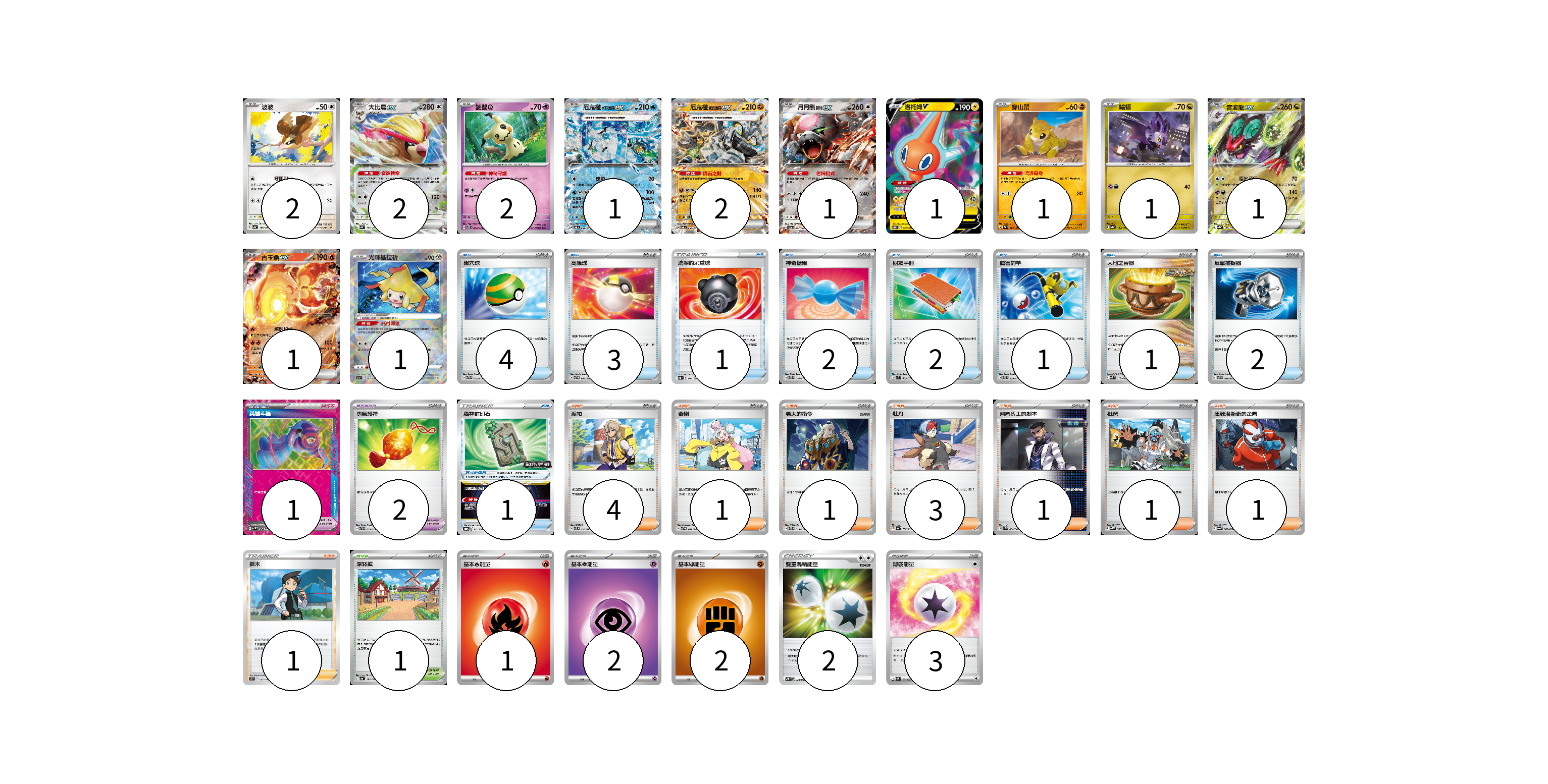 牌組構築方案 以此牌組為基礎新構築牌組 顯示卡面 顯示列表 寶可夢卡(16) 2 2 2 1 2 1 1 1 1 1 1 1 寶可夢道具(4) 1 2 1 物品卡(16) 4 3 1 2 2 1 1 2 支援者卡(13) 4 1 1 3 1 1 1 1 競技場卡(1) 1 能量卡(10) 1 2 2 2 3 寶可夢卡(16) 卡牌名稱 張數 卡牌名稱 張數 波波 SV4a 137/190 02 大比鳥ex SV4a 139/190 02 謎擬Q SVTS 006/022 02 厄鬼椪 水井面具ex SV6 038/101 01 厄鬼椪 礎石面具ex SV6 065/101 02 月月熊 赫月 ex SV5a 052/066 01 洛托姆V S11 037/100 01 穿山鼠 SV2a 027/165 01 嗡蝠 SV4a 134/190 01 音波龍ex SV4a 135/190 01 古玉魚ex SV4a 035/190 01 光輝基拉祈 S11a 045/068 01 寶可夢道具(4) 卡牌名稱 張數 卡牌名稱 張數 英雄斗篷 SV5M 064/071 01 勇氣護符 SVTR 015/021 02 森林封印石 SV-P 141/SV-P 01 物品卡(16) 卡牌名稱 張數 卡牌名稱 張數 巢穴球 SVTG 012/019 04 高級球 SVTG 013/019 03 洗翠的沉重球 SVB 014/028 01 神奇糖果 SVTG 014/019 02 朋友手冊 SV1S 069/078 02 厲害釣竿 SVTG 009/019 01 大地之容器 SVK 012/042 01 反擊捕捉器 SVTS 009/022 02 支援者卡(13) 卡牌名稱 張數 卡牌名稱 張數 派帕 SVTL 020/021 04 奇樹 SVTG 017/019 01 老大的指令 SVTG 019/019 01 牡丹 SV4a 182/190 03 弗圖博士的劇本 SVK 034/042 01 枇琶 SV5K 068/071 01 庫瑟洛斯奇的企圖 SV6a 062/064 01 捩木 S11 097/100 01 競技場卡(1) 卡牌名稱 張數 卡牌名稱 張數 深缽鎮 SV4a 185/190 01 能量卡(10) 卡牌名稱 張數 卡牌名稱 張數 基本火能量 sv-p FIR 01 基本超能量 sv-p PSY 02 基本鬥能量 sv-p FIG 02 雙重渦輪能量 SVTM 022/022 02 薄霧能量 SV5M 071/071 03 以此牌組為基礎新構築牌組 牌組編碼 HJECRW-LEIpPd-NsOKpS copy 列印牌組單 牌組編碼已複製 分享至SNS