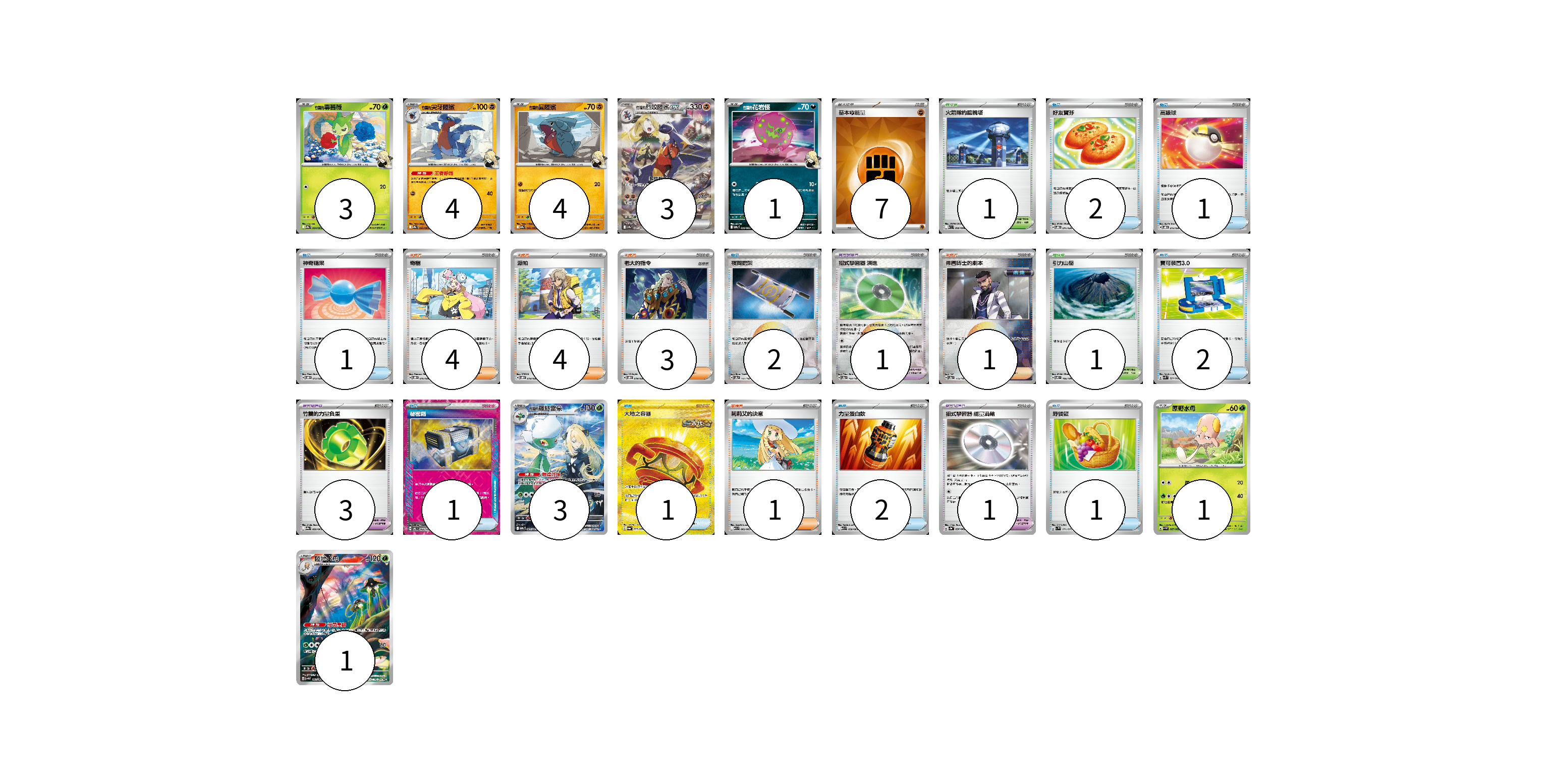 卡牌名稱 張數