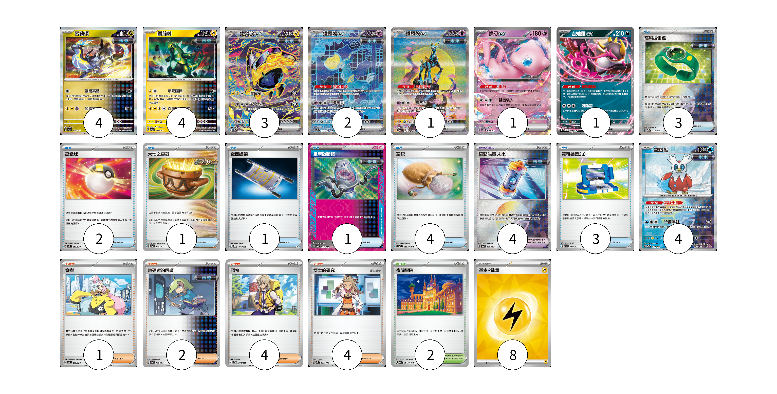牌組構築方案 以此牌組為基礎新構築牌組 顯示卡面 顯示列表 寶可夢卡(20) 4 4 3 2 1 1 1 4 寶可夢道具(4) 4 物品卡(15) 3 2 1 1 1 4 3 支援者卡(11) 1 2 4 4 競技場卡(2) 2 能量卡(8) 8 寶可夢卡(20) 卡牌名稱 張數 卡牌名稱 張數 密勒頓 SV8a 123/187 04 鐵荊棘 SV8a 055/187 04 鐵臂膀ex SV8a 210/187 03 鐵頭殼ex SV8a 214/187 02 鐵頭殼ex SV5M 094/071 01 夢幻ex SVK 001/042 01 吉雉雞ex SVOD 004/020 01 鐵包袱 SV8a 047/187 04 寶可夢道具(4) 卡牌名稱 張數 卡牌名稱 張數 驅勁能量 未來 SV8a 158/187 04 物品卡(15) 卡牌名稱 張數 卡牌名稱 張數 高科技雷達 SV8a 144/187 03 高級球 SVOD 012/020 02 大地之容器 SV8a 143/187 01 夜間擔架 SVOM 016/021 01 重新啟動箱 SV5M 063/071 01 聖灰 SV9a 056/063 04 寶可裝置3.0 SVK 021/042 03 支援者卡(11) 卡牌名稱 張數 卡牌名稱 張數 奇樹 SVOD 016/020 01 暗碼迷的解讀 SV8a 165/187 02 派帕 SVOD 018/020 04 博士的研究 SVK 032/042 04 競技場卡(2) 卡牌名稱 張數 卡牌名稱 張數 夜間學院 SV6a 064/064 02 能量卡(8) 卡牌名稱 張數 卡牌名稱 張數 基本【雷】能量 SVK LIG 08 以此牌組為基礎新構築牌組 牌組編碼 HOrQId-LoPiqu-DSJXRv copy 列印牌組單 牌組編碼已複製 分享至SNS