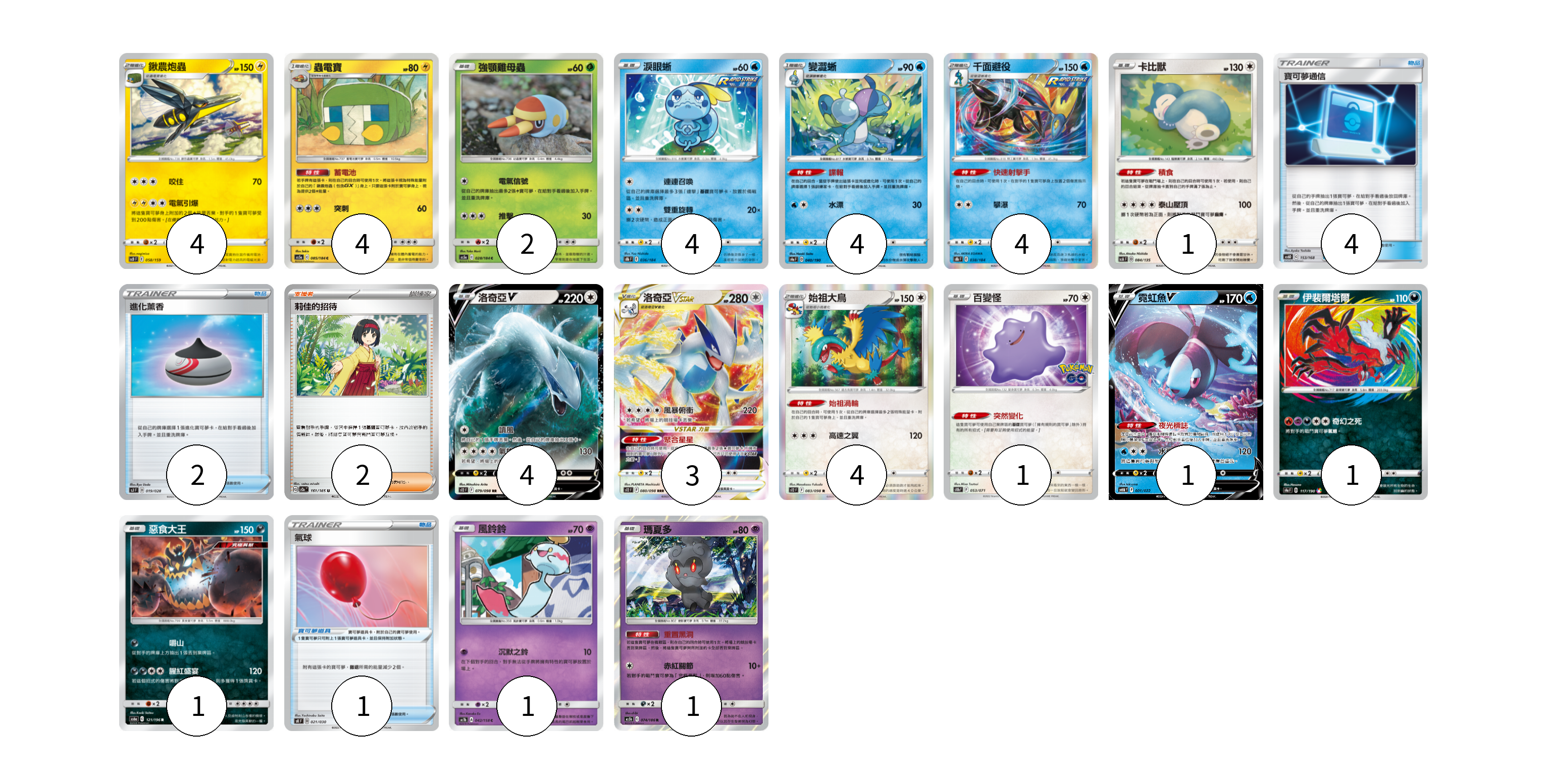 卡牌名稱 張數