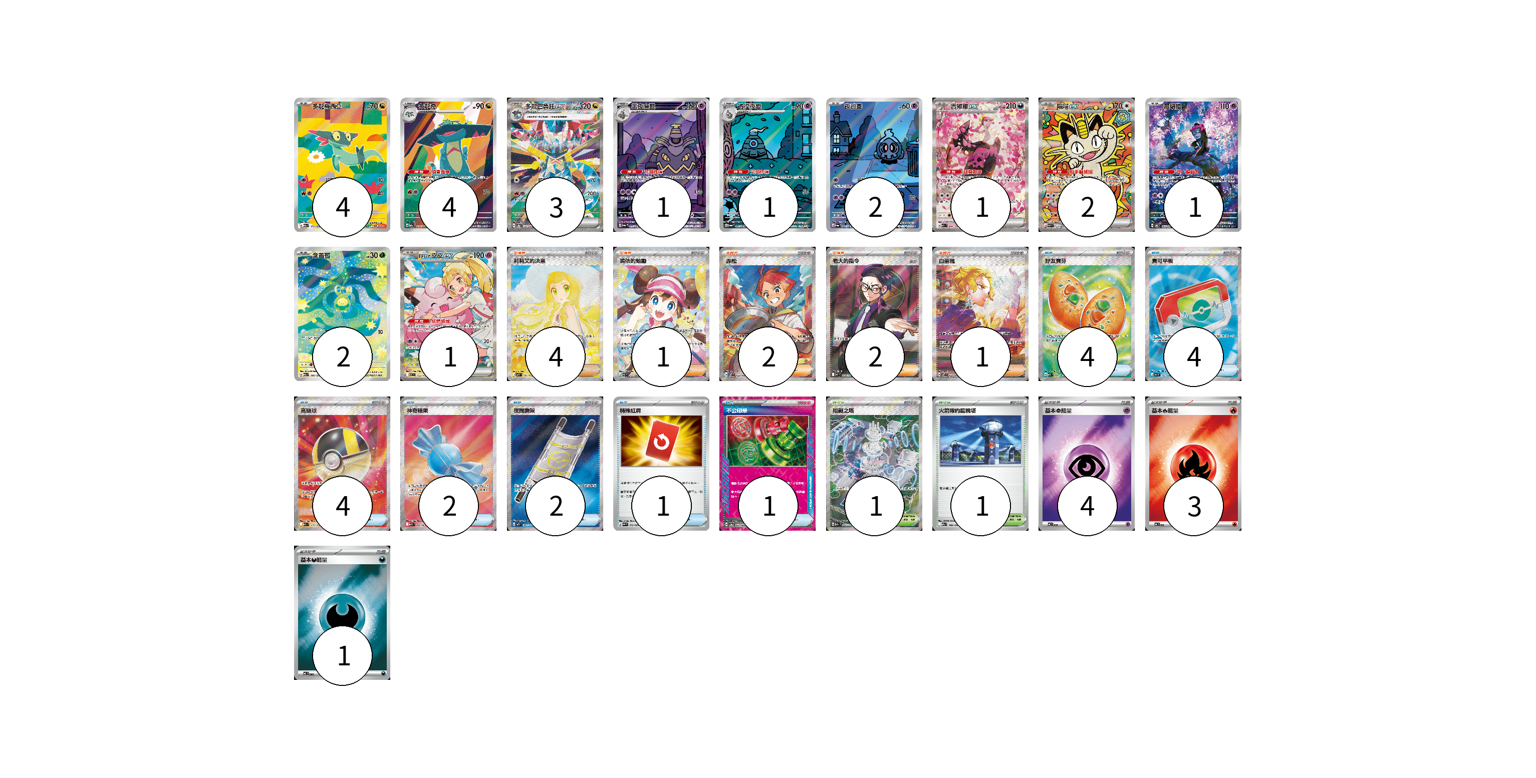 牌組構築方案 以此牌組為基礎新構築牌組 顯示卡面 顯示列表 寶可夢卡(22) 4 4 3 1 1 2 1 2 1 2 1 物品卡(18) 4 4 4 2 2 1 1 支援者卡(10) 4 1 2 2 1 競技場卡(2) 1 1 能量卡(8) 4 3 1 寶可夢卡(22) 卡牌名稱 張數 卡牌名稱 張數 多龍梅西亞 M2a 211/193 04 多龍奇 M2a 212/193 04 多龍巴魯托ex SV8a 221/187 03 黑夜魔靈 SV6a 070/064 01 彷徨夜靈 SV6a 069/064 01 夜巡靈 SV6a 068/064 02 吉雉雞ex M2a 244/193 01 喵喵ex M3 114/080 02 願增猿 SV6 107/101 01 含羞苞 M2a 196/193 02 莉莉艾的皮皮ex MC 765/742 01 物品卡(18) 卡牌名稱 張數 卡牌名稱 張數 好友寶芬 M1S 081/063 04 寶可平板 M3 103/080 04 高級球 M2a 216/193 04 神奇糖果 M1S 082/063 02 夜間擔架 M1L 083/063 02 特殊紅牌 M4 072/083 01 不公印章 SV5a 053/066 01 支援者卡(10) 卡牌名稱 張數 卡牌名稱 張數 莉莉艾的決意 M1L 091/063 04 鳴依的勉勵 M3 115/080 01 赤松 SV7 123/102 02 老大的指令(烏羽) MC 760/742 02 白蕾雅 SV7 132/102 01 競技場卡(2) 卡牌名稱 張數 卡牌名稱 張數 阻礙之塔 M2a 222/193 01 火箭隊的監視塔 M2a 189/193 01 能量卡(8) 卡牌名稱 張數 卡牌名稱 張數 基本【超】能量 MC PSY 04 基本【火】能量 MC FIR 03 基本【惡】能量 MC DAR 01 以此牌組為基礎新構築牌組 牌組編碼 HdXGjO-EeYEmE-SFjHEo copy 列印牌組單 牌組編碼已複製 分享至SNS