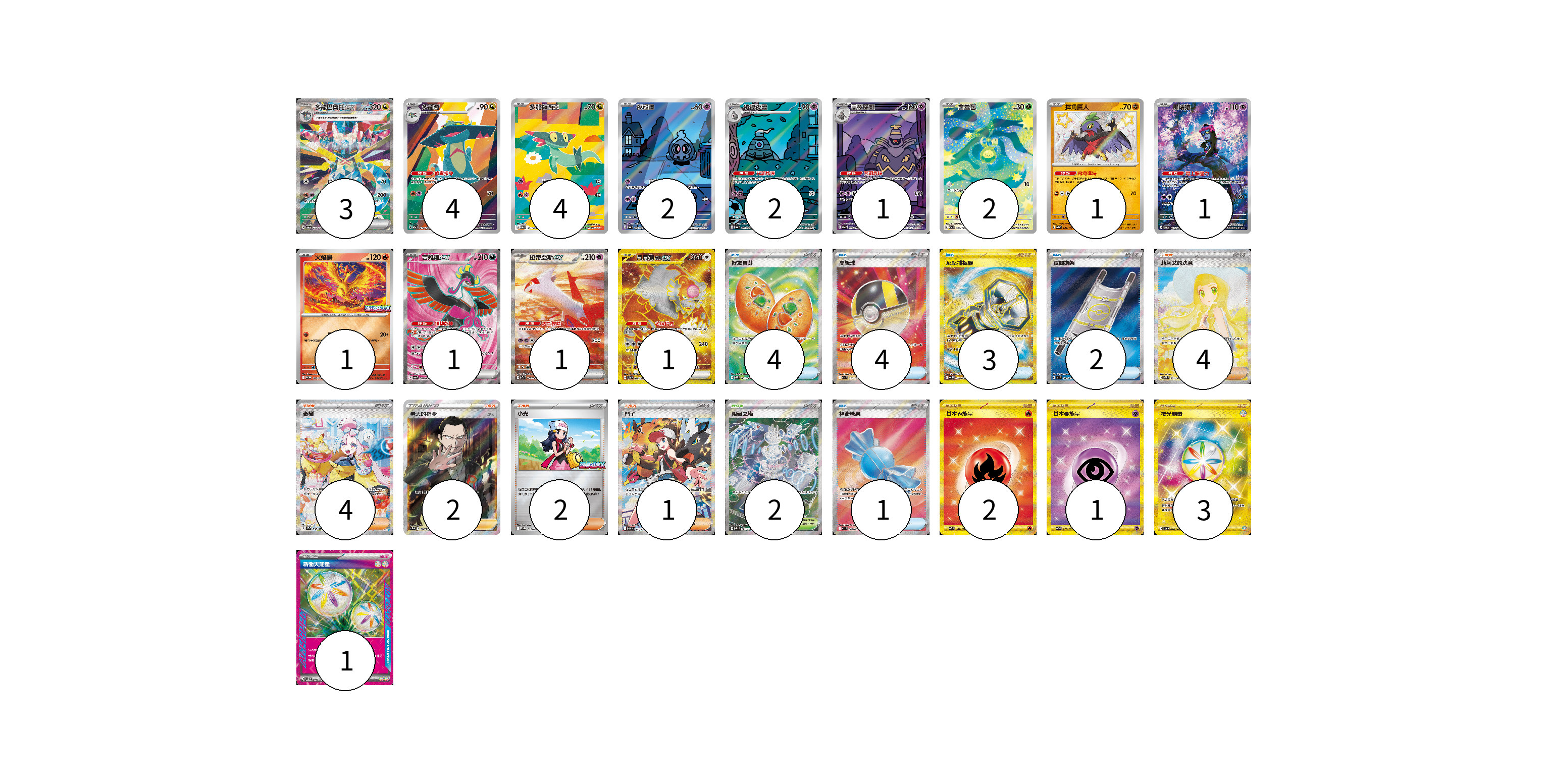 牌組構築方案 以此牌組為基礎新構築牌組 顯示卡面 顯示列表 寶可夢卡(24) 3 4 4 2 2 1 2 1 1 1 1 1 1 物品卡(14) 4 4 3 2 1 支援者卡(13) 4 4 2 2 1 競技場卡(2) 2 能量卡(7) 2 1 3 1 寶可夢卡(24) 卡牌名稱 張數 卡牌名稱 張數 多龍巴魯托ex SV8a 221/187 03 多龍奇 M2a 212/193 04 多龍梅西亞 M2a 211/193 04 夜巡靈 SV6a 068/064 02 彷徨夜靈 SV6a 069/064 02 黑夜魔靈 SV6a 070/064 01 含羞苞 M2a 196/193 02 摔角鷹人 SV4a 282/190 01 願增猿 SV6 107/101 01 火焰鳥 M-P 022/M-P 01 吉雉雞ex SV6a 081/064 01 拉帝亞斯ex SV7a 087/064 01 月月熊 赫月 ex SV5a 094/066 01 物品卡(14) 卡牌名稱 張數 卡牌名稱 張數 好友寶芬 M1S 081/063 04 高級球 M2a 216/193 04 反擊捕捉器 SV4M 094/066 03 夜間擔架 M1L 083/063 02 神奇糖果 M1S 082/063 01 支援者卡(13) 卡牌名稱 張數 卡牌名稱 張數 莉莉艾的決意 M1L 091/063 04 奇樹 SV2D 096/071 04 老大的指令(坂木) SC1b 170/153 02 小光 M-P 028/M-P 02 鬥子 SV11W 173/086 01 競技場卡(2) 卡牌名稱 張數 卡牌名稱 張數 阻礙之塔 M2a 222/193 02 能量卡(7) 卡牌名稱 張數 卡牌名稱 張數 基本【火】能量 SV3 141/108 02 基本【超】能量 SV2a 210/165 01 夜光能量 SV5a 096/066 03 新衝天能量 SV5K 071/071 01 以此牌組為基礎新構築牌組 牌組編碼 JNkDxO-dqrQHv-IIygHS copy 列印牌組單 牌組編碼已複製 分享至SNS