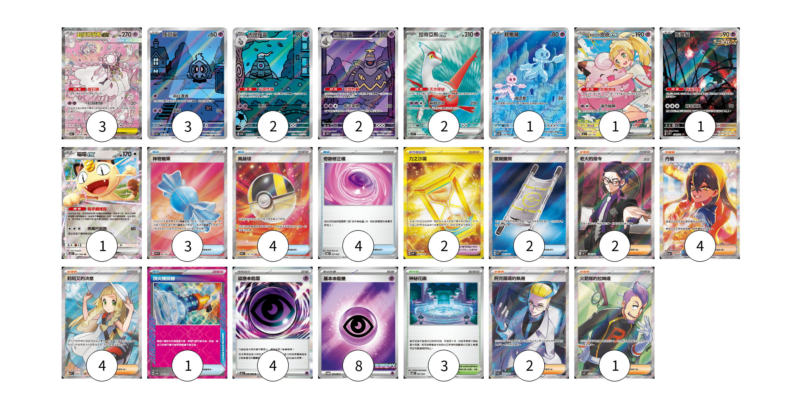 牌組構築方案 以此牌組為基礎新構築牌組 顯示卡面 顯示列表 寶可夢卡(16) 3 3 2 2 2 1 1 1 1 寶可夢道具(2) 2 物品卡(14) 3 4 4 2 1 支援者卡(13) 2 4 4 2 1 競技場卡(3) 3 能量卡(12) 4 8 寶可夢卡(16) 卡牌名稱 張數 卡牌名稱 張數 超級蒂安希ex M2a 238/193 03 夜巡靈 SV6a 068/064 03 彷徨夜靈 SV6a 069/064 02 黑夜魔靈 SV6a 070/064 02 拉帝亞斯ex SV7a 078/064 02 輕飄飄 SV11W 124/086 01 莉莉艾的皮皮ex MC 765/742 01 振翼髮 SV5K 076/071 01 喵喵ex M3 061/080 01 寶可夢道具(2) 卡牌名稱 張數 卡牌名稱 張數 力之沙漏 SV6a 094/064 02 物品卡(14) 卡牌名稱 張數 卡牌名稱 張數 神奇糖果 M1S 082/063 03 高級球 M2a 216/193 04 奇跡修正檔 MBD 017/022 04 夜間擔架 M1L 083/063 02 頂尖捕捉器 SV5M 062/071 01 支援者卡(13) 卡牌名稱 張數 卡牌名稱 張數 老大的指令(烏羽) MC 760/742 02 丹瑜 SV6 130/101 04 莉莉艾的決意 M1L 086/063 04 阿克羅瑪的執著 SV6a 083/064 02 火箭隊的拉姆達 SV10 122/098 01 競技場卡(3) 卡牌名稱 張數 卡牌名稱 張數 神秘花園 MBD 022/022 03 能量卡(12) 卡牌名稱 張數 卡牌名稱 張數 感應【超】能量 M3 079/080 04 基本【超】能量 M-P 033/M-P 08 以此牌組為基礎新構築牌組 牌組編碼 JQtMRX-Kcfipa-hCEdMC copy 列印牌組單 牌組編碼已複製 分享至SNS