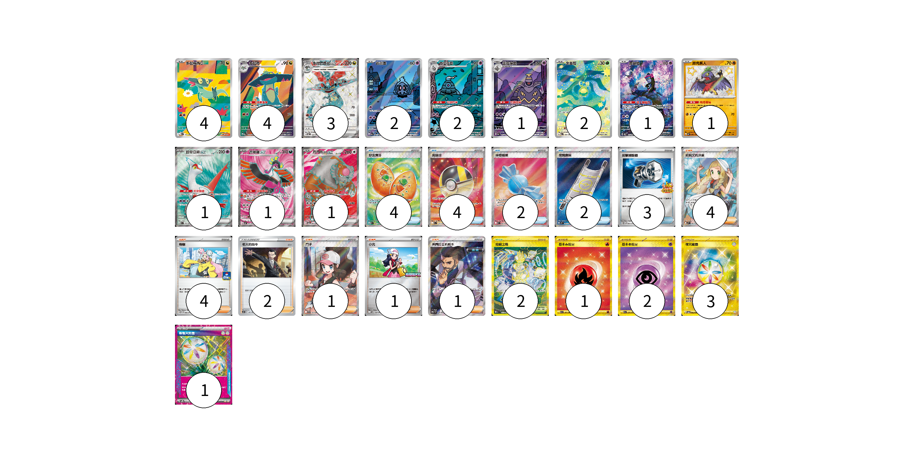 牌組構築方案 以此牌組為基礎新構築牌組 顯示卡面 顯示列表 寶可夢卡(23) 4 4 3 2 2 1 2 1 1 1 1 1 物品卡(15) 4 4 2 2 3 支援者卡(13) 4 4 2 1 1 1 競技場卡(2) 2 能量卡(7) 1 2 3 1 寶可夢卡(23) 卡牌名稱 張數 卡牌名稱 張數 多龍梅西亞 M2a 211/193 04 多龍奇 M2a 212/193 04 多龍巴魯托ex SV6 120/101 03 夜巡靈 SV6a 068/064 02 彷徨夜靈 SV6a 069/064 02 黑夜魔靈 SV6a 070/064 01 含羞苞 M2a 196/193 02 願增猿 SV6 107/101 01 摔角鷹人 SV4a 282/190 01 拉帝亞斯ex SV7a 078/064 01 吉雉雞ex SV6a 081/064 01 月月熊 赫月 ex SV5a 084/066 01 物品卡(15) 卡牌名稱 張數 卡牌名稱 張數 好友寶芬 M1S 081/063 04 高級球 M2a 216/193 04 神奇糖果 M1S 082/063 02 夜間擔架 M1L 083/063 02 反擊捕捉器 SV-P 083/SV-P 03 支援者卡(13) 卡牌名稱 張數 卡牌名稱 張數 莉莉艾的決意 M1L 086/063 04 奇樹 SV-P 106/SV-P 04 老大的指令(坂木) SC1D 161/164 02 鬥子 SV11W 166/086 01 小光 M-P 028/M-P 01 弗圖博士的劇本 SV4M 086/066 01 競技場卡(2) 卡牌名稱 張數 卡牌名稱 張數 阻礙之塔 SV10 132/098 02 能量卡(7) 卡牌名稱 張數 卡牌名稱 張數 基本【火】能量 SV3 141/108 01 基本【超】能量 SV2a 210/165 02 夜光能量 SV5a 096/066 03 新衝天能量 SV5K 071/071 01 以此牌組為基礎新構築牌組 牌組編碼 JVEXvG-OhHgJp-rFsDdH copy 列印牌組單 牌組編碼已複製 分享至SNS