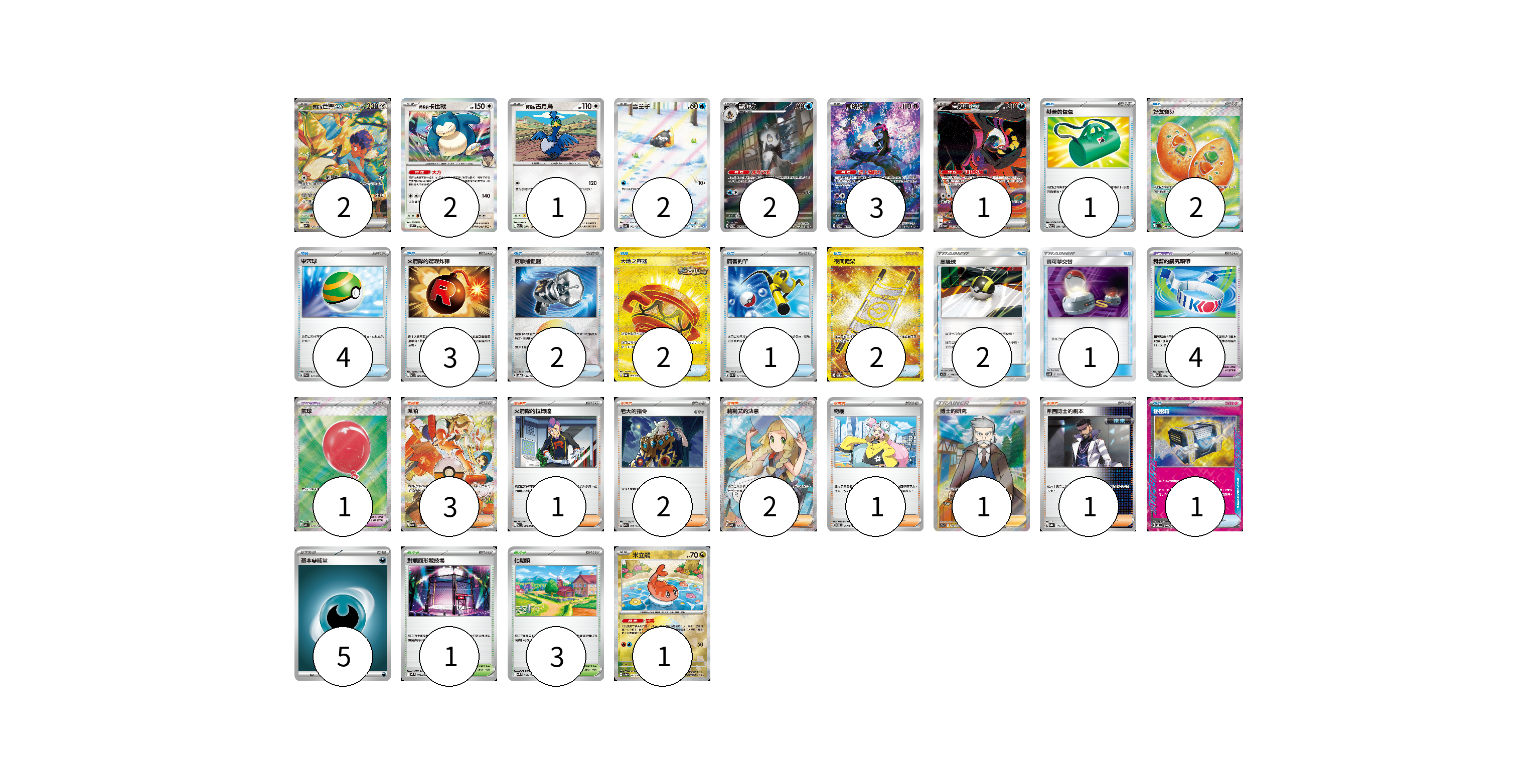 牌組構築方案 以此牌組為基礎新構築牌組 顯示卡面 顯示列表 寶可夢卡(14) 2 2 1 2 2 3 1 1 寶可夢道具(5) 4 1 物品卡(21) 1 2 4 3 2 2 1 2 2 1 1 支援者卡(11) 3 1 2 2 1 1 1 競技場卡(4) 1 3 能量卡(5) 5 寶可夢卡(14) 卡牌名稱 張數 卡牌名稱 張數 赫普的蒼響ex SV9 128/100 02 赫普的卡比獸 SV9 075/100 02 赫普的古月鳥 SV9 087/100 01 雪童子 SV3a 063/062 02 雪妖女 SV6 104/101 02 願增猿 SV6 107/101 03 吉雉雞ex SV6a 089/064 01 米立龍 SV8a 121/187 01 寶可夢道具(5) 卡牌名稱 張數 卡牌名稱 張數 赫普的講究頭帶 SV9 092/100 04 氣球 M1L 084/063 01 物品卡(21) 卡牌名稱 張數 卡牌名稱 張數 赫普的包包 SV9 091/100 01 好友寶芬 M1S 081/063 02 巢穴球 SVAM 015/023 04 火箭隊的驚嚇炸彈 SV10 089/098 03 反擊捕捉器 SV8a 139/187 02 大地之容器 SV6a 093/064 02 厲害釣竿 SVK 011/042 01 夜間擔架 SV8 137/106 02 高級球 AS5b 178/186 02 寶可夢交替 AS6D 151/168 01 秘密箱 SV6 092/101 01 支援者卡(11) 卡牌名稱 張數 卡牌名稱 張數 派帕 SV4a 353/190 03 火箭隊的拉姆達 SV10 094/098 01 老大的指令 SVK 036/042 02 莉莉艾的決意 M1L 086/063 02 奇樹 SVTG 017/019 01 博士的研究(山梨博士) S12a 248/172 01 弗圖博士的劇本 SV8a 175/187 01 競技場卡(4) 卡牌名稱 張數 卡牌名稱 張數 對戰圓形競技場 M2 079/080 01 化朗鎮 SV9 099/100 03 能量卡(5) 卡牌名稱 張數 卡牌名稱 張數 基本【惡】能量 SVF DAR 05 以此牌組為基礎新構築牌組 牌組編碼 JhaqAj-YOQcOh-RKlqli copy 列印牌組單 牌組編碼已複製 分享至SNS