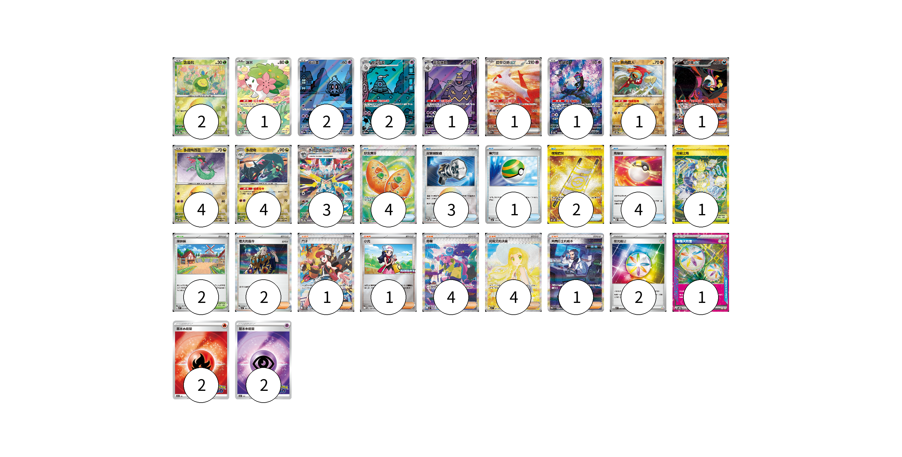 牌組構築方案 以此牌組為基礎新構築牌組 顯示卡面 顯示列表 寶可夢卡(23) 2 1 2 2 1 1 1 1 1 4 4 3 物品卡(14) 4 3 1 2 4 支援者卡(13) 2 1 1 4 4 1 競技場卡(3) 1 2 能量卡(7) 2 1 2 2 寶可夢卡(23) 卡牌名稱 張數 卡牌名稱 張數 含羞苞 SV8a 001/187 02 謝米 SV9a 066/063 01 夜巡靈 SV6a 068/064 02 彷徨夜靈 SV6a 069/064 02 黑夜魔靈 SV6a 070/064 01 拉帝亞斯ex SV7a 087/064 01 願增猿 SV6 107/101 01 摔角鷹人 SV8a 084/187 01 吉雉雞ex SV6a 089/064 01 多龍梅西亞 SV8a 118/187 04 多龍奇 SV8a 119/187 04 多龍巴魯托ex SV8a 221/187 03 物品卡(14) 卡牌名稱 張數 卡牌名稱 張數 好友寶芬 M1S 081/063 04 反擊捕捉器 SV8a 139/187 03 巢穴球 SV4a 159/190 01 夜間擔架 SV8 137/106 02 高級球 MBD 014/022 04 支援者卡(13) 卡牌名稱 張數 卡牌名稱 張數 老大的指令 SV4a 181/190 02 鬥子 SV11W 173/086 01 小光 M-P 028/M-P 01 奇樹 SV4a 350/190 04 莉莉艾的決意 M1L 091/063 04 弗圖博士的劇本 SV4M 091/066 01 競技場卡(3) 卡牌名稱 張數 卡牌名稱 張數 阻礙之塔 SV10 132/098 01 深缽鎮 SVK 039/042 02 能量卡(7) 卡牌名稱 張數 卡牌名稱 張數 夜光能量 SVK 042/042 02 新衝天能量 SV5K 071/071 01 基本火能量 S10b FIR 02 基本超能量 S10b PSY 02 以此牌組為基礎新構築牌組 牌組編碼 KYhked-ksTfRW-qWPFxm copy 列印牌組單 牌組編碼已複製 分享至SNS