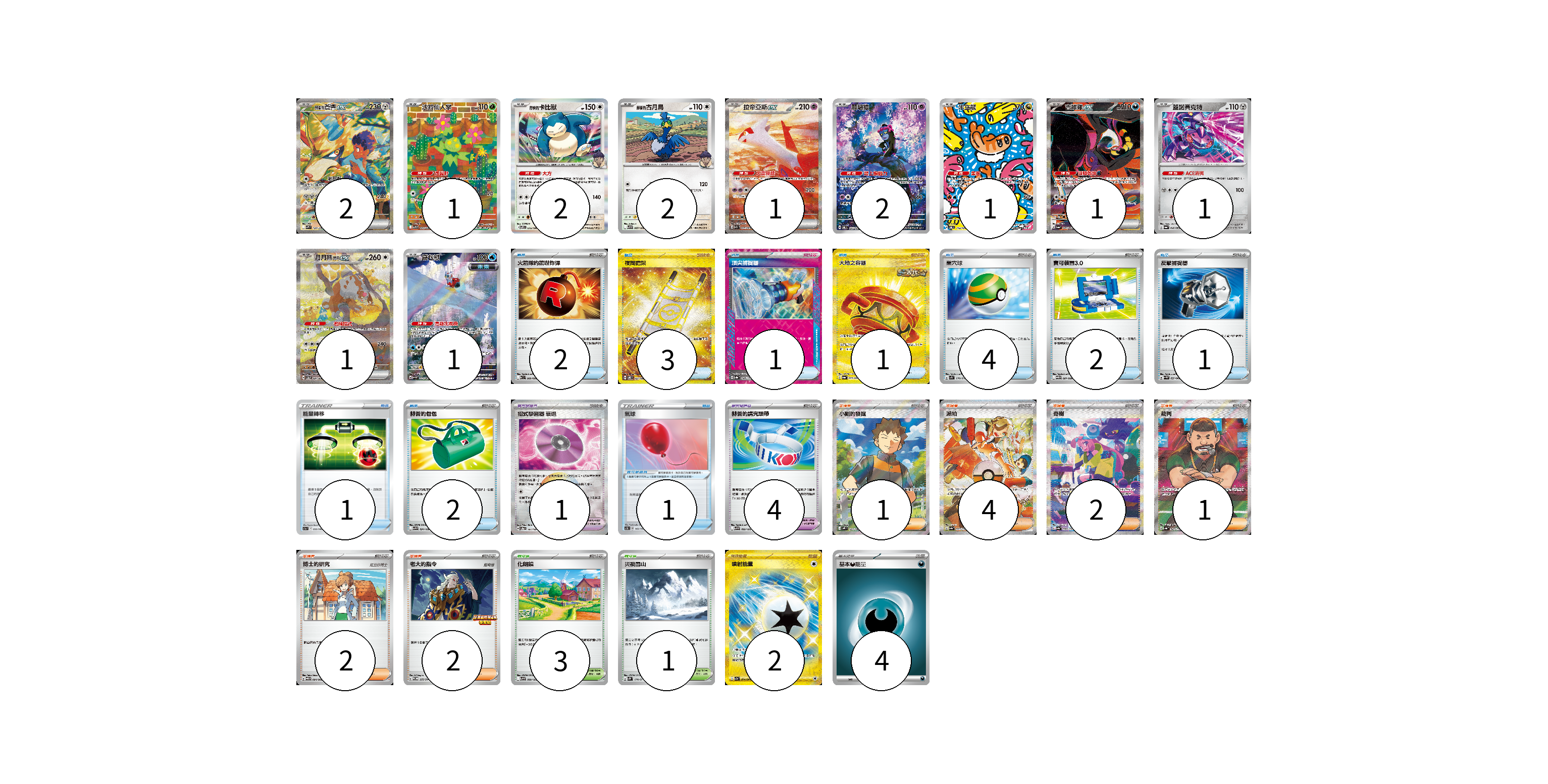 牌組構築方案 以此牌組為基礎新構築牌組 顯示卡面 顯示列表 寶可夢卡(15) 2 1 2 2 1 2 1 1 1 1 1 寶可夢道具(6) 1 1 4 物品卡(17) 2 3 1 1 4 2 1 1 2 支援者卡(12) 1 4 2 1 2 2 競技場卡(4) 3 1 能量卡(6) 2 4 寶可夢卡(15) 卡牌名稱 張數 卡牌名稱 張數 赫普的蒼響ex SV9 128/100 02 沙鈴仙人掌 SV9 101/100 01 赫普的卡比獸 SV9 075/100 02 赫普的古月鳥 SV9 087/100 02 拉帝亞斯ex SV7a 087/064 01 願增猿 SV6 107/101 02 米立龍 SV6 112/101 01 吉雉雞ex SV6a 089/064 01 蓋諾賽克特 SV6a 040/064 01 月月熊 赫月 ex SV5a 091/066 01 鐵包袱 SV4M 071/066 01 寶可夢道具(6) 卡牌名稱 張數 卡牌名稱 張數 招式學習器 衰退 SV8a 161/187 01 氣球 SC1b 142/153 01 赫普的講究頭帶 SV9 092/100 04 物品卡(17) 卡牌名稱 張數 卡牌名稱 張數 火箭隊的驚嚇炸彈 SV10 089/098 02 夜間擔架 SV8 137/106 03 頂尖捕捉器 SV8a 148/187 01 大地之容器 SV6a 093/064 01 巢穴球 SV1S 070/078 04 寶可裝置3.0 SV11B 081/086 02 反擊捕捉器 SV4M 059/066 01 能量轉移 S11a 059/068 01 赫普的包包 SV9 091/100 02 支援者卡(12) 卡牌名稱 張數 卡牌名稱 張數 小剛的發掘 SV9 123/100 01 派帕 SV4a 353/190 04 奇樹 SV4a 350/190 02 裁判 SV4a 342/190 01 博士的研究 SV11B 084/086 02 老大的指令 SV-P 255/SV-P 02 競技場卡(4) 卡牌名稱 張數 卡牌名稱 張數 化朗鎮 SV9 099/100 03 災禍雪山 SV2P 070/071 01 能量卡(6) 卡牌名稱 張數 卡牌名稱 張數 噴射能量 SV7a 094/064 02 基本惡能量 sv-p DAR 04 以此牌組為基礎新構築牌組 牌組編碼 KjSjCa-YAaKmy-aHNbXr copy 列印牌組單 牌組編碼已複製 分享至SNS