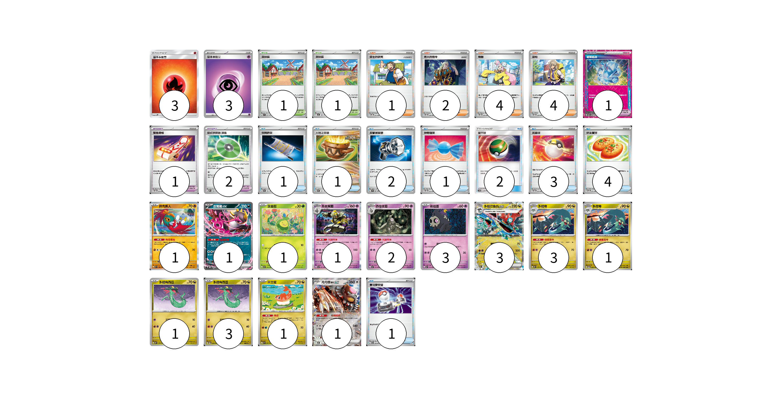 牌組構築方案 以此牌組為基礎新構築牌組 顯示卡面 顯示列表 寶可夢卡(22) 1 1 1 1 2 3 3 3 1 1 3 1 1 寶可夢道具(4) 1 1 2 物品卡(15) 1 1 2 1 2 3 4 1 支援者卡(11) 1 2 4 4 競技場卡(2) 1 1 能量卡(6) 3 3 寶可夢卡(22) 卡牌名稱 張數 卡牌名稱 張數 摔角鷹人 SV4a 106/190 01 吉雉雞ex SVOD 004/020 01 含羞苞 SV8a 001/187 01 黑夜魔靈 SV6a 020/064 01 彷徨夜靈 SV6a 019/064 02 夜巡靈 SV6a 018/064 03 多龍巴魯托ex SV8a 120/187 03 多龍奇 SV8a 119/187 03 多龍奇 SV6 080/101 01 多龍梅西亞 SV8a 118/187 01 多龍梅西亞 SV6 079/101 03 米立龍 SVK 002/042 01 月月熊 赫月ex SV8a 134/187 01 寶可夢道具(4) 卡牌名稱 張數 卡牌名稱 張數 璀璨結晶 SV7 094/102 01 緊急滑板 SVOD 015/020 01 招式學習器 演進 SV8a 160/187 02 物品卡(15) 卡牌名稱 張數 卡牌名稱 張數 夜間擔架 SV8a 151/187 01 大地之容器 SV8a 143/187 01 反擊捕捉器 SV4M 059/066 02 神奇糖果 SVOD 013/020 01 巢穴球 AC2D 146/176 02 高級球 SVOD 012/020 03 好友寶芬 SVOD 011/020 04 寶可夢交替 SV9a 058/063 01 支援者卡(11) 卡牌名稱 張數 卡牌名稱 張數 博士的研究 SVOD 017/020 01 老大的指令 SVOD 019/020 02 奇樹 SVOD 016/020 04 派帕 SVOD 018/020 04 競技場卡(2) 卡牌名稱 張數 卡牌名稱 張數 深缽鎮 SVK 039/042 01 深缽鎮 SV4a 185/190 01 能量卡(6) 卡牌名稱 張數 卡牌名稱 張數 基本火能量 AS6D FIR 03 基本超能量 sv-p PSY 03 以此牌組為基礎新構築牌組 牌組編碼 LKCrbZ-aJFtqi-HmdYNq copy 列印牌組單 牌組編碼已複製 分享至SNS