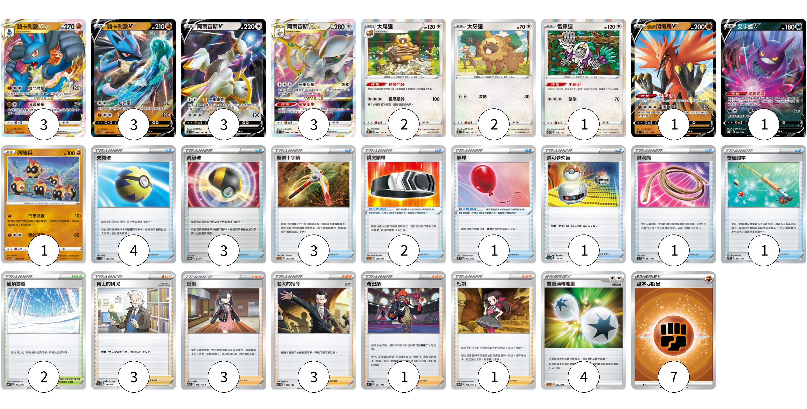 卡牌名稱 張數