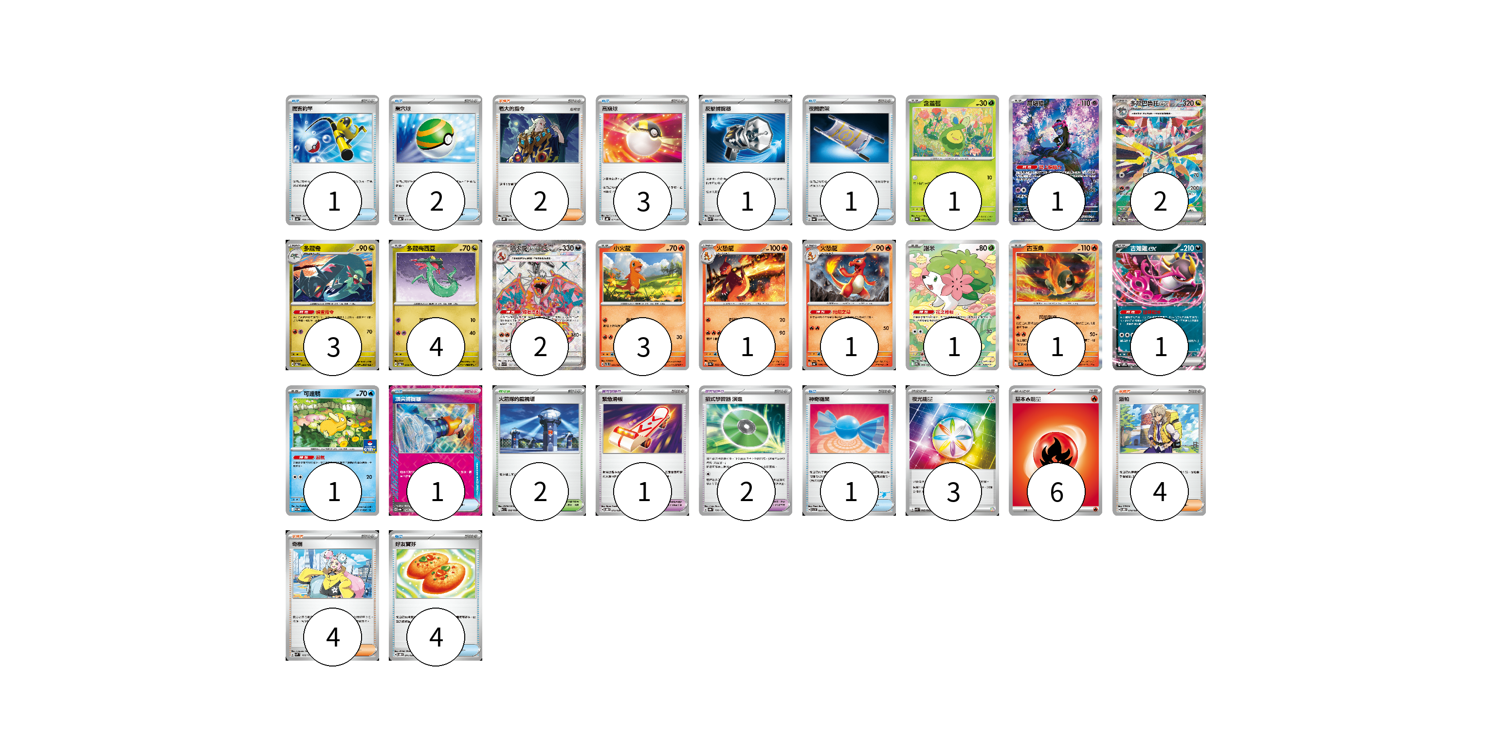牌組構築方案 以此牌組為基礎新構築牌組 顯示卡面 顯示列表 寶可夢卡(22) 1 1 2 3 4 2 3 1 1 1 1 1 1 寶可夢道具(3) 1 2 物品卡(14) 1 2 3 1 1 1 1 4 支援者卡(10) 2 4 4 競技場卡(2) 2 能量卡(9) 3 6 寶可夢卡(22) 卡牌名稱 張數 卡牌名稱 張數 含羞苞 SV8a 001/187 01 願增猿 SV6 107/101 01 多龍巴魯托ex SV8a 221/187 02 多龍奇 SV6 080/101 03 多龍梅西亞 SV6 079/101 04 噴火龍ex SV3 125/108 02 小火龍 SVTL 001/021 03 火恐龍 SV2a 005/165 01 火恐龍 SV4a 026/190 01 謝米 SV9a 066/063 01 古玉魚 SV4K 016/066 01 吉雉雞ex SVOM 009/021 01 可達鴨 SV-P 220/SV-P 01 寶可夢道具(3) 卡牌名稱 張數 卡牌名稱 張數 緊急滑板 SVOD 015/020 01 招式學習器 演進 SV8a 160/187 02 物品卡(14) 卡牌名稱 張數 卡牌名稱 張數 厲害釣竿 SV4a 158/190 01 巢穴球 SVHK 012/022 02 高級球 SVHK 013/022 03 反擊捕捉器 SVK 009/042 01 夜間擔架 SV6a 056/064 01 頂尖捕捉器 SV8a 148/187 01 神奇糖果 SVI 053/066 01 好友寶芬 SVOD 011/020 04 支援者卡(10) 卡牌名稱 張數 卡牌名稱 張數 老大的指令 SVHK 022/022 02 派帕 SVOD 018/020 04 奇樹 SVM 160/175 04 競技場卡(2) 卡牌名稱 張數 卡牌名稱 張數 火箭隊的監視塔 SV10 096/098 02 能量卡(9) 卡牌名稱 張數 卡牌名稱 張數 夜光能量 SVK 042/042 03 基本火能量 sv-p FIR 06 以此牌組為基礎新構築牌組 牌組編碼 MOyyvh-uLmlyd-nMywQU copy 列印牌組單 牌組編碼已複製 分享至SNS
