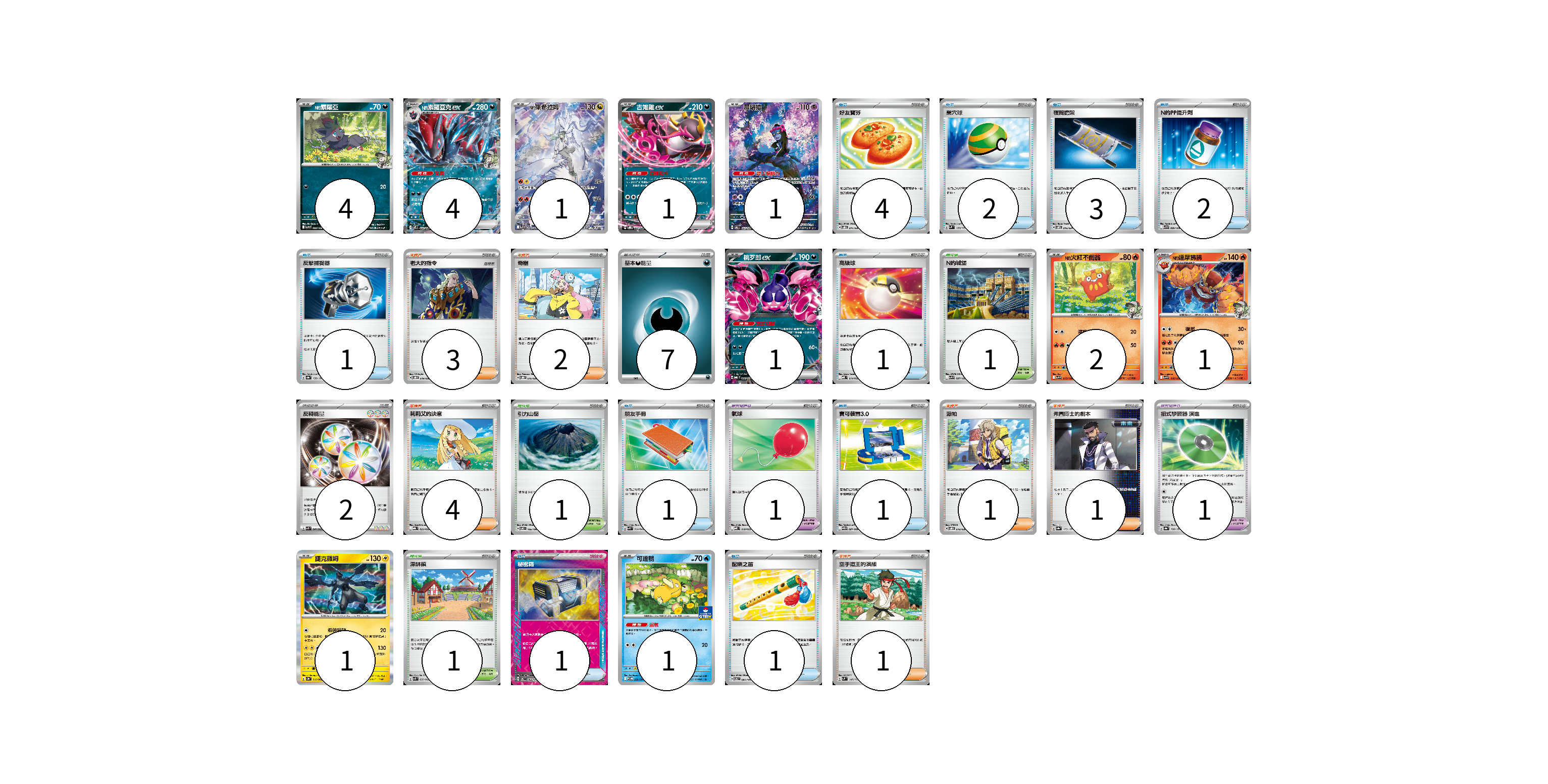 牌組構築方案 以此牌組為基礎新構築牌組 顯示卡面 顯示列表 寶可夢卡(17) 4 4 1 1 1 1 2 1 1 1 寶可夢道具(2) 1 1 物品卡(17) 4 2 3 2 1 1 1 1 1 1 支援者卡(12) 3 2 4 1 1 1 競技場卡(3) 1 1 1 能量卡(9) 7 2 寶可夢卡(17) 卡牌名稱 張數 卡牌名稱 張數 N的索羅亞 SV9 060/100 04 N的索羅亞克ex SV9 061/100 04 N的萊希拉姆 SV9 109/100 01 吉雉雞ex SVOD 004/020 01 願增猿 SV6 107/101 01 桃歹郎ex MBG 009/022 01 N的火紅不倒翁 SV9 015/100 02 N的達摩狒狒 SV9 016/100 01 捷克羅姆 SV3a 018/062 01 可達鴨 SV-P 220/SV-P 01 寶可夢道具(2) 卡牌名稱 張數 卡牌名稱 張數 氣球 MBD 018/022 01 招式學習器 演進 SV8a 160/187 01 物品卡(17) 卡牌名稱 張數 卡牌名稱 張數 好友寶芬 SVOD 011/020 04 巢穴球 SVM 133/175 02 夜間擔架 SVOM 016/021 03 N的PP提升劑 SV9 089/100 02 反擊捕捉器 SV8a 139/187 01 高級球 MBD 014/022 01 朋友手冊 SVK 014/042 01 寶可裝置3.0 SV11B 081/086 01 秘密箱 SV6 092/101 01 配樂之笛 SV6 091/101 01 支援者卡(12) 卡牌名稱 張數 卡牌名稱 張數 老大的指令 SVOD 019/020 03 奇樹 SVOD 016/020 02 莉莉艾的決意 MBG 022/022 04 派帕 SVOD 018/020 01 弗圖博士的劇本 SV8a 175/187 01 空手道王的演練 SVM 147/175 01 競技場卡(3) 卡牌名稱 張數 卡牌名稱 張數 N的城堡 SV9 097/100 01 引力山岳 SV8 106/106 01 深缽鎮 SVK 039/042 01 能量卡(9) 卡牌名稱 張數 卡牌名稱 張數 基本惡能量 sv-p DAR 07 反轉能量 SVK 041/042 02 以此牌組為基礎新構築牌組 牌組編碼 NZBSjz-NjdBOb-VTWuhn copy 列印牌組單 牌組編碼已複製 分享至SNS