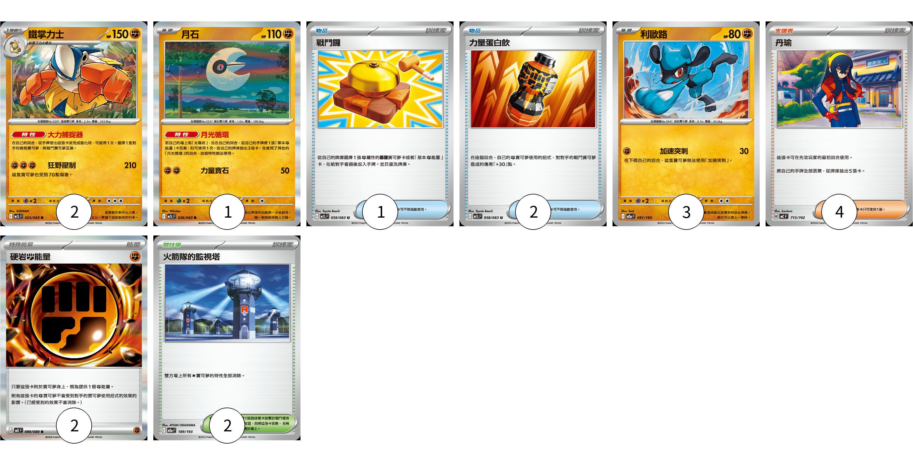 牌組構築方案 以此牌組為基礎新構築牌組 顯示卡面 顯示列表 寶可夢卡(6) 2 1 3 物品卡(3) 1 2 支援者卡(4) 4 競技場卡(2) 2 能量卡(2) 2 寶可夢卡(6) 卡牌名稱 張數 卡牌名稱 張數 鐵掌力士 M1L 025/063 02 月石 M1L 026/063 01 利歐路 M2a 091/193 03 物品卡(3) 卡牌名稱 張數 卡牌名稱 張數 戰鬥鑼 M1L 059/063 01 力量蛋白飲 M1L 058/063 02 支援者卡(4) 卡牌名稱 張數 卡牌名稱 張數 丹瑜 MC 715/742 04 競技場卡(2) 卡牌名稱 張數 卡牌名稱 張數 火箭隊的監視塔 M2a 189/193 02 能量卡(2) 卡牌名稱 張數 卡牌名稱 張數 硬岩【鬥】能量 M3 080/080 02 以此牌組為基礎新構築牌組 牌組編碼 NlFwJW-wqEBgh-fbadNX copy 列印牌組單 牌組編碼已複製 分享至SNS