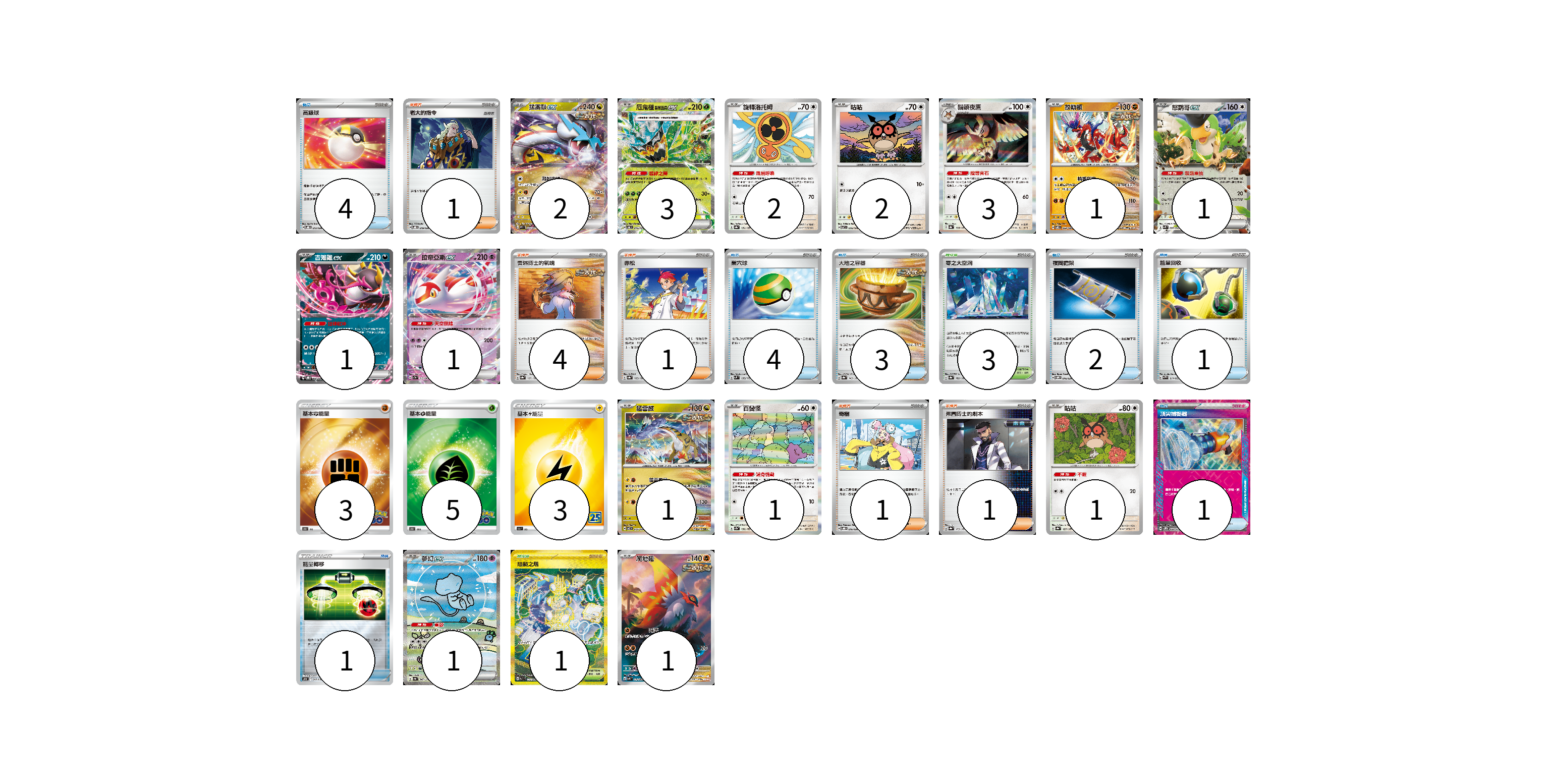牌組構築方案 以此牌組為基礎新構築牌組 顯示卡面 顯示列表 寶可夢卡(21) 2 3 2 2 3 1 1 1 1 1 1 1 1 1 物品卡(16) 4 4 3 2 1 1 1 支援者卡(8) 1 4 1 1 1 競技場卡(4) 3 1 能量卡(11) 3 5 3 寶可夢卡(21) 卡牌名稱 張數 卡牌名稱 張數 猛雷鼓ex SV5K 053/071 02 厄鬼椪 碧草面具ex SV6 016/101 03 旋轉洛托姆 SV8a 131/187 02 咕咕 SV7 076/102 02 貓頭夜鷹 SV8a 128/187 03 故勒頓 SV8 069/106 01 怒鸚哥ex SVK 006/042 01 吉雉雞ex SVOD 004/020 01 拉帝亞斯ex SV7a 019/064 01 猛雷鼓 SV7 075/102 01 百變怪 SV2a 132/165 01 咕咕 SV8a 127/187 01 夢幻ex SV4a 347/190 01 爬地翅 SV4K 074/066 01 物品卡(16) 卡牌名稱 張數 卡牌名稱 張數 高級球 SVOD 012/020 04 巢穴球 SVM 133/175 04 大地之容器 SV8a 143/187 03 夜間擔架 SVOM 016/021 02 能量回收 SVAW 011/023 01 頂尖捕捉器 SV5M 062/071 01 能量轉移 SO 017/030 01 支援者卡(8) 卡牌名稱 張數 卡牌名稱 張數 老大的指令 SVOD 019/020 01 奧琳博士的氣魄 SV8a 167/187 04 赤松 SV8a 163/187 01 奇樹 SVOD 016/020 01 弗圖博士的劇本 SV8a 175/187 01 競技場卡(4) 卡牌名稱 張數 卡牌名稱 張數 零之大空洞 SV8a 182/187 03 阻礙之塔 SV10 132/098 01 能量卡(11) 卡牌名稱 張數 卡牌名稱 張數 基本鬥能量 S10b FIG 03 基本草能量 S10b GRA 05 基本雷能量 S8a LIG 03 以此牌組為基礎新構築牌組 牌組編碼 NzMbVI-QtNnFx-YGsJMD copy 列印牌組單 牌組編碼已複製 分享至SNS