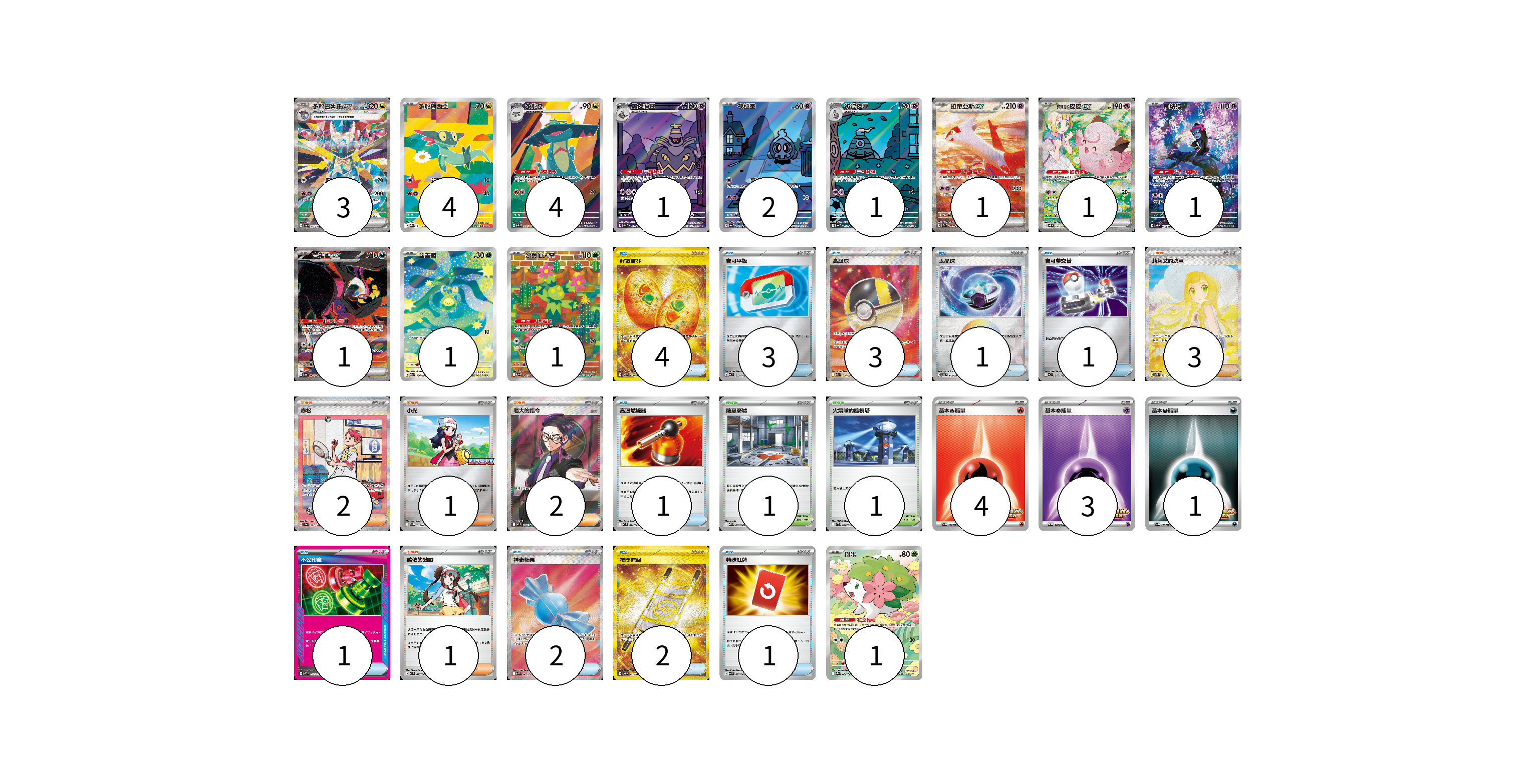 牌組構築方案 以此牌組為基礎新構築牌組 顯示卡面 顯示列表 寶可夢卡(22) 3 4 4 1 2 1 1 1 1 1 1 1 1 物品卡(19) 4 3 3 1 1 1 1 2 2 1 支援者卡(9) 3 2 1 2 1 競技場卡(2) 1 1 能量卡(8) 4 3 1 寶可夢卡(22) 卡牌名稱 張數 卡牌名稱 張數 多龍巴魯托ex SV8a 221/187 03 多龍梅西亞 M2a 211/193 04 多龍奇 M2a 212/193 04 黑夜魔靈 SV6a 070/064 01 夜巡靈 SV6a 068/064 02 彷徨夜靈 SV6a 069/064 01 拉帝亞斯ex SV7a 087/064 01 莉莉艾的皮皮ex SV9 126/100 01 願增猿 SV6 107/101 01 吉雉雞ex SV6a 089/064 01 含羞苞 M2a 196/193 01 沙鈴仙人掌 SV9 101/100 01 謝米 SV9a 066/063 01 物品卡(19) 卡牌名稱 張數 卡牌名稱 張數 好友寶芬 SV6 133/101 04 寶可平板 MC 662/742 03 高級球 M2a 216/193 03 太晶珠 SV8a 145/187 01 寶可夢交替 MC 663/742 01 高溫燃燒器 M2 074/080 01 不公印章 MBD 011/022 01 神奇糖果 M1S 082/063 02 夜間擔架 SV8 137/106 02 特殊紅牌 M4 072/083 01 支援者卡(9) 卡牌名稱 張數 卡牌名稱 張數 莉莉艾的決意 M1L 091/063 03 赤松 SV8a 227/187 02 小光 M-P 028/M-P 01 老大的指令(烏羽) MC 760/742 02 鳴依的勉勵 M3 075/080 01 競技場卡(2) 卡牌名稱 張數 卡牌名稱 張數 險惡廢墟 M1L 063/063 01 火箭隊的監視塔 SV10 096/098 01 能量卡(8) 卡牌名稱 張數 卡牌名稱 張數 基本【火】能量 SV-P 258/SV-P 04 基本【超】能量 SV-P 261/SV-P 03 基本【惡】能量 SV-P 263/SV-P 01 以此牌組為基礎新構築牌組 牌組編碼 OIqpRf-WFRwOa-zOcEeR copy 列印牌組單 牌組編碼已複製 分享至SNS