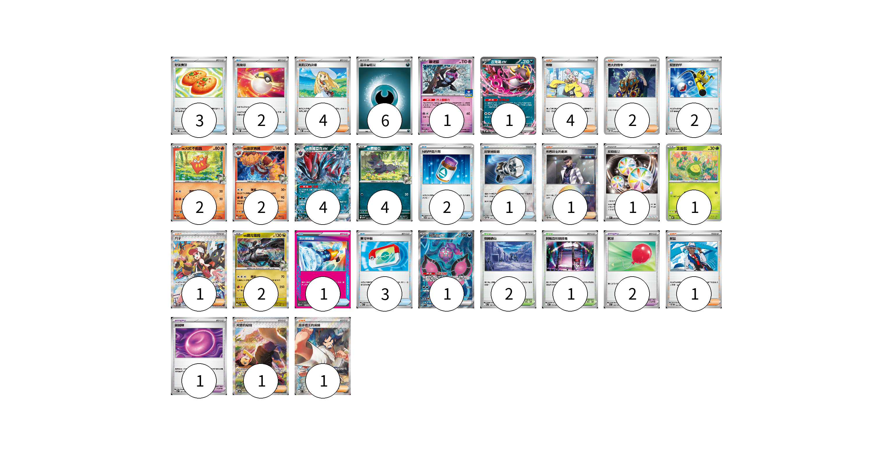 牌組構築方案 以此牌組為基礎新構築牌組 顯示卡面 顯示列表 寶可夢卡(18) 1 1 2 2 4 4 1 2 1 寶可夢道具(3) 2 1 物品卡(14) 3 2 2 2 1 1 3 支援者卡(15) 4 4 2 1 1 1 1 1 競技場卡(3) 2 1 能量卡(7) 6 1 寶可夢卡(18) 卡牌名稱 張數 卡牌名稱 張數 願增猿 M-P 014/M-P 01 吉雉雞ex SVOD 004/020 01 N的火紅不倒翁 SV9 015/100 02 N的達摩狒狒 SV9 016/100 02 N的索羅亞克ex SV9 061/100 04 N的索羅亞 SV9 060/100 04 含羞苞 SV8a 001/187 01 N的捷克羅姆 M2a 129/193 02 桃歹郎ex SV6a 082/064 01 寶可夢道具(3) 卡牌名稱 張數 卡牌名稱 張數 氣球 MC 688/742 02 鎖鏈糬 MC 681/742 01 物品卡(14) 卡牌名稱 張數 卡牌名稱 張數 好友寶芬 MBD 013/022 03 高級球 MBD 014/022 02 厲害釣竿 SVOM 011/021 02 N的PP提升劑 SV9 089/100 02 反擊捕捉器 SV8a 139/187 01 頂尖捕捉器 MBG 014/022 01 寶可平板 MC 662/742 03 支援者卡(15) 卡牌名稱 張數 卡牌名稱 張數 莉莉艾的決意 MBD 021/022 04 奇樹 SVOD 016/020 04 老大的指令 SVOD 019/020 02 弗圖博士的劇本 SV8a 175/187 01 鬥子 SV11W 173/086 01 席藍 SV8 102/106 01 阿杏的秘招 SV8a 228/187 01 空手道王的演練 M2a 220/193 01 競技場卡(3) 卡牌名稱 張數 卡牌名稱 張數 夜間礦山 M2a 188/193 02 對戰圓形競技場 M2 079/080 01 能量卡(7) 卡牌名稱 張數 卡牌名稱 張數 基本【惡】能量 MBG DAR 06 反轉能量 SVK 041/042 01 以此牌組為基礎新構築牌組 牌組編碼 OctSbL-dqAXYN-ZIIUlg copy 列印牌組單 牌組編碼已複製 分享至SNS