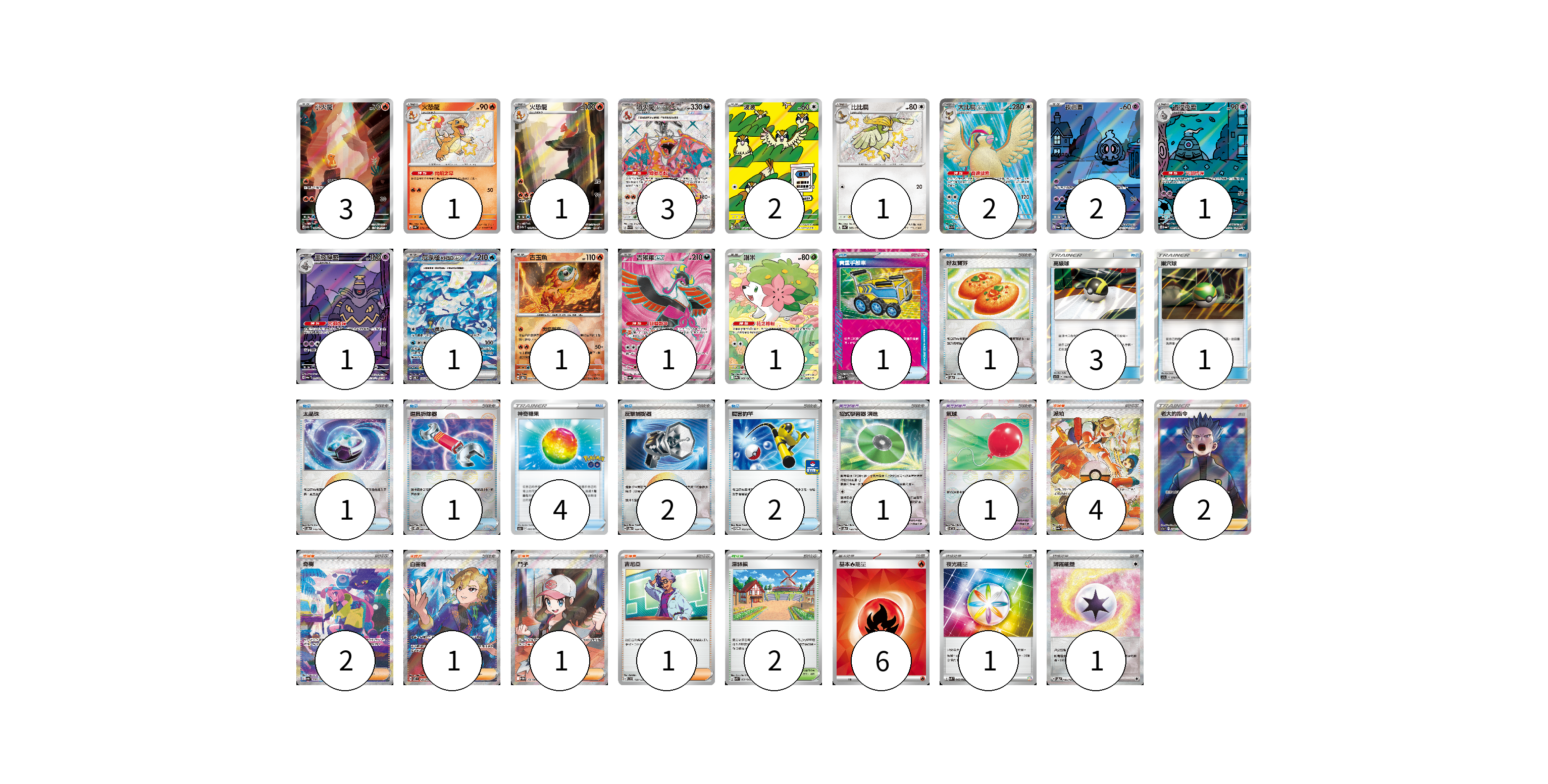 牌組構築方案 以此牌組為基礎新構築牌組 顯示卡面 顯示列表 寶可夢卡(21) 3 1 1 3 2 1 2 2 1 1 1 1 1 1 寶可夢道具(2) 1 1 物品卡(16) 1 1 3 1 1 1 4 2 2 支援者卡(11) 4 2 2 1 1 1 競技場卡(2) 2 能量卡(8) 6 1 1 寶可夢卡(21) 卡牌名稱 張數 卡牌名稱 張數 小火龍 SV2a 168/165 03 火恐龍 SV4a 211/190 01 火恐龍 SV2a 169/165 01 噴火龍ex SV3 125/108 03 波波 SV3 118/108 02 比比鳥 SV4a 305/190 01 大比鳥ex SV3 128/108 02 夜巡靈 SV6a 068/064 02 彷徨夜靈 SV6a 069/064 01 黑夜魔靈 SV6a 070/064 01 厄鬼椪 水井面具ex SV6 127/101 01 古玉魚 SV8a 025/187 01 吉雉雞ex SV6a 081/064 01 謝米 SV9a 066/063 01 寶可夢道具(2) 卡牌名稱 張數 卡牌名稱 張數 招式學習器 演進 SV8a 160/187 01 氣球 SV11B 082/086 01 物品卡(16) 卡牌名稱 張數 卡牌名稱 張數 貴重手推車 SVK 020/042 01 好友寶芬 SV8a 147/187 01 高級球 AS5b 178/186 03 巢穴球 AS5a 178/184 01 太晶珠 SV8a 145/187 01 道具拆除器 SV11W 080/086 01 神奇糖果 S10b 066/071 04 反擊捕捉器 SV8a 139/187 02 厲害釣竿 SV-P 112/SV-P 02 支援者卡(11) 卡牌名稱 張數 卡牌名稱 張數 派帕 SV4a 353/190 04 老大的指令(赤日) S12a 250/172 02 奇樹 SV4a 350/190 02 白蕾雅 SV7 126/102 01 鬥子 SV11W 166/086 01 吉尼亞 SVD 129/139 01 競技場卡(2) 卡牌名稱 張數 卡牌名稱 張數 深缽鎮 SVK 039/042 02 能量卡(8) 卡牌名稱 張數 卡牌名稱 張數 基本【火】能量 SVQL FIR 06 夜光能量 SVK 042/042 01 薄霧能量 SV8a 186/187 01 以此牌組為基礎新構築牌組 牌組編碼 OoGrSN-obwaMe-qrOLJa copy 列印牌組單 牌組編碼已複製 分享至SNS