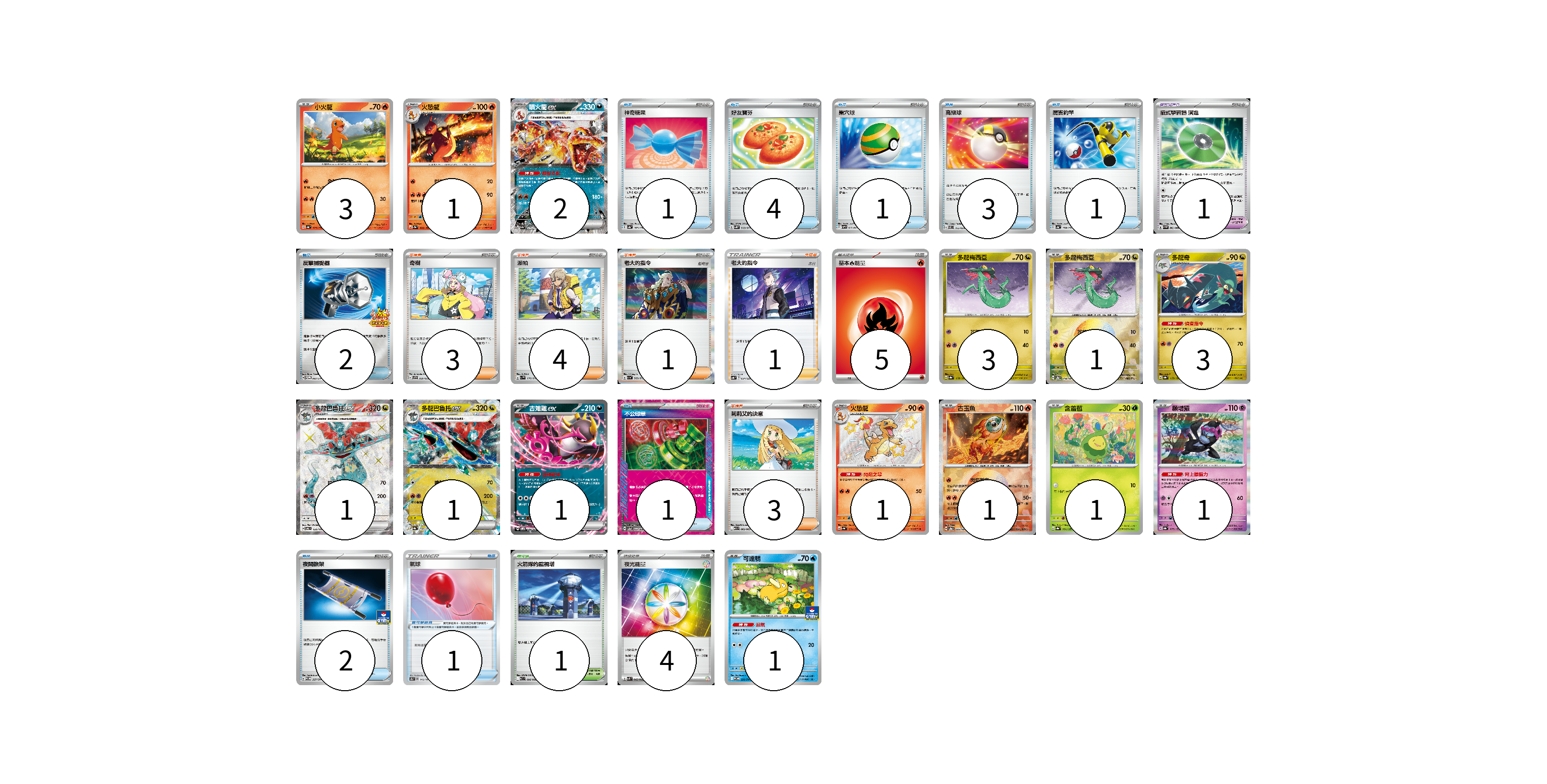 牌組構築方案 以此牌組為基礎新構築牌組 顯示卡面 顯示列表 寶可夢卡(21) 3 1 2 3 1 3 1 1 1 1 1 1 1 1 寶可夢道具(2) 1 1 物品卡(15) 1 4 1 3 1 2 1 2 支援者卡(12) 3 4 1 1 3 競技場卡(1) 1 能量卡(9) 5 4 寶可夢卡(21) 卡牌名稱 張數 卡牌名稱 張數 小火龍 SV4a 025/190 03 火恐龍 SV2a 005/165 01 噴火龍ex SV4a 115/190 02 多龍梅西亞 SV8a 118/187 03 多龍梅西亞 SV8a 118/187 01 多龍奇 SV8a 119/187 03 多龍巴魯托ex SV6 120/101 01 多龍巴魯托ex SV8a 120/187 01 吉雉雞ex SVOM 009/021 01 火恐龍 SV4a 211/190 01 古玉魚 SV8a 025/187 01 含羞苞 SV8a 001/187 01 願增猿 SV8a 075/187 01 可達鴨 SV-P 220/SV-P 01 寶可夢道具(2) 卡牌名稱 張數 卡牌名稱 張數 招式學習器 演進 SV4M 063/066 01 氣球 S8b 145/184 01 物品卡(15) 卡牌名稱 張數 卡牌名稱 張數 神奇糖果 SV4a 163/190 01 好友寶芬 SV5K 063/071 04 巢穴球 SVHM 012/022 01 高級球 SVEL 012/020 03 厲害釣竿 SV4a 158/190 01 反擊捕捉器 SV-P 083/SV-P 02 不公印章 SV5a 053/066 01 夜間擔架 SV-P 227/SV-P 02 支援者卡(12) 卡牌名稱 張數 卡牌名稱 張數 奇樹 SVF 029/038 03 派帕 SV1V 076/078 04 老大的指令 SV1a 069/073 01 老大的指令(赤日) SVB 024/028 01 莉莉艾的決意 M1L 062/063 03 競技場卡(1) 卡牌名稱 張數 卡牌名稱 張數 火箭隊的監視塔 SV10 096/098 01 能量卡(9) 卡牌名稱 張數 卡牌名稱 張數 基本火能量 sv-p FIR 05 夜光能量 SVK 042/042 04 以此牌組為基礎新構築牌組 牌組編碼 PDSWGK-sBiZIG-bOqzmp copy 列印牌組單 牌組編碼已複製 分享至SNS