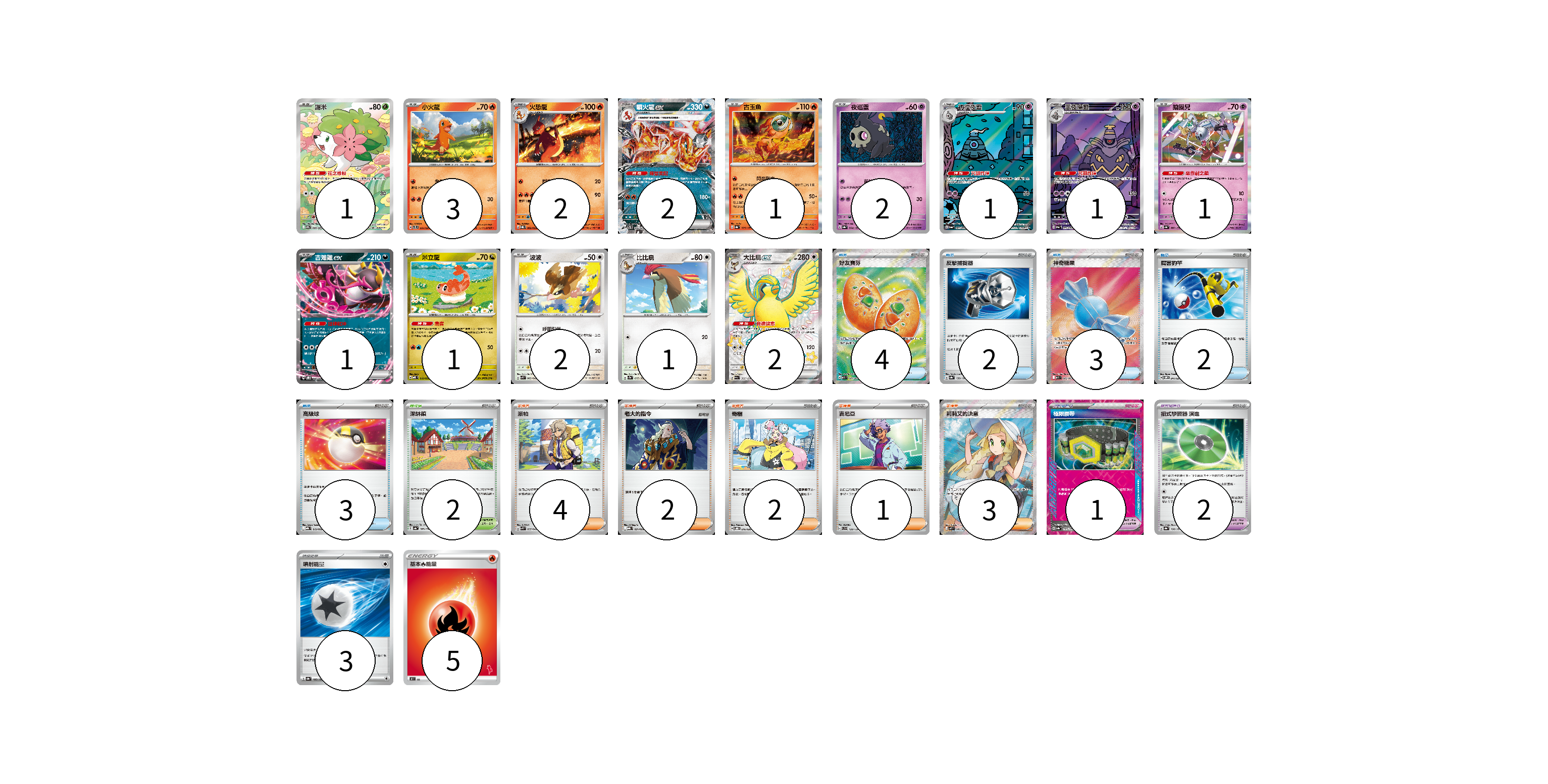 牌組構築方案 以此牌組為基礎新構築牌組 顯示卡面 顯示列表 寶可夢卡(21) 1 3 2 2 1 2 1 1 1 1 1 2 1 2 寶可夢道具(3) 1 2 物品卡(14) 4 2 3 2 3 支援者卡(12) 4 2 2 1 3 競技場卡(2) 2 能量卡(8) 3 5 寶可夢卡(21) 卡牌名稱 張數 卡牌名稱 張數 謝米 SV9a 066/063 01 小火龍 SVTL 001/021 03 火恐龍 SVQL 002/022 02 噴火龍ex SVTL 006/021 02 古玉魚 SV8a 025/187 01 夜巡靈 SV8a 064/187 02 彷徨夜靈 SV6a 069/064 01 黑夜魔靈 SV6a 070/064 01 鑰圈兒 SV4a 087/190 01 吉雉雞ex SVOD 004/020 01 米立龍 MBD 010/022 01 波波 SVK 003/042 02 比比鳥 SV2a 017/165 01 大比鳥ex SV4a 335/190 02 寶可夢道具(3) 卡牌名稱 張數 卡牌名稱 張數 極限腰帶 SV8a 159/187 01 招式學習器 演進 SV8a 160/187 02 物品卡(14) 卡牌名稱 張數 卡牌名稱 張數 好友寶芬 M1S 081/063 04 反擊捕捉器 SV8a 139/187 02 神奇糖果 M1S 082/063 03 厲害釣竿 SVOM 011/021 02 高級球 MBG 012/022 03 支援者卡(12) 卡牌名稱 張數 卡牌名稱 張數 派帕 SVK 035/042 04 老大的指令 MBG 021/022 02 奇樹 SVOD 016/020 02 吉尼亞 SVD 129/139 01 莉莉艾的決意 M1L 086/063 03 競技場卡(2) 卡牌名稱 張數 卡牌名稱 張數 深缽鎮 SV4a 185/190 02 能量卡(8) 卡牌名稱 張數 卡牌名稱 張數 噴射能量 SV8a 185/187 03 基本火能量 SH FIR 05 以此牌組為基礎新構築牌組 牌組編碼 PZfhHY-hkPxkH-rrTWRe copy 列印牌組單 牌組編碼已複製 分享至SNS
