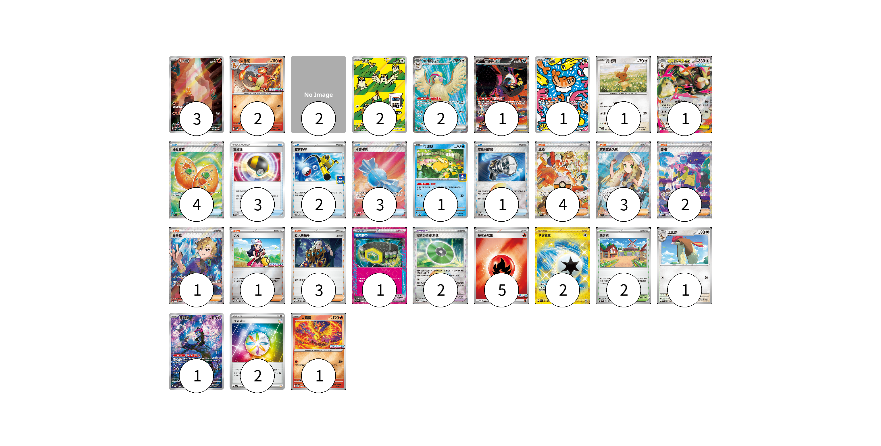 牌組構築方案 以此牌組為基礎新構築牌組 顯示卡面 顯示列表 寶可夢卡(17) 3 2 2 2 1 1 1 1 1 1 1 1 寶可夢道具(3) 1 2 物品卡(13) 4 3 2 3 1 支援者卡(14) 4 3 2 1 1 3 競技場卡(2) 2 能量卡(9) 5 2 2 寶可夢卡(17) 卡牌名稱 張數 卡牌名稱 張數 小火龍 SV2a 168/165 03 火恐龍 M-P 021/M-P 02 波波 SV3 118/108 02 大比鳥ex SV3 128/108 02 吉雉雞ex SV6a 089/064 01 米立龍 SV6 112/101 01 捲捲耳 M2 071/080 01 超級長耳兔ex M2 072/080 01 可達鴨 SV-P 220/SV-P 01 比比鳥 SVK 004/042 01 願增猿 SV6 107/101 01 火焰鳥 M-P 022/M-P 01 寶可夢道具(3) 卡牌名稱 張數 卡牌名稱 張數 極限腰帶 SV5K 066/071 01 招式學習器 演進 SV8a 160/187 02 物品卡(13) 卡牌名稱 張數 卡牌名稱 張數 好友寶芬 M1S 081/063 04 高級球 SK 015/030 03 厲害釣竿 SV-P 112/SV-P 02 神奇糖果 M1S 082/063 03 反擊捕捉器 SV8a 139/187 01 支援者卡(14) 卡牌名稱 張數 卡牌名稱 張數 派帕 SV4a 353/190 04 莉莉艾的決意 M1L 086/063 03 奇樹 SV4a 350/190 02 白蕾雅 SV7 126/102 01 小光 M-P 028/M-P 01 老大的指令 MBD 020/022 03 競技場卡(2) 卡牌名稱 張數 卡牌名稱 張數 深缽鎮 SVK 039/042 02 能量卡(9) 卡牌名稱 張數 卡牌名稱 張數 基本【火】能量 M-P 032/M-P 05 噴射能量 SV7a 094/064 02 夜光能量 SV1a 073/073 02 以此牌組為基礎新構築牌組 牌組編碼 PgcNpn-LJYQDe-vIZkfT copy 列印牌組單 牌組編碼已複製 分享至SNS