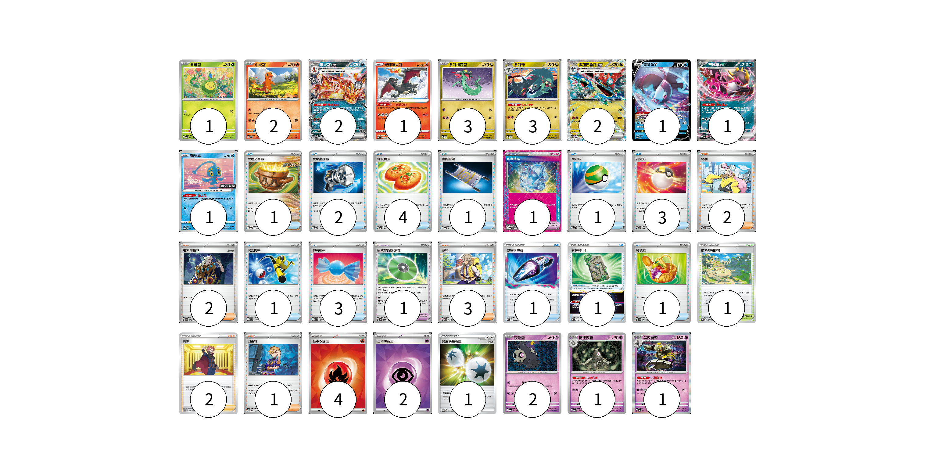 牌組構築方案 以此牌組為基礎新構築牌組 顯示卡面 顯示列表 寶可夢卡(21) 1 2 2 1 3 3 2 1 1 1 2 1 1 寶可夢道具(2) 1 1 物品卡(19) 1 2 4 1 1 3 1 3 1 1 1 支援者卡(10) 2 2 3 2 1 競技場卡(1) 1 能量卡(7) 4 2 1 寶可夢卡(21) 卡牌名稱 張數 卡牌名稱 張數 含羞苞 SV8a 001/187 01 小火龍 SVTL 001/021 02 噴火龍ex SVTL 006/021 02 光輝噴火龍 SVTL 003/021 01 多龍梅西亞 SV6 079/101 03 多龍奇 SV6 080/101 03 多龍巴魯托ex SV6 081/101 02 霓虹魚V SVF 002/038 01 吉雉雞ex SV8a 104/187 01 瑪納霏 SV-P 135/SV-P 01 夜巡靈 SV6a 018/064 02 彷徨夜靈 SV6a 019/064 01 黑夜魔靈 SV6a 020/064 01 寶可夢道具(2) 卡牌名稱 張數 卡牌名稱 張數 璀璨結晶 SV8a 152/187 01 招式學習器 演進 SVK 025/042 01 物品卡(19) 卡牌名稱 張數 卡牌名稱 張數 大地之容器 SV8a 143/187 01 反擊捕捉器 SV8a 139/187 02 好友寶芬 SV8a 147/187 04 夜間擔架 SV8a 151/187 01 巢穴球 SVM 133/175 01 高級球 SVM 134/175 03 厲害釣竿 SVK 011/042 01 神奇糖果 SVK 019/042 03 放逐吸塵器 SVF 023/038 01 森林封印石 SVF 024/038 01 野餐籃 SV1V 071/078 01 支援者卡(10) 卡牌名稱 張數 卡牌名稱 張數 奇樹 SVM 160/175 02 老大的指令 SVM 172/175 02 派帕 SVK 035/042 03 阿渡 S12 096/098 02 白蕾雅 SV7 100/102 01 競技場卡(1) 卡牌名稱 張數 卡牌名稱 張數 崩塌的競技場 S12a 167/172 01 能量卡(7) 卡牌名稱 張數 卡牌名稱 張數 基本【火】能量 SVK FIR 04 基本【超】能量 SVK PSY 02 雙重渦輪能量 SVTM 022/022 01 以此牌組為基礎新構築牌組 牌組編碼 QTVTlV-DneFaK-FfGNys copy 列印牌組單 牌組編碼已複製 分享至SNS