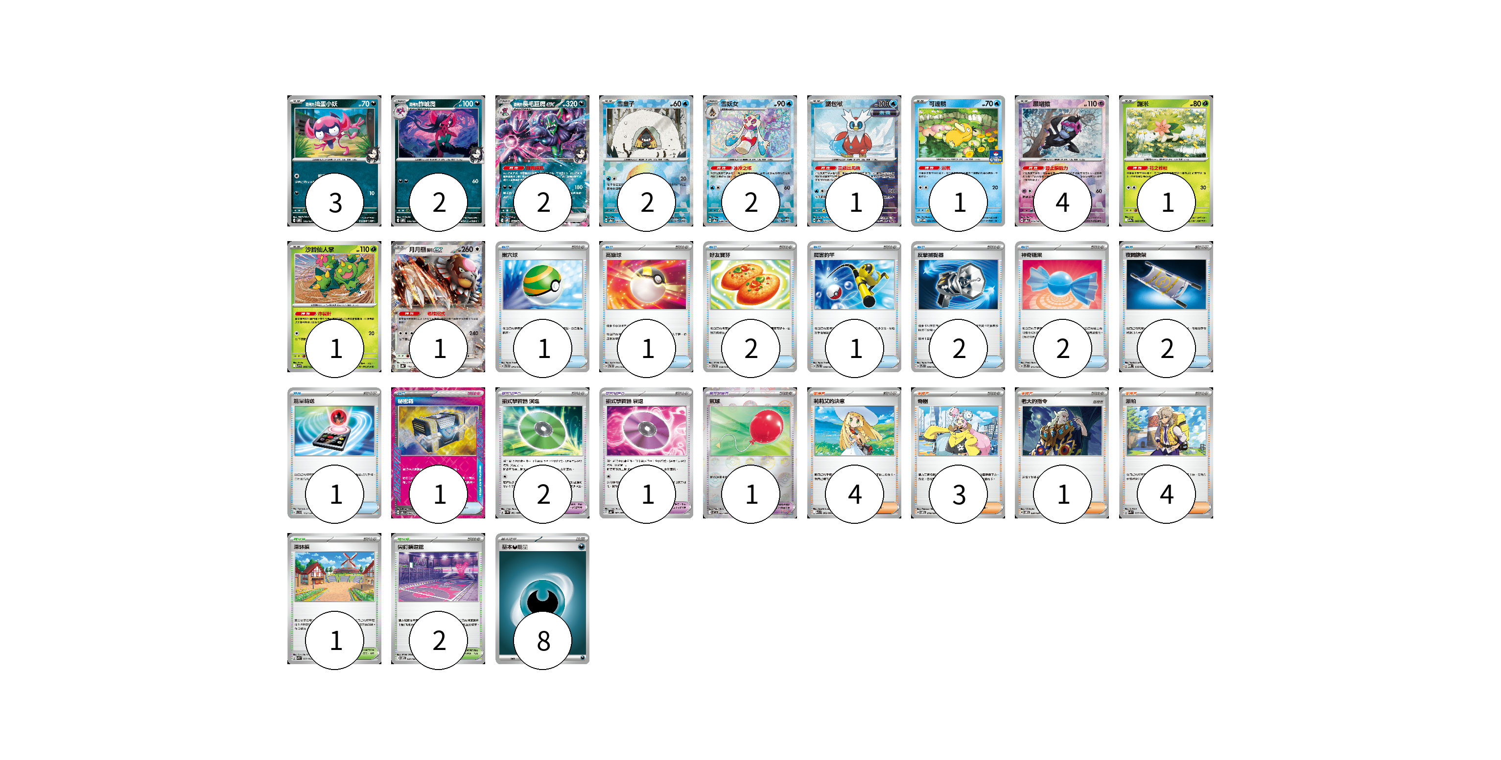 牌組構築方案 以此牌組為基礎新構築牌組 顯示卡面 顯示列表 寶可夢卡(20) 3 2 2 2 2 1 1 4 1 1 1 寶可夢道具(4) 2 1 1 物品卡(13) 1 1 2 1 2 2 2 1 1 支援者卡(12) 4 3 1 4 競技場卡(3) 1 2 能量卡(8) 8 寶可夢卡(20) 卡牌名稱 張數 卡牌名稱 張數 <瑪俐的>搗蛋小妖 SVOM 005/021 03 <瑪俐的>詐唬魔 SVOM 006/021 02 <瑪俐的>長毛巨魔ex SVOM 007/021 02 雪童子 SV8a 037/187 02 雪妖女 SV8a 038/187 02 鐵包袱 SV8a 047/187 01 可達鴨 SV-P 220/SV-P 01 願增猿 SV8a 075/187 04 謝米 SV9a 006/063 01 沙鈴仙人掌 SV9 006/100 01 月月熊 赫月ex SV8a 134/187 01 寶可夢道具(4) 卡牌名稱 張數 卡牌名稱 張數 招式學習器 演進 SV4M 063/066 02 招式學習器 衰退 SV4K 063/066 01 氣球 SV11B 082/086 01 物品卡(13) 卡牌名稱 張數 卡牌名稱 張數 巢穴球 SVTH 010/018 01 高級球 SVTH 011/018 01 好友寶芬 SVTH 009/018 02 厲害釣竿 SVTL 009/021 01 反擊捕捉器 SVTS 009/022 02 神奇糖果 SVTS 015/022 02 夜間擔架 MBD 016/022 02 能量輸送 SVD 112/139 01 秘密箱 SV6 092/101 01 支援者卡(12) 卡牌名稱 張數 卡牌名稱 張數 莉莉艾的決意 M1L 062/063 04 奇樹 SVOM 018/021 03 老大的指令 SVOM 020/021 01 派帕 SVK 035/042 04 競技場卡(3) 卡牌名稱 張數 卡牌名稱 張數 深缽鎮 SVK 039/042 01 尖釘鎮道館 SVOM 021/021 02 能量卡(8) 卡牌名稱 張數 卡牌名稱 張數 基本惡能量 sv-p DAR 08 以此牌組為基礎新構築牌組 牌組編碼 QbPlMP-SIdxMP-XAQRGq copy 列印牌組單 牌組編碼已複製 分享至SNS