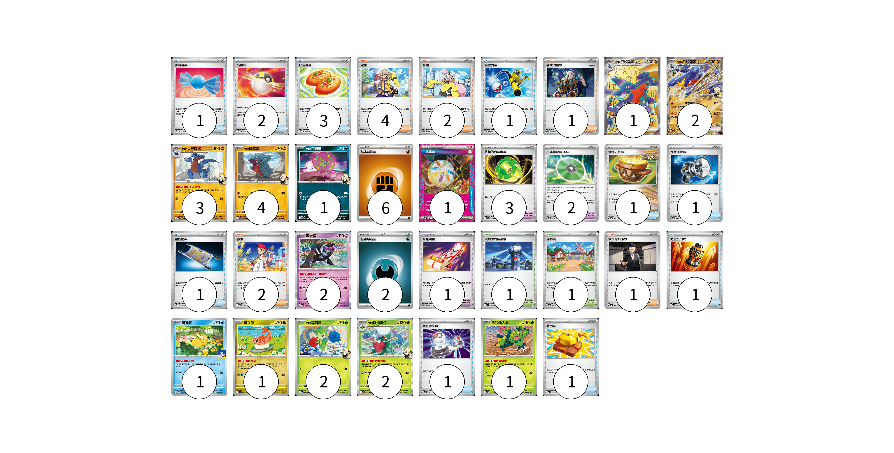 牌組構築方案 以此牌組為基礎新構築牌組 顯示卡面 顯示列表 寶可夢卡(20) 1 2 3 4 1 2 1 1 2 2 1 寶可夢道具(6) 3 2 1 物品卡(13) 1 2 3 1 1 1 1 1 1 1 支援者卡(10) 4 2 1 2 1 競技場卡(2) 1 1 能量卡(9) 6 1 2 寶可夢卡(20) 卡牌名稱 張數 卡牌名稱 張數 <竹蘭的>烈咬陸鯊ex SV9a 080/063 01 <竹蘭的>烈咬陸鯊ex SV9a 044/063 02 <竹蘭的>尖牙陸鯊 SV9a 043/063 03 <竹蘭的>圓陸鯊 SV9a 042/063 04 <竹蘭的>花岩怪 SV9a 050/063 01 願增猿 SV8a 075/187 02 可達鴨 SV-P 220/SV-P 01 米立龍 SVK 002/042 01 <竹蘭的>毒薔薇 SV9a 004/063 02 <竹蘭的>羅絲雷朵 SV9a 005/063 02 沙鈴仙人掌 SV9 006/100 01 寶可夢道具(6) 卡牌名稱 張數 卡牌名稱 張數 竹蘭的力量負重 SV9a 060/063 03 招式學習器 演進 SV8a 160/187 02 緊急滑板 SVOD 015/020 01 物品卡(13) 卡牌名稱 張數 卡牌名稱 張數 神奇糖果 SVOD 013/020 01 高級球 SVOD 012/020 02 好友寶芬 SVOD 011/020 03 厲害釣竿 SVOD 010/020 01 大地之容器 SV8a 143/187 01 反擊捕捉器 SV8a 139/187 01 夜間擔架 SVOM 016/021 01 力量蛋白飲 M1L 058/063 01 寶可夢交替 SVM 136/175 01 戰鬥鑼 M1L 059/063 01 支援者卡(10) 卡牌名稱 張數 卡牌名稱 張數 派帕 SVOD 018/020 04 奇樹 SVOD 016/020 02 老大的指令 SVOD 019/020 01 赤松 SV8a 163/187 02 坂木的領導力 SV4a 173/190 01 競技場卡(2) 卡牌名稱 張數 卡牌名稱 張數 火箭隊的監視塔 SV10 096/098 01 深缽鎮 SVK 039/042 01 能量卡(9) 卡牌名稱 張數 卡牌名稱 張數 基本【鬥】能量 SVD FIG 06 古舊能量 SV8a 187/187 01 基本惡能量 sv-p DAR 02 以此牌組為基礎新構築牌組 牌組編碼 RLPrZp-pLWrUp-liPxDt copy 列印牌組單 牌組編碼已複製 分享至SNS