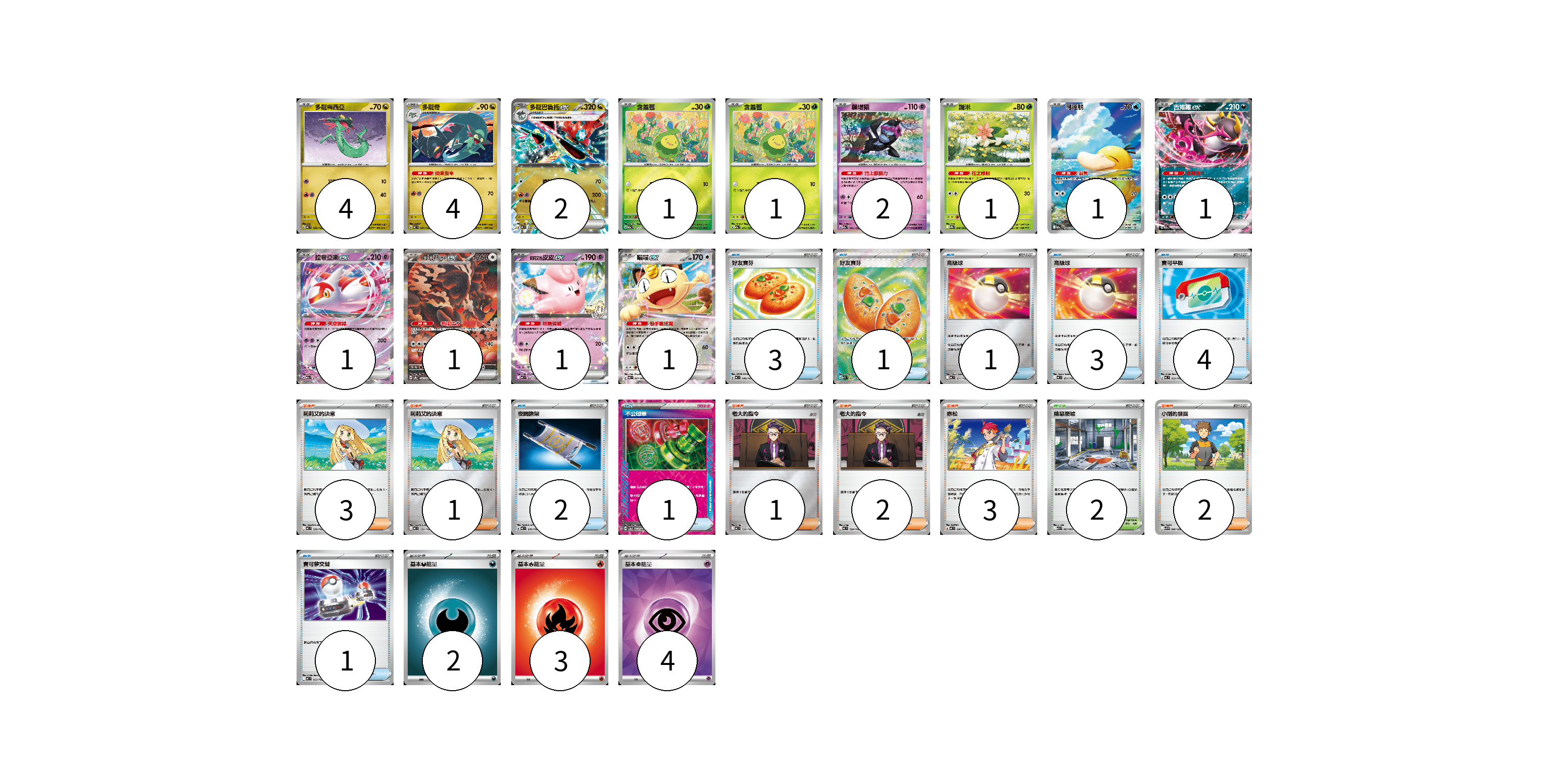 牌組構築方案 以此牌組為基礎新構築牌組 顯示卡面 顯示列表 寶可夢卡(21) 4 4 2 1 1 2 1 1 1 1 1 1 1 物品卡(16) 3 1 1 3 4 2 1 1 支援者卡(12) 3 1 1 2 3 2 競技場卡(2) 2 能量卡(9) 2 3 4 寶可夢卡(21) 卡牌名稱 張數 卡牌名稱 張數 多龍梅西亞 MC 546/742 04 多龍奇 MC 547/742 04 多龍巴魯托ex MC 548/742 02 含羞苞 M2a 011/193 01 含羞苞 M2a 011/193 01 願增猿 M2a 081/193 02 謝米 SV9a 006/063 01 可達鴨 M2a 199/193 01 吉雉雞ex M2a 114/193 01 拉帝亞斯ex M2a 075/193 01 月月熊 赫月ex SV8a 225/187 01 <莉莉艾的>皮皮ex MC 287/742 01 喵喵ex M3 061/080 01 物品卡(16) 卡牌名稱 張數 卡牌名稱 張數 好友寶芬 MC 648/742 03 好友寶芬 M1S 081/063 01 高級球 MC 651/742 01 高級球 MC 651/742 03 寶可平板 MC 662/742 04 夜間擔架 MC 670/742 02 不公印章 SV5a 053/066 01 寶可夢交替 MC 663/742 01 支援者卡(12) 卡牌名稱 張數 卡牌名稱 張數 莉莉艾的決意 MC 729/742 03 莉莉艾的決意 MC 729/742 01 老大的指令 MC 724/742 01 老大的指令 MC 724/742 02 赤松 MC 696/742 03 小剛的發掘 SV9 096/100 02 競技場卡(2) 卡牌名稱 張數 卡牌名稱 張數 險惡廢墟 M1L 063/063 02 能量卡(9) 卡牌名稱 張數 卡牌名稱 張數 基本【惡】能量 MC DAR 02 基本【火】能量 MC FIR 03 基本【超】能量 SVOD PSY 04 以此牌組為基礎新構築牌組 牌組編碼 RMTJTu-GSVFbL-jIbPEt copy 列印牌組單 牌組編碼已複製 分享至SNS