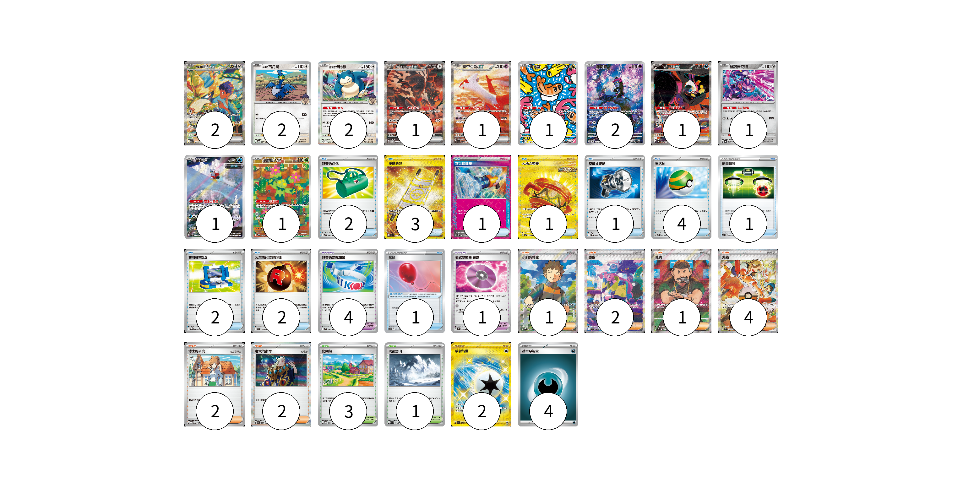 牌組構築方案 以此牌組為基礎新構築牌組 顯示卡面 顯示列表 寶可夢卡(15) 2 2 2 1 1 1 2 1 1 1 1 寶可夢道具(6) 4 1 1 物品卡(17) 2 3 1 1 1 4 1 2 2 支援者卡(12) 1 2 1 4 2 2 競技場卡(4) 3 1 能量卡(6) 2 4 寶可夢卡(15) 卡牌名稱 張數 卡牌名稱 張數 赫普的蒼響ex SV9 128/100 02 赫普的古月鳥 SV9 087/100 02 赫普的卡比獸 SV9 075/100 02 月月熊 赫月ex SV8a 225/187 01 拉帝亞斯ex SV7a 087/064 01 米立龍 SV6 112/101 01 願增猿 SV6 107/101 02 吉雉雞ex SV6a 089/064 01 蓋諾賽克特 SV6a 040/064 01 鐵包袱 SV4M 071/066 01 沙鈴仙人掌 SV9 101/100 01 寶可夢道具(6) 卡牌名稱 張數 卡牌名稱 張數 赫普的講究頭帶 SV9 092/100 04 氣球 SC1b 142/153 01 招式學習器 衰退 SV4K 063/066 01 物品卡(17) 卡牌名稱 張數 卡牌名稱 張數 赫普的包包 SV9 091/100 02 夜間擔架 SV8 137/106 03 頂尖捕捉器 SV8a 148/187 01 大地之容器 SV6a 093/064 01 反擊捕捉器 SV4M 059/066 01 巢穴球 SV1S 070/078 04 能量轉移 S11a 059/068 01 寶可裝置3.0 SV11B 081/086 02 火箭隊的驚嚇炸彈 SV10 089/098 02 支援者卡(12) 卡牌名稱 張數 卡牌名稱 張數 小剛的發掘 SV9 123/100 01 奇樹 SV4a 350/190 02 裁判 SV4a 342/190 01 派帕 SV4a 353/190 04 博士的研究 SV11B 084/086 02 老大的指令 SV1a 069/073 02 競技場卡(4) 卡牌名稱 張數 卡牌名稱 張數 化朗鎮 SV9 099/100 03 災禍雪山 SV2P 070/071 01 能量卡(6) 卡牌名稱 張數 卡牌名稱 張數 噴射能量 SV7a 094/064 02 基本【惡】能量 SVF DAR 04 以此牌組為基礎新構築牌組 牌組編碼 RaYTTL-IERESv-uBEfmf copy 列印牌組單 牌組編碼已複製 分享至SNS