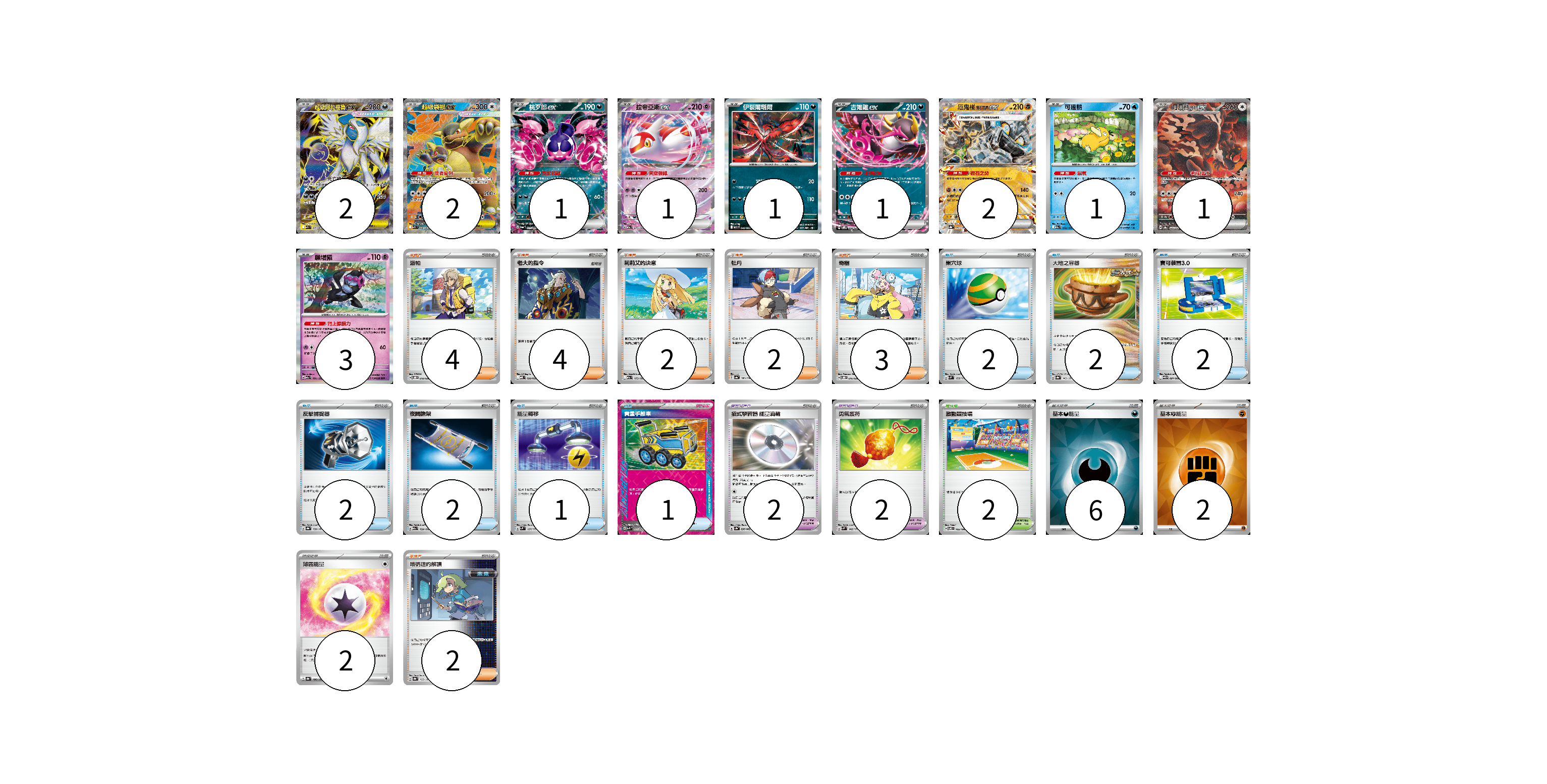 牌組構築方案 以此牌組為基礎新構築牌組 顯示卡面 顯示列表 寶可夢卡(15) 2 2 1 1 1 1 2 1 1 3 寶可夢道具(4) 2 2 物品卡(12) 2 2 2 2 2 1 1 支援者卡(17) 4 4 2 2 3 2 競技場卡(2) 2 能量卡(10) 6 2 2 寶可夢卡(15) 卡牌名稱 張數 卡牌名稱 張數 超級阿勃梭魯ex M1L 079/063 02 超級袋獸ex M1S 080/063 02 桃歹郎ex SV6a 039/064 01 拉帝亞斯ex M2a 075/193 01 伊裴爾塔爾 M1L 040/063 01 吉雉雞ex SVOM 009/021 01 厄鬼椪 礎石面具ex SV8a 091/187 02 可達鴨 M2a 032/193 01 月月熊 赫月ex SV8a 225/187 01 願增猿 M2a 081/193 03 寶可夢道具(4) 卡牌名稱 張數 卡牌名稱 張數 招式學習器 能量渦輪 SV3a 056/062 02 勇氣護符 SVM 142/175 02 物品卡(12) 卡牌名稱 張數 卡牌名稱 張數 巢穴球 SVM 133/175 02 大地之容器 SV8a 143/187 02 寶可裝置3.0 SV11B 081/086 02 反擊捕捉器 SV8a 139/187 02 夜間擔架 M2a 159/193 02 能量轉移 SVM 127/175 01 貴重手推車 SVK 020/042 01 支援者卡(17) 卡牌名稱 張數 卡牌名稱 張數 派帕 SVOD 018/020 04 老大的指令 MBD 020/022 04 莉莉艾的決意 M2a 175/193 02 牡丹 SV4a 182/190 02 奇樹 SVOD 016/020 03 暗碼迷的解讀 SV8a 165/187 02 競技場卡(2) 卡牌名稱 張數 卡牌名稱 張數 激動競技場 SV8 105/106 02 能量卡(10) 卡牌名稱 張數 卡牌名稱 張數 基本【惡】能量 SVM DAR 06 基本【鬥】能量 SVM FIG 02 薄霧能量 SV8a 186/187 02 以此牌組為基礎新構築牌組 牌組編碼 RgtTPx-dXrZoo-mwAYaX copy 列印牌組單 牌組編碼已複製 分享至SNS