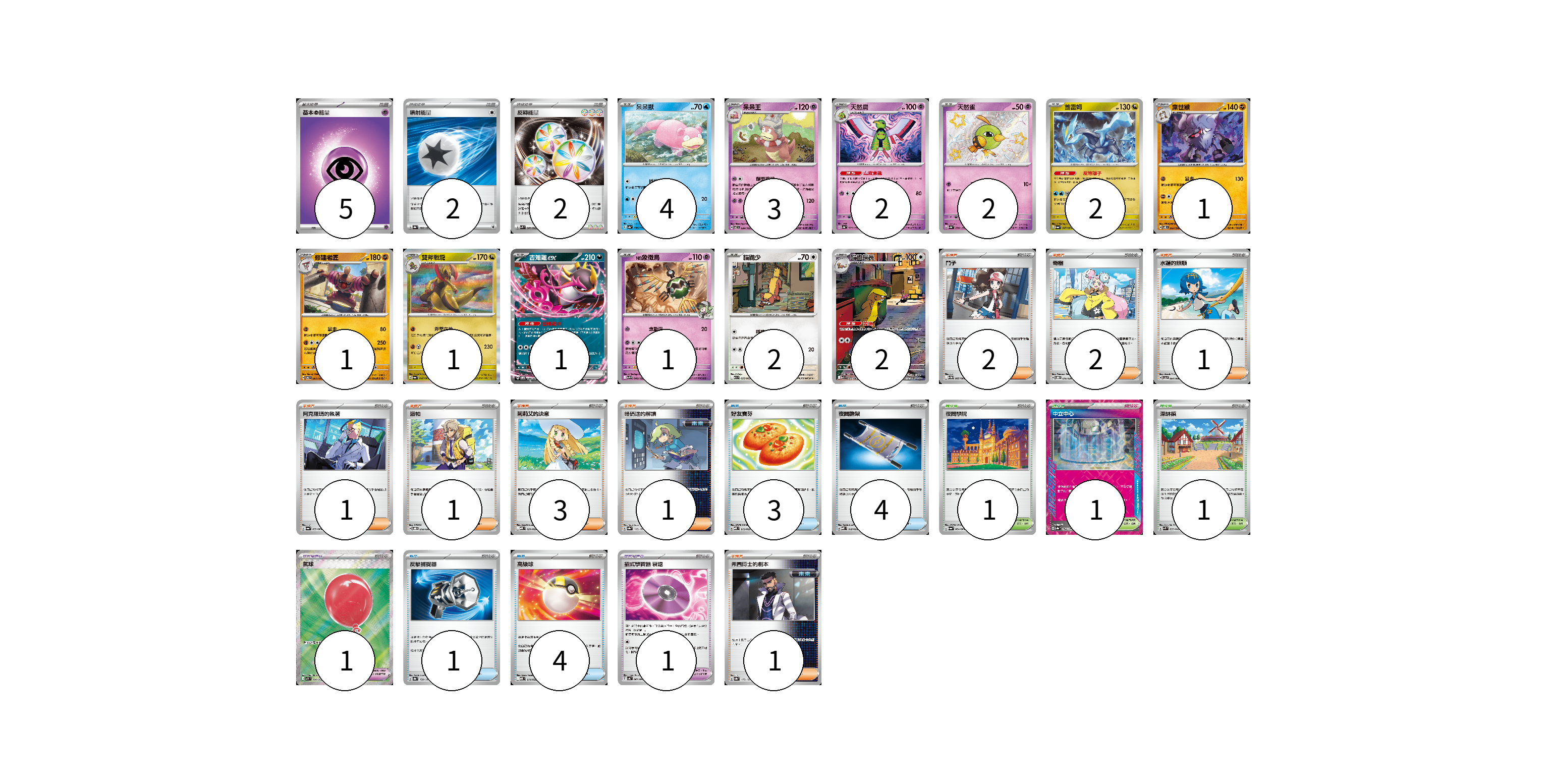 牌組構築方案 以此牌組為基礎新構築牌組 顯示卡面 顯示列表 寶可夢卡(22) 4 3 2 2 2 1 1 1 1 1 2 2 寶可夢道具(2) 1 1 物品卡(12) 3 4 1 4 支援者卡(12) 2 2 1 1 1 3 1 1 競技場卡(3) 1 1 1 能量卡(9) 5 2 2 寶可夢卡(22) 卡牌名稱 張數 卡牌名稱 張數 呆呆獸 SV4a 036/190 04 呆呆王 SV7 039/102 03 天然鳥 SV4a 079/190 02 天然雀 SV4a 256/190 02 酋雷姆 SV6a 047/064 02 棄世猴 SV8 062/106 01 修建老匠 SV6 061/101 01 雙斧戰龍 SV6a 046/064 01 吉雉雞ex SVOM 009/021 01 N的象徵鳥 SV9 040/100 01 貓鼬少 M1L 055/063 02 貓鼬探長 M1L 075/063 02 寶可夢道具(2) 卡牌名稱 張數 卡牌名稱 張數 氣球 M1L 084/063 01 招式學習器 衰退 SV4K 063/066 01 物品卡(12) 卡牌名稱 張數 卡牌名稱 張數 好友寶芬 MBD 013/022 03 夜間擔架 MBD 016/022 04 反擊捕捉器 SV8a 139/187 01 高級球 MBD 014/022 04 支援者卡(12) 卡牌名稱 張數 卡牌名稱 張數 鬥子 SV11W 085/086 02 奇樹 SVOD 016/020 02 水蓮的照顧 SV5a 064/066 01 阿克羅瑪的執著 SV6a 059/064 01 派帕 SVOD 018/020 01 莉莉艾的決意 MBD 021/022 03 暗碼迷的解讀 SV8a 165/187 01 弗圖博士的劇本 SV8a 175/187 01 競技場卡(3) 卡牌名稱 張數 卡牌名稱 張數 夜間學院 SV6a 064/064 01 中立中心 SV8a 184/187 01 深缽鎮 SVK 039/042 01 能量卡(9) 卡牌名稱 張數 卡牌名稱 張數 基本【超】能量 MBD PSY 05 噴射能量 SV8a 185/187 02 反轉能量 SVK 041/042 02 以此牌組為基礎新構築牌組 牌組編碼 SGiUDl-okbiNu-pLnfRh copy 列印牌組單 牌組編碼已複製 分享至SNS