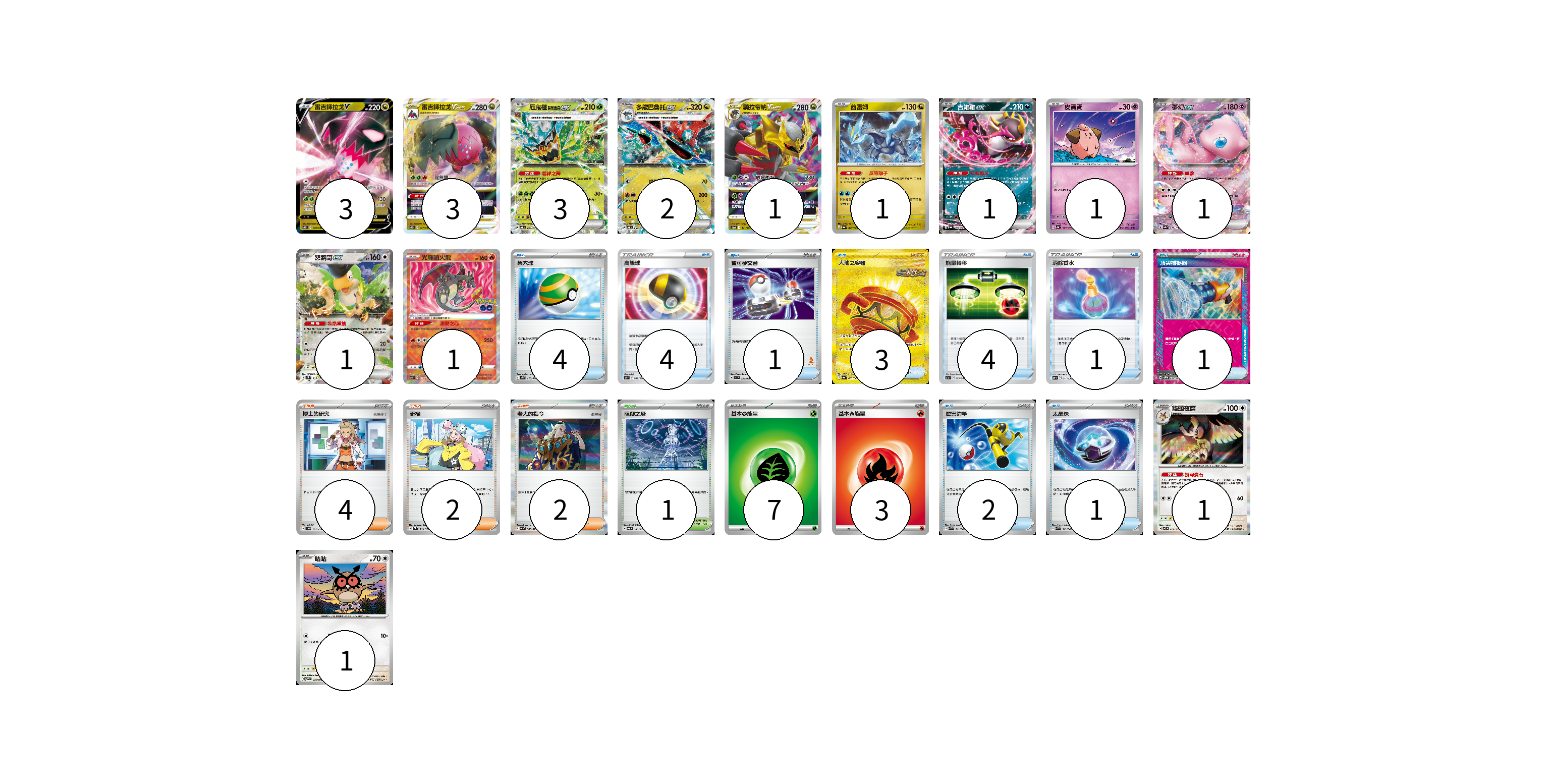 牌組構築方案 以此牌組為基礎新構築牌組 顯示卡面 顯示列表 寶可夢卡(20) 3 3 3 2 1 1 1 1 1 1 1 1 1 物品卡(21) 4 4 1 3 4 1 1 2 1 支援者卡(8) 4 2 2 競技場卡(1) 1 能量卡(10) 7 3 寶可夢卡(20) 卡牌名稱 張數 卡牌名稱 張數 雷吉鐸拉戈V S12 076/098 03 雷吉鐸拉戈VSTAR S12 077/098 03 厄鬼椪 碧草面具ex SV6 016/101 03 多龍巴魯托ex SV6 081/101 02 騎拉帝納VSTAR S12a 111/172 01 酋雷姆 SV6a 047/064 01 吉雉雞ex SV6a 038/064 01 皮寶寶 SV4a 077/190 01 夢幻ex SV4a 076/190 01 怒鸚哥ex SV2P 065/071 01 光輝噴火龍 S10b 011/071 01 貓頭夜鷹 SV7 077/102 01 咕咕 SV7 076/102 01 物品卡(21) 卡牌名稱 張數 卡牌名稱 張數 巢穴球 SV1S 070/078 04 高級球 S9 089/100 04 寶可夢交替 SVI 054/066 01 大地之容器 SV6a 093/064 03 能量轉移 S11a 059/068 04 消除香水 SVF 011/038 01 頂尖捕捉器 SV5M 062/071 01 厲害釣竿 SVK 011/042 02 太晶珠 SVK 013/042 01 支援者卡(8) 卡牌名稱 張數 卡牌名稱 張數 博士的研究(奧琳博士) SVD 135/139 04 奇樹 SV2D 069/071 02 老大的指令 SV1a 069/073 02 競技場卡(1) 卡牌名稱 張數 卡牌名稱 張數 阻礙之塔 SV6 100/101 01 能量卡(10) 卡牌名稱 張數 卡牌名稱 張數 基本【草】能量 SVF GRA 07 基本【火】能量 SVEL FIR 03 以此牌組為基礎新構築牌組 牌組編碼 ScAbNf-QOpIVP-PMGmrW copy 列印牌組單 牌組編碼已複製 分享至SNS