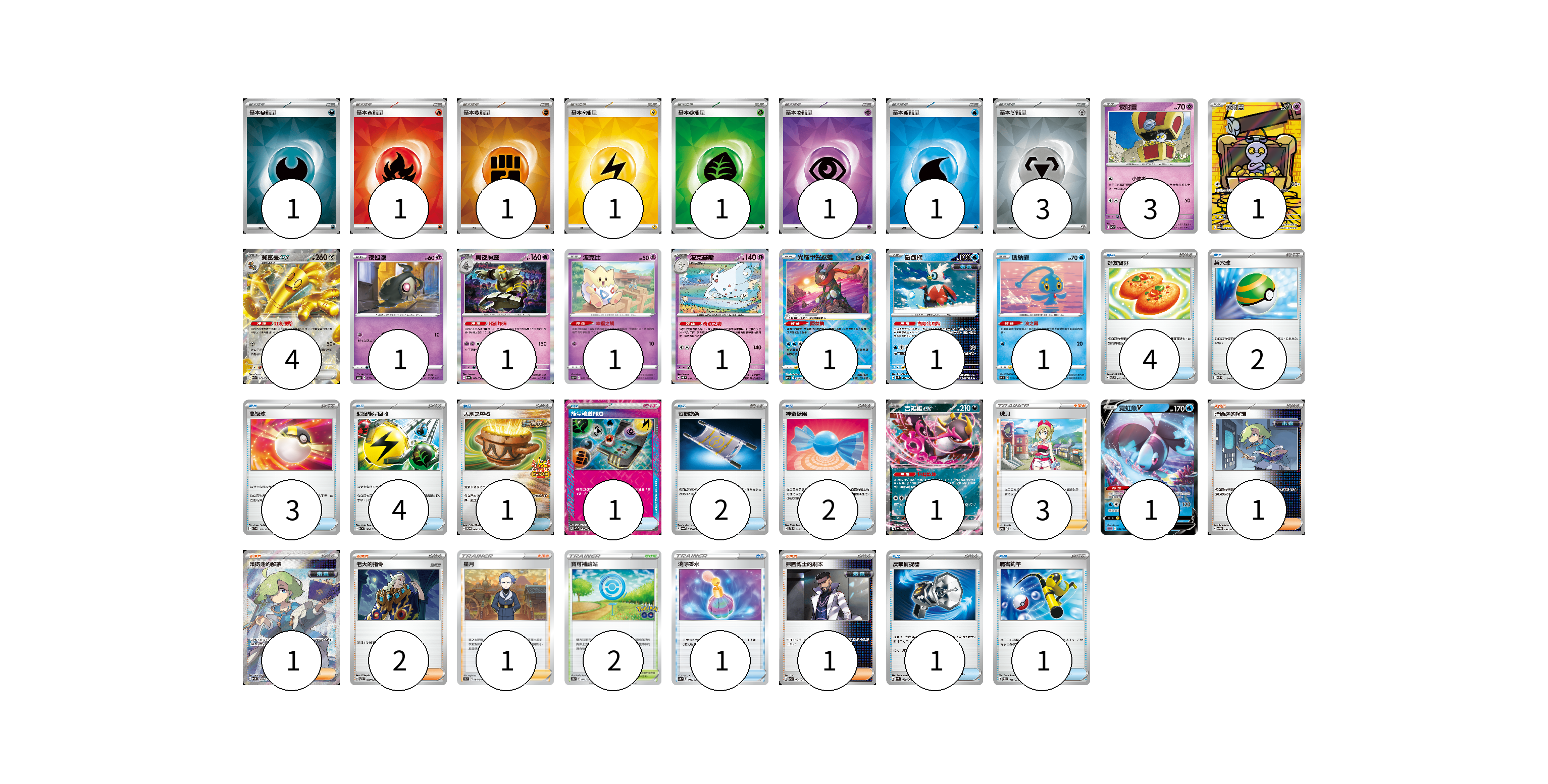 牌組構築方案 以此牌組為基礎新構築牌組 顯示卡面 顯示列表 寶可夢卡(18) 3 1 4 1 1 1 1 1 1 1 1 1 1 物品卡(21) 4 2 3 4 1 1 2 2 1 1 支援者卡(9) 3 1 1 2 1 1 競技場卡(2) 2 能量卡(10) 1 1 1 1 1 1 1 3 寶可夢卡(18) 卡牌名稱 張數 卡牌名稱 張數 索財靈 SV7a 024/064 03 索財靈 SV3a 068/062 01 賽富豪ex SV3a 050/062 04 夜巡靈 S12a 057/172 01 黑夜魔靈 SV6a 020/064 01 波克比 S10P 026/067 01 波克基斯 SV8 047/106 01 光輝甲賀忍蛙 SVF 004/038 01 鐵包袱 SV4M 020/066 01 瑪納霏 S9 031/100 01 吉雉雞ex SV6a 038/064 01 霓虹魚V SPD 002/020 01 厲害釣竿 SVEL 010/020 01 物品卡(21) 卡牌名稱 張數 卡牌名稱 張數 好友寶芬 SVTL 010/021 04 巢穴球 SVF 016/038 02 高級球 SVD 119/139 03 超級能量回收 SV1a 064/073 04 大地之容器 SV-P 084/SV-P 01 能量輸送PRO SV7a 052/064 01 夜間擔架 SV6a 056/064 02 神奇糖果 SVTS 015/022 02 消除香水 SVF 011/038 01 反擊捕捉器 SV4M 059/066 01 支援者卡(9) 卡牌名稱 張數 卡牌名稱 張數 珠貝 SVB 017/028 03 暗碼迷的解讀 SV5M 067/071 01 暗碼迷的解讀 SV5M 090/071 01 老大的指令 SVTS 020/022 02 星月 S9a 064/067 01 弗圖博士的劇本 SVK 034/042 01 競技場卡(2) 卡牌名稱 張數 卡牌名稱 張數 寶可補給站 S10b 071/071 02 能量卡(10) 卡牌名稱 張數 卡牌名稱 張數 基本【惡】能量 SVK DAR 01 基本【火】能量 SVK FIR 01 基本【鬥】能量 SVK FIG 01 基本【雷】能量 SVK LIG 01 基本【草】能量 SVK GRA 01 基本【超】能量 SVK PSY 01 基本【水】能量 SVK WAT 01 基本【鋼】能量 SVK MET 03 以此牌組為基礎新構築牌組 牌組編碼 TaWkby-ADomRU-qbbFVz copy 列印牌組單 牌組編碼已複製 分享至SNS