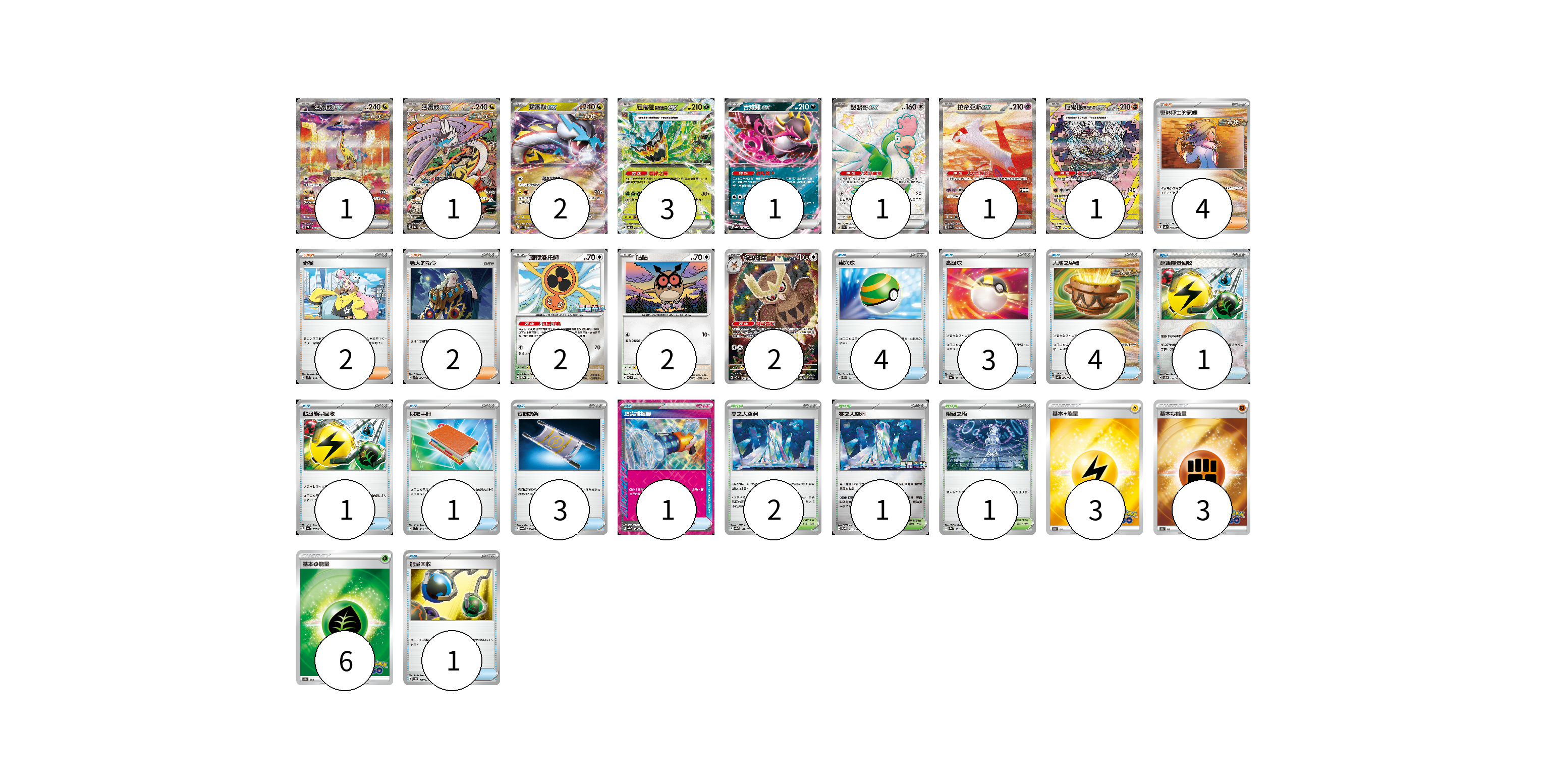牌組構築方案 以此牌組為基礎新構築牌組 顯示卡面 顯示列表 寶可夢卡(17) 1 1 2 3 1 1 1 1 2 2 2 物品卡(19) 4 3 4 1 1 1 3 1 1 支援者卡(8) 4 2 2 競技場卡(4) 2 1 1 能量卡(12) 3 3 6 寶可夢卡(17) 卡牌名稱 張數 卡牌名稱 張數 猛雷鼓ex SV5K 095/071 01 猛雷鼓ex SV8a 222/187 01 猛雷鼓ex SV5K 053/071 02 厄鬼椪 碧草面具ex SV6 016/101 03 吉雉雞ex SV8a 104/187 01 怒鸚哥ex SV4a 337/190 01 拉帝亞斯ex SV7a 087/064 01 厄鬼椪 礎石面具ex SV8a 216/187 01 旋轉洛托姆 SV-P 146/SV-P 02 咕咕 SV7 076/102 02 貓頭夜鷹 SV7 114/102 02 物品卡(19) 卡牌名稱 張數 卡牌名稱 張數 巢穴球 SVEL 011/020 04 高級球 SV4a 161/190 03 大地之容器 SV4K 060/066 04 超級能量回收 SV8a 141/187 01 超級能量回收 SV4a 157/190 01 朋友手冊 SV1S 069/078 01 夜間擔架 SV6a 056/064 03 頂尖捕捉器 SV8a 148/187 01 能量回收 SVD 110/139 01 支援者卡(8) 卡牌名稱 張數 卡牌名稱 張數 奧琳博士的氣魄 SV4K 064/066 04 奇樹 SVM 160/175 02 老大的指令 SVK 036/042 02 競技場卡(4) 卡牌名稱 張數 卡牌名稱 張數 零之大空洞 SV8a 182/187 02 零之大空洞 SV-P 151/SV-P 01 阻礙之塔 SV8a 181/187 01 能量卡(12) 卡牌名稱 張數 卡牌名稱 張數 基本雷能量 S10b LIG 03 基本鬥能量 S10b FIG 03 基本草能量 S10b GRA 06 以此牌組為基礎新構築牌組 牌組編碼 Tqpjvp-FVqpiv-SOIIBo copy 列印牌組單 牌組編碼已複製 分享至SNS