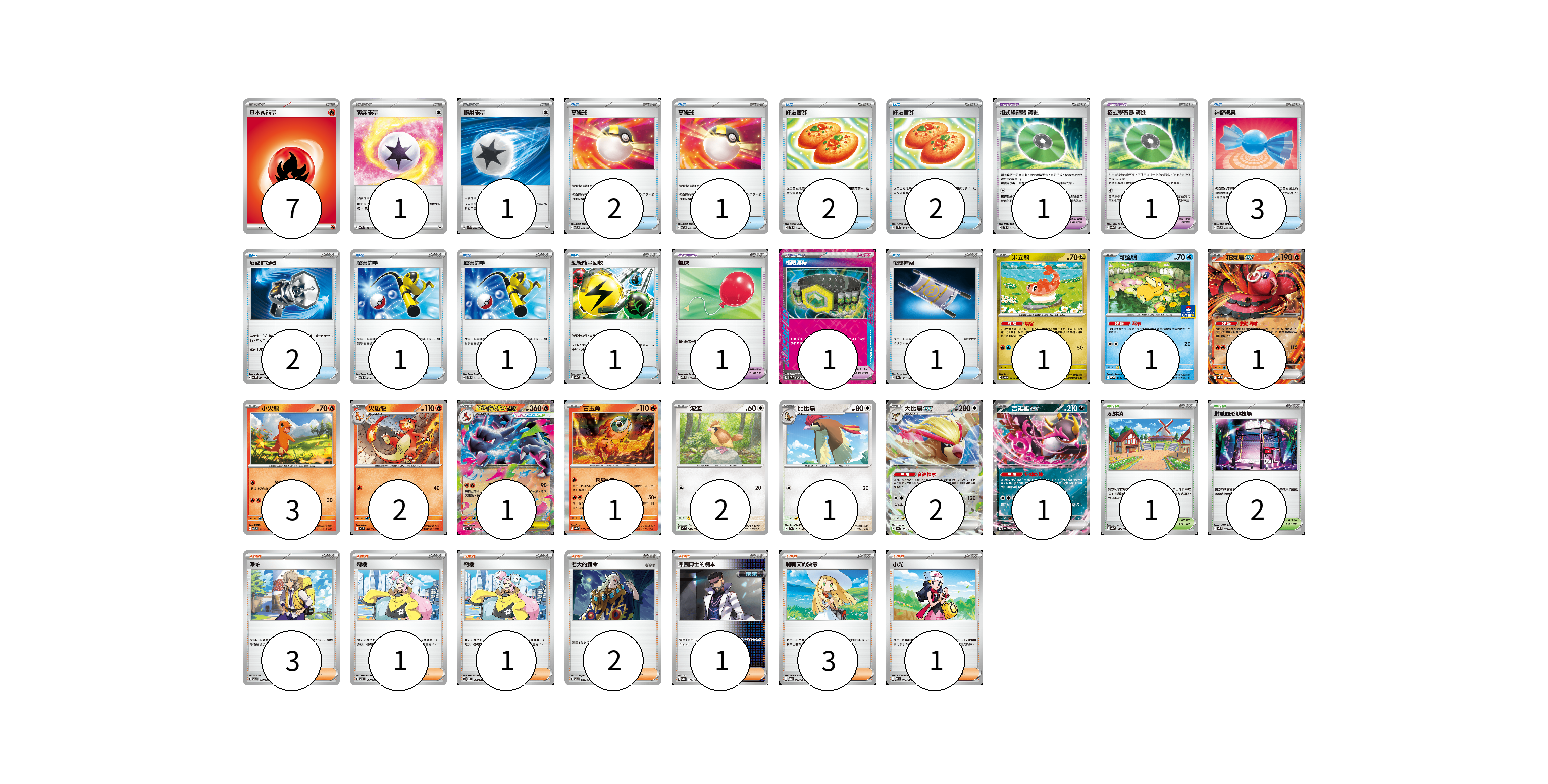 牌組構築方案 以此牌組為基礎新構築牌組 顯示卡面 顯示列表 寶可夢卡(16) 1 1 1 3 2 1 1 2 1 2 1 寶可夢道具(4) 1 1 1 1 物品卡(16) 2 1 2 2 3 2 1 1 1 1 支援者卡(12) 3 1 1 2 1 3 1 競技場卡(3) 1 2 能量卡(9) 7 1 1 寶可夢卡(16) 卡牌名稱 張數 卡牌名稱 張數 米立龍 SV6 082/101 01 可達鴨 SV-P 220/SV-P 01 花舞鳥ex M2 018/080 01 小火龍 SVTL 001/021 03 火恐龍 M2 012/080 02 超級噴火龍Xex M2 013/080 01 古玉魚 SV8a 025/187 01 波波 SV3 087/108 02 比比鳥 SV2a 017/165 01 大比鳥ex SV4a 139/190 02 吉雉雞ex SV6a 038/064 01 寶可夢道具(4) 卡牌名稱 張數 卡牌名稱 張數 招式學習器 演進 SVTL 017/021 01 招式學習器 演進 SV8a 160/187 01 氣球 MBD 018/022 01 極限腰帶 SV5K 066/071 01 物品卡(16) 卡牌名稱 張數 卡牌名稱 張數 高級球 SVTL 012/021 02 高級球 SVTR 014/021 01 好友寶芬 SVTL 010/021 02 好友寶芬 SV5K 063/071 02 神奇糖果 SVTL 013/021 03 反擊捕捉器 SV4M 059/066 02 厲害釣竿 SVTL 009/021 01 厲害釣竿 SVTR 012/021 01 超級能量回收 SV4a 157/190 01 夜間擔架 SV8a 151/187 01 支援者卡(12) 卡牌名稱 張數 卡牌名稱 張數 派帕 SVTL 020/021 03 奇樹 SVTR 017/021 01 奇樹 SVOM 018/021 01 老大的指令 SVTL 021/021 02 弗圖博士的劇本 SV8a 175/187 01 莉莉艾的決意 M1L 062/063 03 小光 M2 077/080 01 競技場卡(3) 卡牌名稱 張數 卡牌名稱 張數 深缽鎮 SV4a 185/190 01 對戰圓形競技場 M2 079/080 02 能量卡(9) 卡牌名稱 張數 卡牌名稱 張數 基本火能量 sv-p FIR 07 薄霧能量 SV5M 071/071 01 噴射能量 SVK 040/042 01 以此牌組為基礎新構築牌組 牌組編碼 UBMwuV-NhGAHc-kosWKa copy 列印牌組單 牌組編碼已複製 分享至SNS