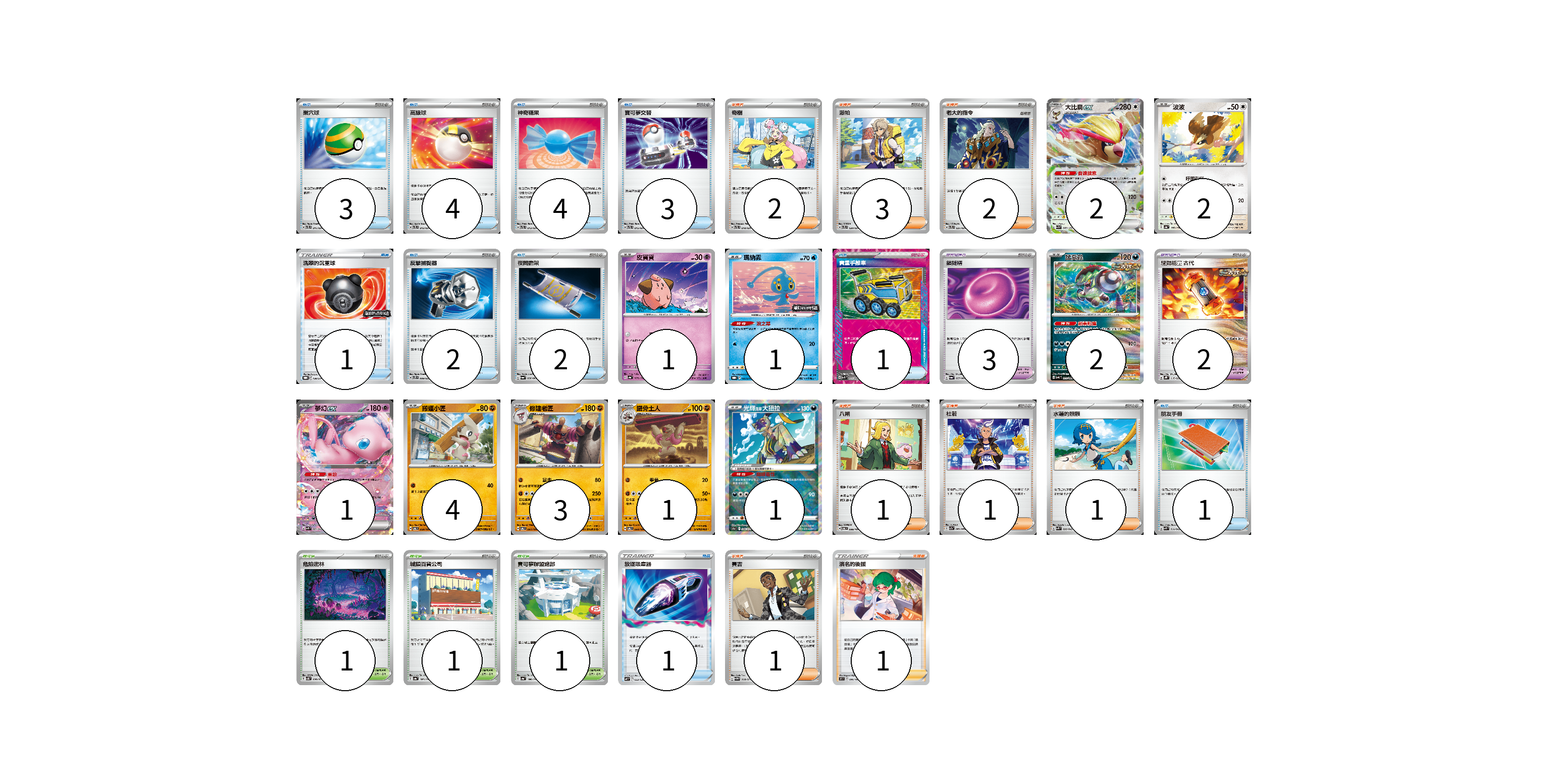 牌組構築方案 以此牌組為基礎新構築牌組 顯示卡面 顯示列表 寶可夢卡(18) 2 2 1 1 2 1 4 3 1 1 寶可夢道具(7) 2 3 2 物品卡(22) 3 4 4 3 1 2 2 1 1 1 支援者卡(10) 3 2 1 1 1 1 1 競技場卡(3) 1 1 1 寶可夢卡(18) 卡牌名稱 張數 卡牌名稱 張數 大比鳥ex SV3 089/108 02 波波 SV4a 137/190 02 皮寶寶 SV4a 077/190 01 瑪納霏 SV-P 135/SV-P 01 猛惡菇 SV4K 053/066 02 夢幻ex SVK 001/042 01 搬運小匠 SV6 059/101 04 修建老匠 SV6 061/101 03 鐵骨土人 SV6 060/101 01 光輝洗翠 大狃拉 S10a 046/071 01 寶可夢道具(7) 卡牌名稱 張數 卡牌名稱 張數 奇樹 SVTL 018/021 02 鎖鏈糬 SV6a 057/064 03 驅勁能量 古代 SVHK 016/022 02 物品卡(22) 卡牌名稱 張數 卡牌名稱 張數 巢穴球 SVTL 011/021 03 高級球 SVTL 012/021 04 神奇糖果 SVTL 013/021 04 寶可夢交替 SVTL 015/021 03 洗翠的沉重球 SV-P 138/SV-P 01 反擊捕捉器 SVTS 009/022 02 夜間擔架 SV6a 056/064 02 貴重手推車 SVK 020/042 01 朋友手冊 SVK 014/042 01 放逐吸塵器 SVF 023/038 01 支援者卡(10) 卡牌名稱 張數 卡牌名稱 張數 派帕 SVTL 020/021 03 老大的指令 SVTL 021/021 02 八朔 SV6 098/101 01 杜若 SV7a 060/064 01 水蓮的照顧 SVK 028/042 01 賽吉 SV5M 068/071 01 濱名的後援 S9 096/100 01 競技場卡(3) 卡牌名稱 張數 卡牌名稱 張數 危險密林 SV5K 070/071 01 城鎮百貨公司 SV4a 183/190 01 寶可夢聯盟總部 SV4a 186/190 01 以此牌組為基礎新構築牌組 牌組編碼 UXvPdf-URvsCy-uMRmof copy 列印牌組單 牌組編碼已複製 分享至SNS
