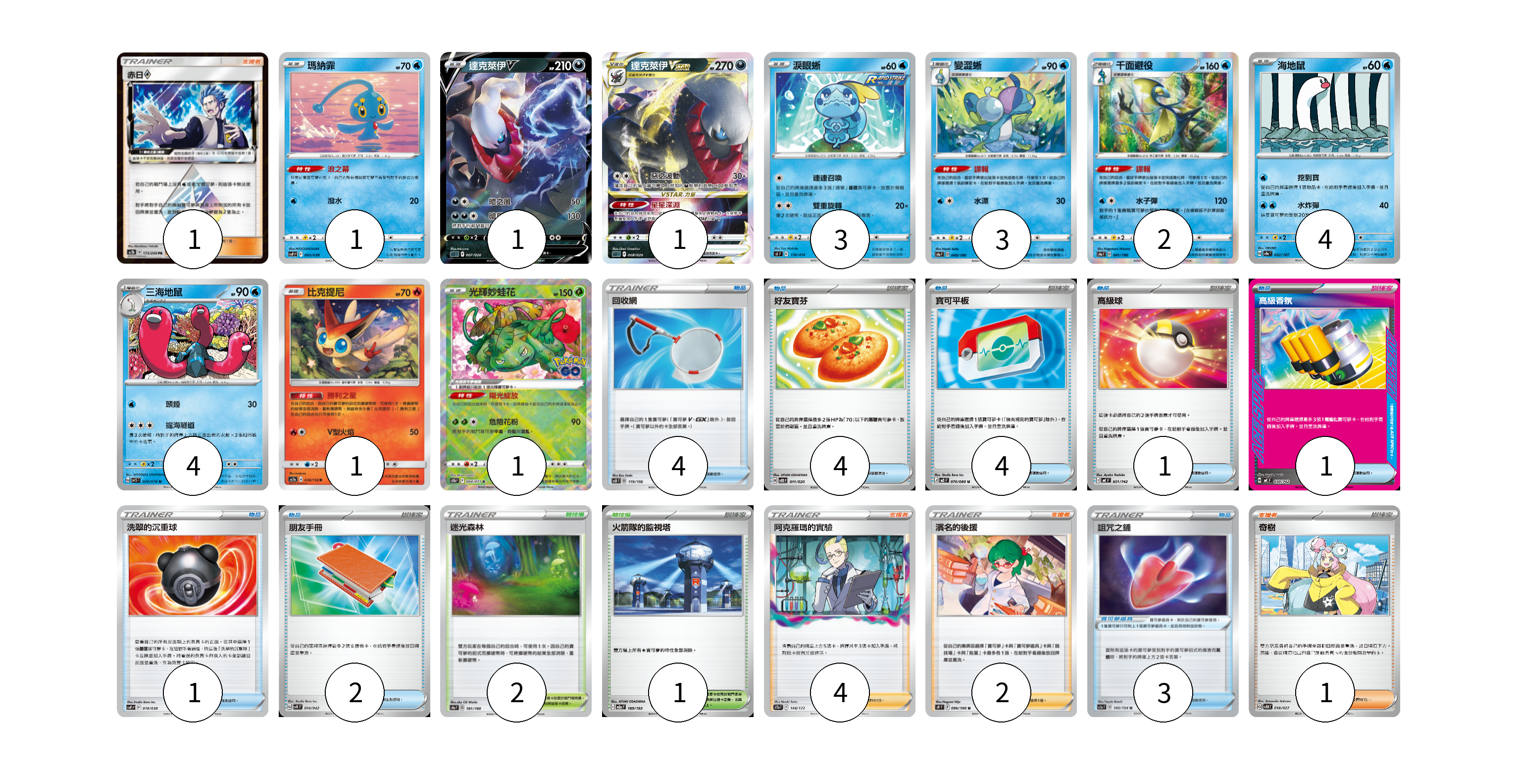 牌組構築方案 以此牌組為基礎新構築牌組 顯示卡面 顯示列表 寶可夢卡(21) 1 1 1 3 3 2 4 4 1 1 寶可夢道具(3) 3 物品卡(17) 4 4 4 1 1 1 2 支援者卡(8) 1 4 2 1 競技場卡(3) 2 1 寶可夢卡(21) 卡牌名稱 張數 卡牌名稱 張數 瑪納霏 SVF 003/038 01 達克萊伊V SLD 007/020 01 達克萊伊VSTAR SLD 008/020 01 淚眼蜥 SI 116/414 03 變澀蜥 S4a 040/190 03 千面避役 S4a 041/190 02 海地鼠 SV8a 042/187 04 三海地鼠 SV1S 020/078 04 比克提尼 AC1a 036/158 01 光輝妙蛙花 S10b 004/071 01 寶可夢道具(3) 卡牌名稱 張數 卡牌名稱 張數 詛咒之鏟 SC1a 145/154 03 物品卡(17) 卡牌名稱 張數 卡牌名稱 張數 回收網 SCB 119/156 04 好友寶芬 SVOD 011/020 04 寶可平板 M3 070/080 04 高級球 MC 651/742 01 高級香氛 MC 650/742 01 洗翠的沉重球 SVF 019/038 01 朋友手冊 SVK 014/042 02 支援者卡(8) 卡牌名稱 張數 卡牌名稱 張數 赤日◇ AC2b 173/200 01 阿克羅瑪的實驗 S12a 148/172 04 濱名的後援 S9 096/100 02 奇樹 SVHM 018/022 01 競技場卡(3) 卡牌名稱 張數 卡牌名稱 張數 迷光森林 S4a 181/190 02 火箭隊的監視塔 M2a 189/193 01 以此牌組為基礎新構築牌組 牌組編碼 UaTsHQ-ZPCkRp-cySpUI copy 列印牌組單 牌組編碼已複製 分享至SNS
