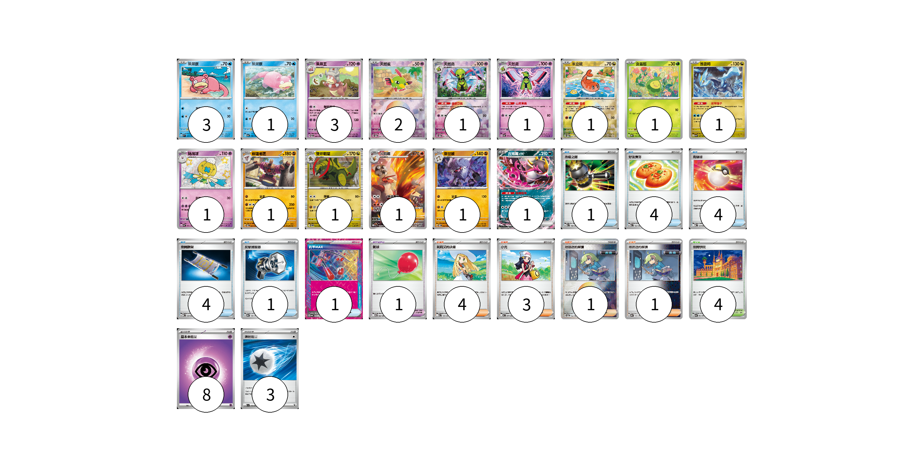 牌組構築方案 以此牌組為基礎新構築牌組 顯示卡面 顯示列表 寶可夢卡(20) 3 1 3 2 1 1 1 1 1 1 1 1 1 1 1 寶可夢道具(1) 1 物品卡(15) 1 4 4 4 1 1 支援者卡(9) 4 3 1 1 競技場卡(4) 4 能量卡(11) 8 3 寶可夢卡(20) 卡牌名稱 張數 卡牌名稱 張數 呆呆獸 SVM 027/175 03 呆呆獸 SV4a 036/190 01 呆呆王 SV7 039/102 03 天然雀 SV8a 060/187 02 天然鳥 SV8a 061/187 01 天然鳥 SV4a 079/190 01 米立龍 SV8a 121/187 01 含羞苞 SV8a 001/187 01 酋雷姆 SV6a 047/064 01 隨風球 SV4a 261/190 01 修建老匠 SV6 061/101 01 雙斧戰龍 SV11B 072/086 01 火焰雞 SV10 101/098 01 棄世猴 SV8 062/106 01 吉雉雞ex M2a 114/193 01 寶可夢道具(1) 卡牌名稱 張數 卡牌名稱 張數 氣球 SV11B 082/086 01 物品卡(15) 卡牌名稱 張數 卡牌名稱 張數 改造之錘 M2a 148/193 01 好友寶芬 M2a 153/193 04 高級球 MBD 014/022 04 夜間擔架 MBD 016/022 04 反擊捕捉器 SV8a 139/187 01 釣竿MAX SV8a 142/187 01 支援者卡(9) 卡牌名稱 張數 卡牌名稱 張數 莉莉艾的決意 M2a 175/193 04 小光 M2 077/080 03 暗碼迷的解讀 SV8a 165/187 01 暗碼迷的解讀 SV8a 165/187 01 競技場卡(4) 卡牌名稱 張數 卡牌名稱 張數 夜間學院 SV6a 064/064 04 能量卡(11) 卡牌名稱 張數 卡牌名稱 張數 基本【超】能量 MBD PSY 08 噴射能量 SV1a 072/073 03 以此牌組為基礎新構築牌組 牌組編碼 VYGDkF-uWVPUS-QYOOev copy 列印牌組單 牌組編碼已複製 分享至SNS