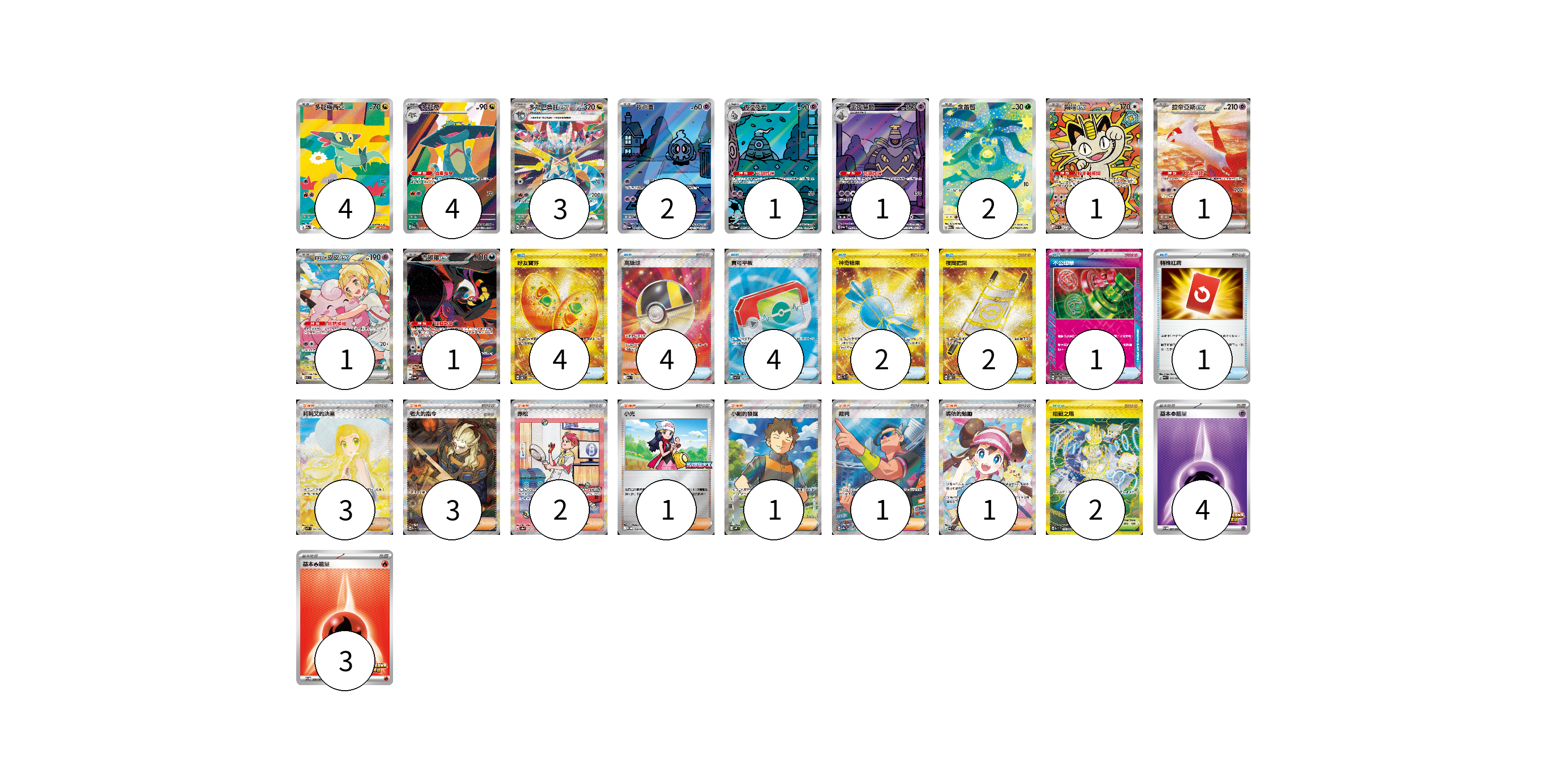牌組構築方案 以此牌組為基礎新構築牌組 顯示卡面 顯示列表 寶可夢卡(21) 4 4 3 2 1 1 2 1 1 1 1 物品卡(18) 4 4 4 2 2 1 1 支援者卡(12) 3 3 2 1 1 1 1 競技場卡(2) 2 能量卡(7) 4 3 寶可夢卡(21) 卡牌名稱 張數 卡牌名稱 張數 多龍梅西亞 M2a 211/193 04 多龍奇 M2a 212/193 04 多龍巴魯托ex SV8a 221/187 03 夜巡靈 SV6a 068/064 02 彷徨夜靈 SV6a 069/064 01 黑夜魔靈 SV6a 070/064 01 含羞苞 M2a 196/193 02 喵喵ex M3 114/080 01 拉帝亞斯ex SV7a 087/064 01 莉莉艾的皮皮ex MC 765/742 01 吉雉雞ex SV6a 089/064 01 物品卡(18) 卡牌名稱 張數 卡牌名稱 張數 好友寶芬 SV6 133/101 04 高級球 M2a 216/193 04 寶可平板 M3 103/080 04 神奇糖果 SV1V 107/078 02 夜間擔架 SV8 137/106 02 不公印章 SV5a 053/066 01 特殊紅牌 M4 072/083 01 支援者卡(12) 卡牌名稱 張數 卡牌名稱 張數 莉莉艾的決意 M1L 091/063 03 老大的指令(魁奇思) SV1a 100/073 03 赤松 SV8a 227/187 02 小光 M-P 028/M-P 01 小剛的發掘 SV9 123/100 01 裁判 SV9a 083/063 01 鳴依的勉勵 M3 115/080 01 競技場卡(2) 卡牌名稱 張數 卡牌名稱 張數 阻礙之塔 SV10 132/098 02 能量卡(7) 卡牌名稱 張數 卡牌名稱 張數 基本【超】能量 SV-P 261/SV-P 04 基本【火】能量 SV-P 258/SV-P 03 以此牌組為基礎新構築牌組 牌組編碼 WcHDWz-QzeYOC-Eqaauc copy 列印牌組單 牌組編碼已複製 分享至SNS