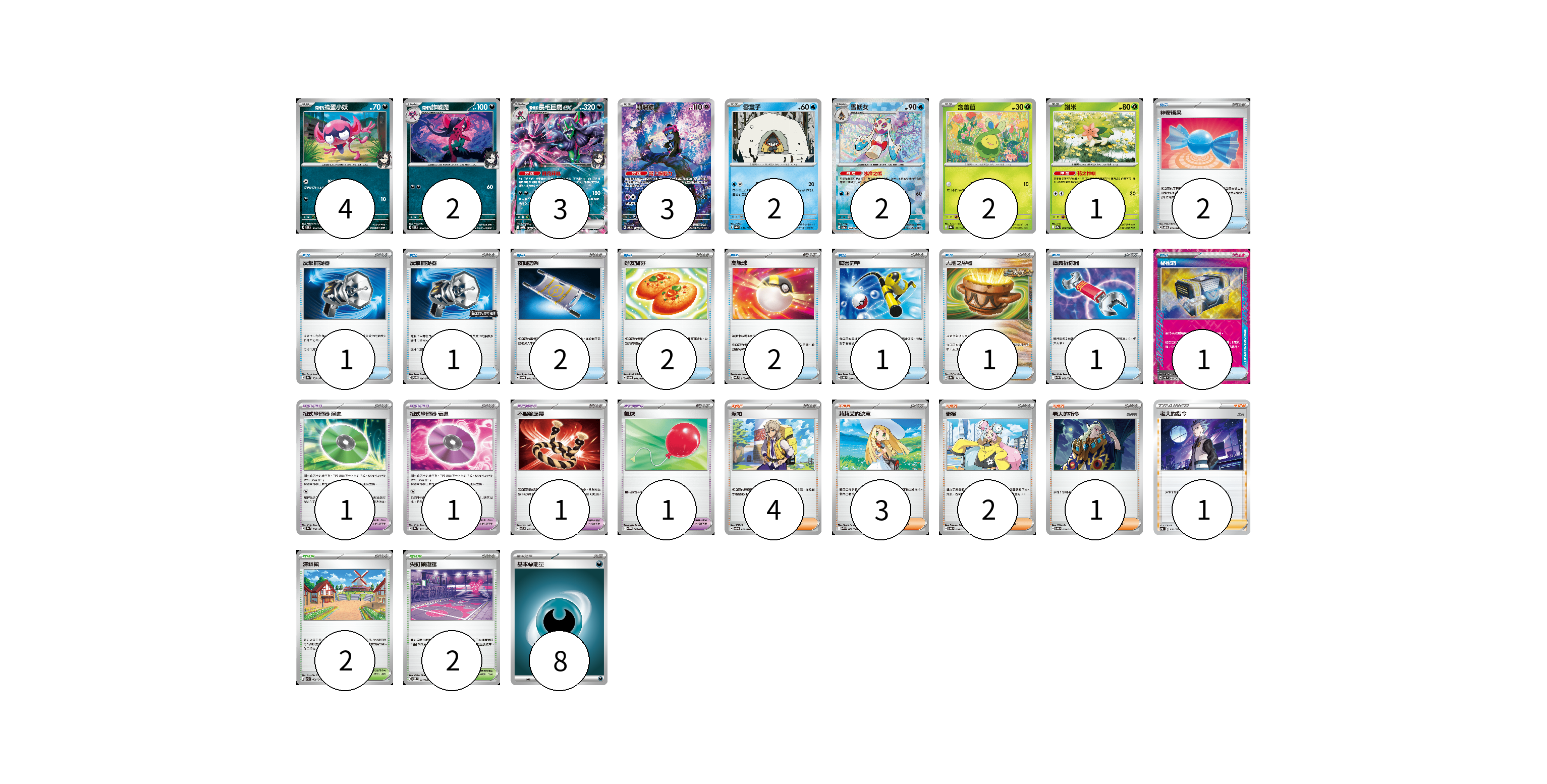 牌組構築方案 以此牌組為基礎新構築牌組 顯示卡面 顯示列表 寶可夢卡(19) 4 2 3 3 2 2 2 1 寶可夢道具(4) 1 1 1 1 物品卡(14) 2 1 1 2 2 2 1 1 1 1 支援者卡(11) 4 3 2 1 1 競技場卡(4) 2 2 能量卡(8) 8 寶可夢卡(19) 卡牌名稱 張數 卡牌名稱 張數 <瑪俐的>搗蛋小妖 SVOM 005/021 04 <瑪俐的>詐唬魔 SVOM 006/021 02 <瑪俐的>長毛巨魔ex SVOM 007/021 03 願增猿 SV6 107/101 03 雪童子 SV8a 037/187 02 雪妖女 SV8a 038/187 02 含羞苞 SV8a 001/187 02 謝米 SV9a 006/063 01 寶可夢道具(4) 卡牌名稱 張數 卡牌名稱 張數 招式學習器 演進 SV8a 160/187 01 招式學習器 衰退 SV8a 161/187 01 不服輸頭帶 SVTL 016/021 01 氣球 SV11B 082/086 01 物品卡(14) 卡牌名稱 張數 卡牌名稱 張數 神奇糖果 SVOD 013/020 02 反擊捕捉器 SV8a 139/187 01 反擊捕捉器 SV-P 136/SV-P 01 夜間擔架 SVOM 016/021 02 好友寶芬 SVOD 011/020 02 高級球 SVQL 015/022 02 厲害釣竿 SVOD 010/020 01 大地之容器 SV8a 143/187 01 道具拆除器 SV11W 080/086 01 秘密箱 SV6 092/101 01 支援者卡(11) 卡牌名稱 張數 卡牌名稱 張數 派帕 SVOD 018/020 04 莉莉艾的決意 M1L 062/063 03 奇樹 SVOD 016/020 02 老大的指令 SVOD 019/020 01 老大的指令(赤日) SVB 024/028 01 競技場卡(4) 卡牌名稱 張數 卡牌名稱 張數 深缽鎮 SVK 039/042 02 尖釘鎮道館 SVOM 021/021 02 能量卡(8) 卡牌名稱 張數 卡牌名稱 張數 基本惡能量 sv-p DAR 08 以此牌組為基礎新構築牌組 牌組編碼 XKwDrO-unfUoX-RnUOTe copy 列印牌組單 牌組編碼已複製 分享至SNS