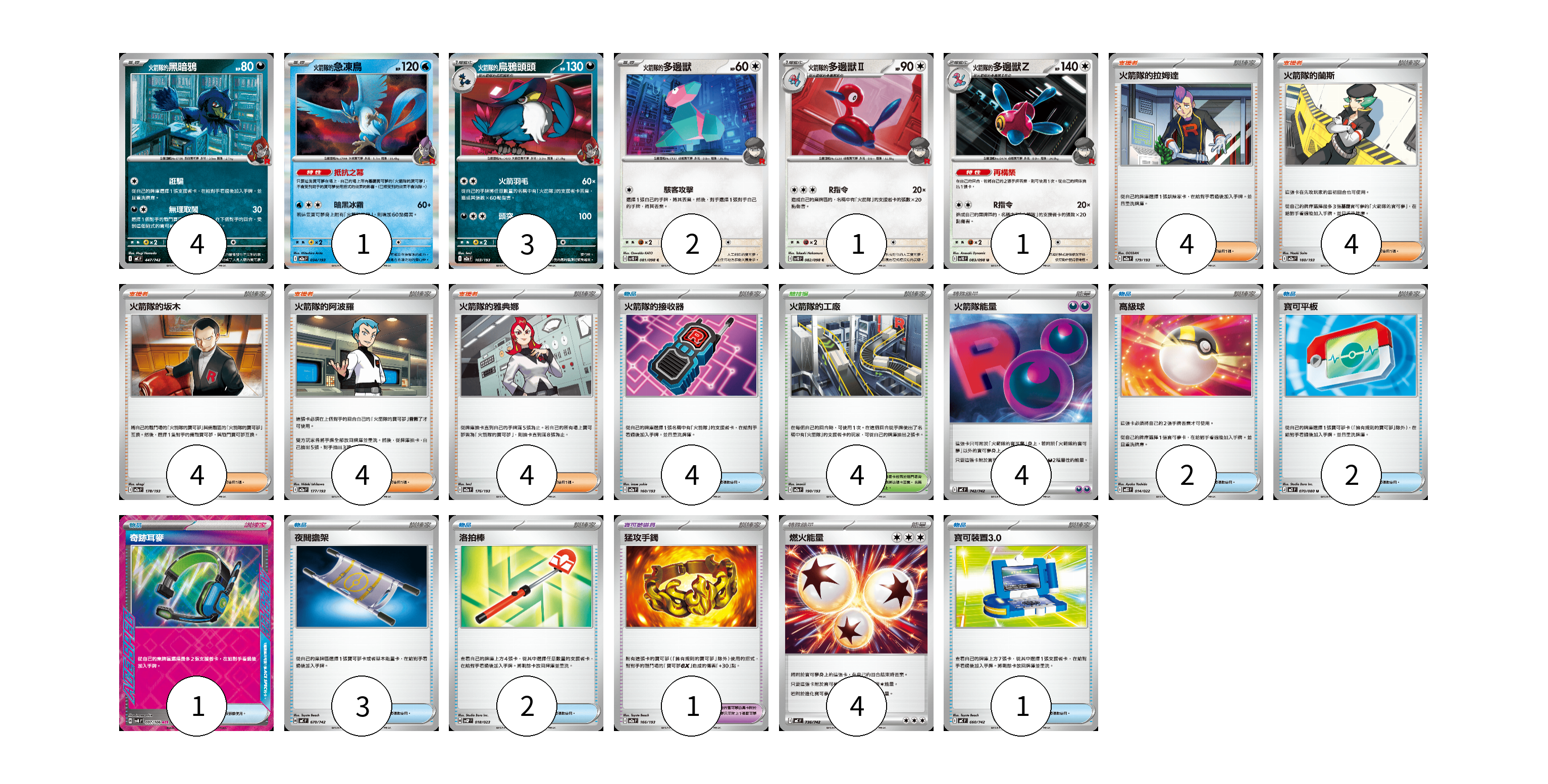 卡牌名稱 張數