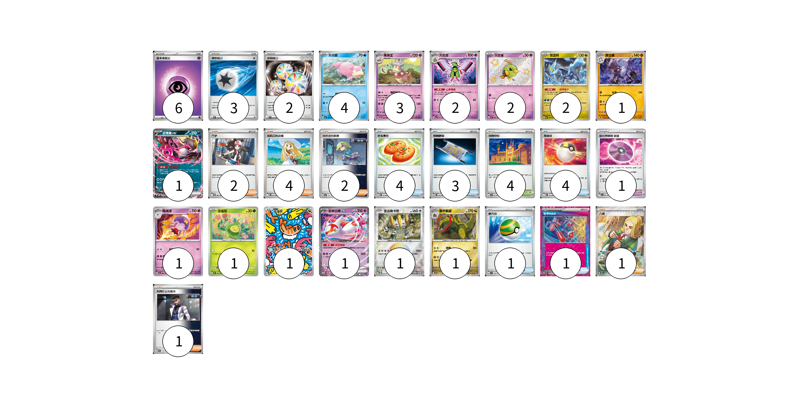 牌組構築方案 以此牌組為基礎新構築牌組 顯示卡面 顯示列表 寶可夢卡(21) 4 3 2 2 2 1 1 1 1 1 1 1 1 寶可夢道具(1) 1 物品卡(13) 4 3 4 1 1 支援者卡(10) 2 4 2 1 1 競技場卡(4) 4 能量卡(11) 6 3 2 寶可夢卡(21) 卡牌名稱 張數 卡牌名稱 張數 呆呆獸 SV4a 036/190 04 呆呆王 SV7 039/102 03 天然鳥 SV4a 079/190 02 天然雀 SV4a 256/190 02 酋雷姆 SV6a 047/064 02 棄世猴 SV8 062/106 01 吉雉雞ex SVOM 009/021 01 隨風球 SV4a 084/190 01 含羞苞 SV8a 001/187 01 米立龍 SV6 112/101 01 拉帝亞斯ex MBD 003/022 01 雷吉奇卡斯 SV8a 132/187 01 雙斧戰龍 SV11B 072/086 01 寶可夢道具(1) 卡牌名稱 張數 卡牌名稱 張數 招式學習器 衰退 SV4K 063/066 01 物品卡(13) 卡牌名稱 張數 卡牌名稱 張數 好友寶芬 MBD 013/022 04 夜間擔架 MBD 016/022 03 高級球 MBD 014/022 04 巢穴球 SVM 133/175 01 釣竿MAX SV8a 142/187 01 支援者卡(10) 卡牌名稱 張數 卡牌名稱 張數 鬥子 SV11W 085/086 02 莉莉艾的決意 MBD 021/022 04 暗碼迷的解讀 SV8a 165/187 02 八朔 SV6 124/101 01 弗圖博士的劇本 SV8a 175/187 01 競技場卡(4) 卡牌名稱 張數 卡牌名稱 張數 夜間學院 SV6a 064/064 04 能量卡(11) 卡牌名稱 張數 卡牌名稱 張數 基本【超】能量 MBD PSY 06 噴射能量 SV8a 185/187 03 反轉能量 SVK 041/042 02 以此牌組為基礎新構築牌組 牌組編碼 XeRZQX-ZJxChY-vdfWhG copy 列印牌組單 牌組編碼已複製 分享至SNS