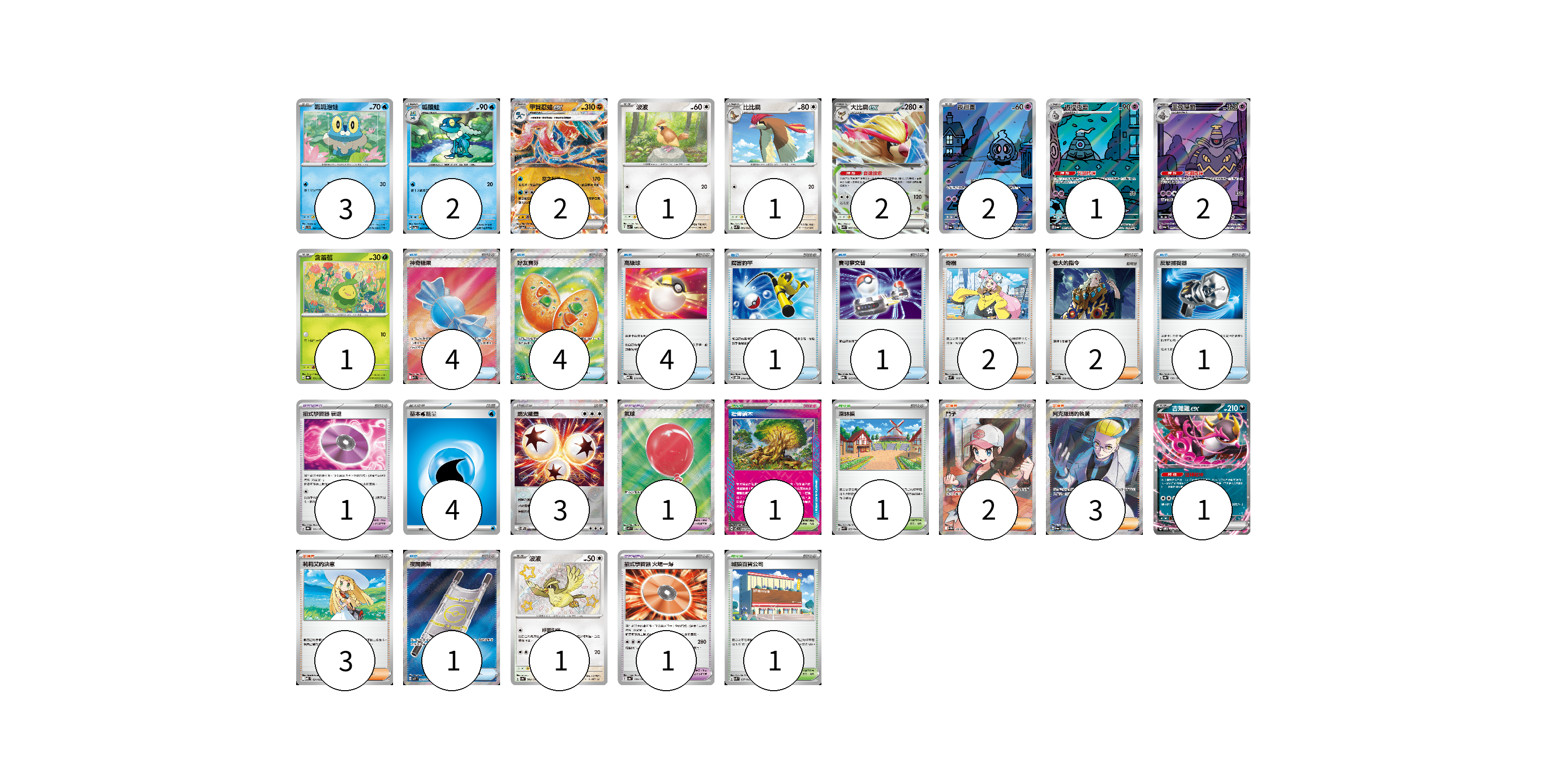 牌組構築方案 以此牌組為基礎新構築牌組 顯示卡面 顯示列表 寶可夢卡(19) 3 2 2 1 1 2 2 1 2 1 1 1 寶可夢道具(3) 1 1 1 物品卡(16) 4 4 4 1 1 1 1 支援者卡(12) 2 2 2 3 3 競技場卡(3) 1 1 1 能量卡(7) 4 3 寶可夢卡(19) 卡牌名稱 張數 卡牌名稱 張數 呱呱泡蛙 SVD 027/139 03 呱頭蛙 SV5a 024/066 02 甲賀忍蛙ex SV5a 045/066 02 波波 SV3 087/108 01 比比鳥 SVK 004/042 01 大比鳥ex SVK 005/042 02 夜巡靈 SV6a 068/064 02 彷徨夜靈 SV6a 069/064 01 黑夜魔靈 SV6a 070/064 02 含羞苞 SV8a 001/187 01 吉雉雞ex SVOM 009/021 01 波波 SV4a 304/190 01 寶可夢道具(3) 卡牌名稱 張數 卡牌名稱 張數 招式學習器 衰退 SV8a 161/187 01 氣球 M1L 084/063 01 招式學習器 火場一爆 SV4a 170/190 01 物品卡(16) 卡牌名稱 張數 卡牌名稱 張數 神奇糖果 M1S 082/063 04 好友寶芬 M1S 081/063 04 高級球 MBD 014/022 04 厲害釣竿 SVOD 010/020 01 寶可夢交替 MBG 015/022 01 反擊捕捉器 SV8a 139/187 01 夜間擔架 M1L 083/063 01 支援者卡(12) 卡牌名稱 張數 卡牌名稱 張數 奇樹 SVM 160/175 02 老大的指令 MBD 020/022 02 鬥子 SV11W 166/086 02 阿克羅瑪的執著 SV6a 083/064 03 莉莉艾的決意 MBD 021/022 03 競技場卡(3) 卡牌名稱 張數 卡牌名稱 張數 壯偉碩木 SV7 101/102 01 深缽鎮 SVK 039/042 01 城鎮百貨公司 SVK 037/042 01 能量卡(7) 卡牌名稱 張數 卡牌名稱 張數 基本水能量 sv-p WAT 04 燃火能量 SV11W 086/086 03 以此牌組為基礎新構築牌組 牌組編碼 XkuTUq-ozJonL-oSJSuW copy 列印牌組單 牌組編碼已複製 分享至SNS