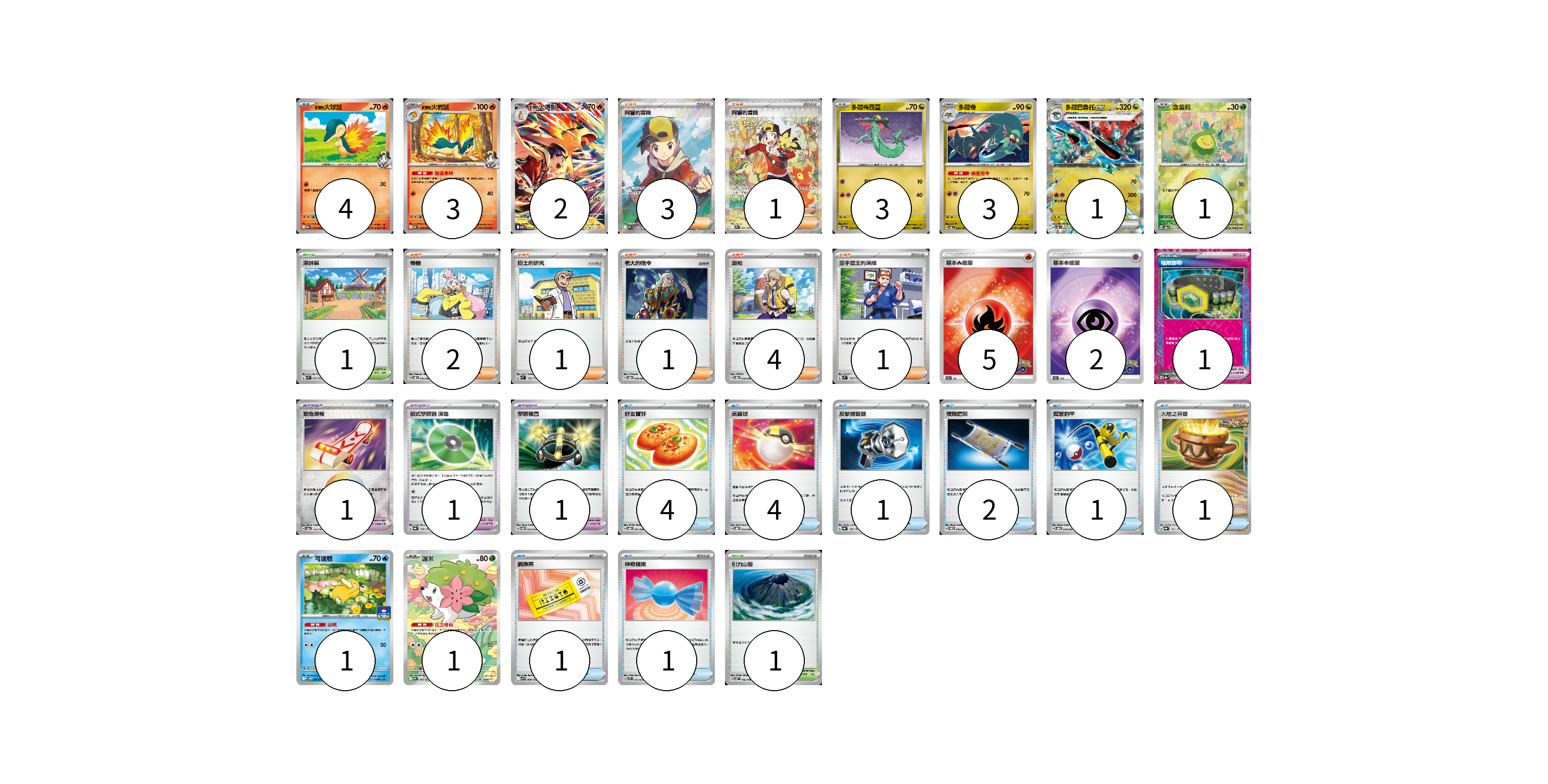 牌組構築方案 以此牌組為基礎新構築牌組 顯示卡面 顯示列表 寶可夢卡(19) 4 3 2 3 3 1 1 1 1 寶可夢道具(4) 1 1 1 1 物品卡(15) 4 4 1 2 1 1 1 1 支援者卡(13) 3 1 2 1 1 4 1 競技場卡(2) 1 1 能量卡(7) 5 2 寶可夢卡(19) 卡牌名稱 張數 卡牌名稱 張數 <阿響的>火球鼠 SV9a 015/063 04 <阿響的>火岩鼠 SV9a 016/063 03 <阿響的>火爆獸 SV9a 070/063 02 多龍梅西亞 SV6 079/101 03 多龍奇 SV6 080/101 03 多龍巴魯托ex SV6 081/101 01 含羞苞 SV8a 001/187 01 可達鴨 SV-P 220/SV-P 01 謝米 SV9a 066/063 01 寶可夢道具(4) 卡牌名稱 張數 卡牌名稱 張數 極限腰帶 SV8a 159/187 01 緊急滑板 SV8a 153/187 01 招式學習器 演進 SV8a 160/187 01 學習裝置 SVTM 016/022 01 物品卡(15) 卡牌名稱 張數 卡牌名稱 張數 好友寶芬 SVOD 011/020 04 高級球 SVOD 012/020 04 反擊捕捉器 SV8a 139/187 01 夜間擔架 SVOM 016/021 02 厲害釣竿 SVOD 010/020 01 大地之容器 SV8a 143/187 01 調換票 SV9 090/100 01 神奇糖果 SVTS 015/022 01 支援者卡(13) 卡牌名稱 張數 卡牌名稱 張數 阿響的冒險 SV9a 084/063 03 阿響的冒險 SV9a 089/063 01 奇樹 SVOD 016/020 02 博士的研究 SVM 162/175 01 老大的指令 SVOD 019/020 01 派帕 SVOD 018/020 04 空手道王的演練 SVM 150/175 01 競技場卡(2) 卡牌名稱 張數 卡牌名稱 張數 深缽鎮 SVK 039/042 01 引力山岳 SV8 106/106 01 能量卡(7) 卡牌名稱 張數 卡牌名稱 張數 基本火能量 S10b FIR 05 基本超能量 S10b PSY 02 以此牌組為基礎新構築牌組 牌組編碼 YPaGLR-YksoDM-Pmnvqt copy 列印牌組單 牌組編碼已複製 分享至SNS