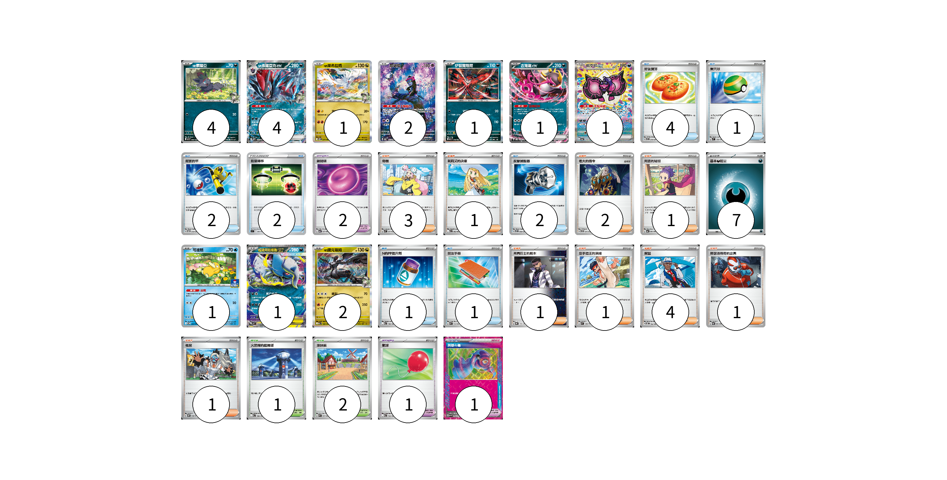 牌組構築方案 以此牌組為基礎新構築牌組 顯示卡面 顯示列表 寶可夢卡(18) 4 4 1 2 1 1 1 1 1 2 寶可夢道具(4) 2 1 1 物品卡(13) 4 1 2 2 2 1 1 支援者卡(15) 3 1 2 1 1 1 4 1 1 競技場卡(3) 1 2 能量卡(7) 7 寶可夢卡(18) 卡牌名稱 張數 卡牌名稱 張數 N的索羅亞 SV9 060/100 04 N的索羅亞克ex SV9 061/100 04 N的萊希拉姆 SV9 074/100 01 願增猿 SV6 107/101 02 伊裴爾塔爾 M1L 040/063 01 吉雉雞ex SVOM 009/021 01 桃歹郎ex SV8a 219/187 01 可達鴨 SV-P 220/SV-P 01 超級阿勃梭魯ex M1L 038/063 01 N的捷克羅姆 M2a 129/193 02 寶可夢道具(4) 卡牌名稱 張數 卡牌名稱 張數 鎖鏈糬 SV6a 057/064 02 氣球 M2a 165/193 01 英雄斗篷 SV5M 064/071 01 物品卡(13) 卡牌名稱 張數 卡牌名稱 張數 好友寶芬 SVTL 010/021 04 巢穴球 SVM 133/175 01 厲害釣竿 SVTM 010/022 02 能量轉移 SI 366/414 02 反擊捕捉器 SVTS 009/022 02 N的PP提升劑 M2a 146/193 01 朋友手冊 SVK 014/042 01 支援者卡(15) 卡牌名稱 張數 卡牌名稱 張數 奇樹 SVK 031/042 03 莉莉艾的決意 M1L 062/063 01 老大的指令 SVTH 017/018 02 阿杏的秘招 SV6a 060/064 01 弗圖博士的劇本 SV8a 175/187 01 空手道王的演練 SVM 145/175 01 席藍 SV8 102/106 04 庫瑟洛斯奇的企圖 SV6a 062/064 01 枇琶 SV5K 068/071 01 競技場卡(3) 卡牌名稱 張數 卡牌名稱 張數 火箭隊的監視塔 M2a 189/193 01 深缽鎮 SVK 039/042 02 能量卡(7) 卡牌名稱 張數 卡牌名稱 張數 基本【惡】能量 MBG DAR 07 以此牌組為基礎新構築牌組 牌組編碼 ZDZsxT-MTsOGb-BjuYMZ copy 列印牌組單 牌組編碼已複製 分享至SNS