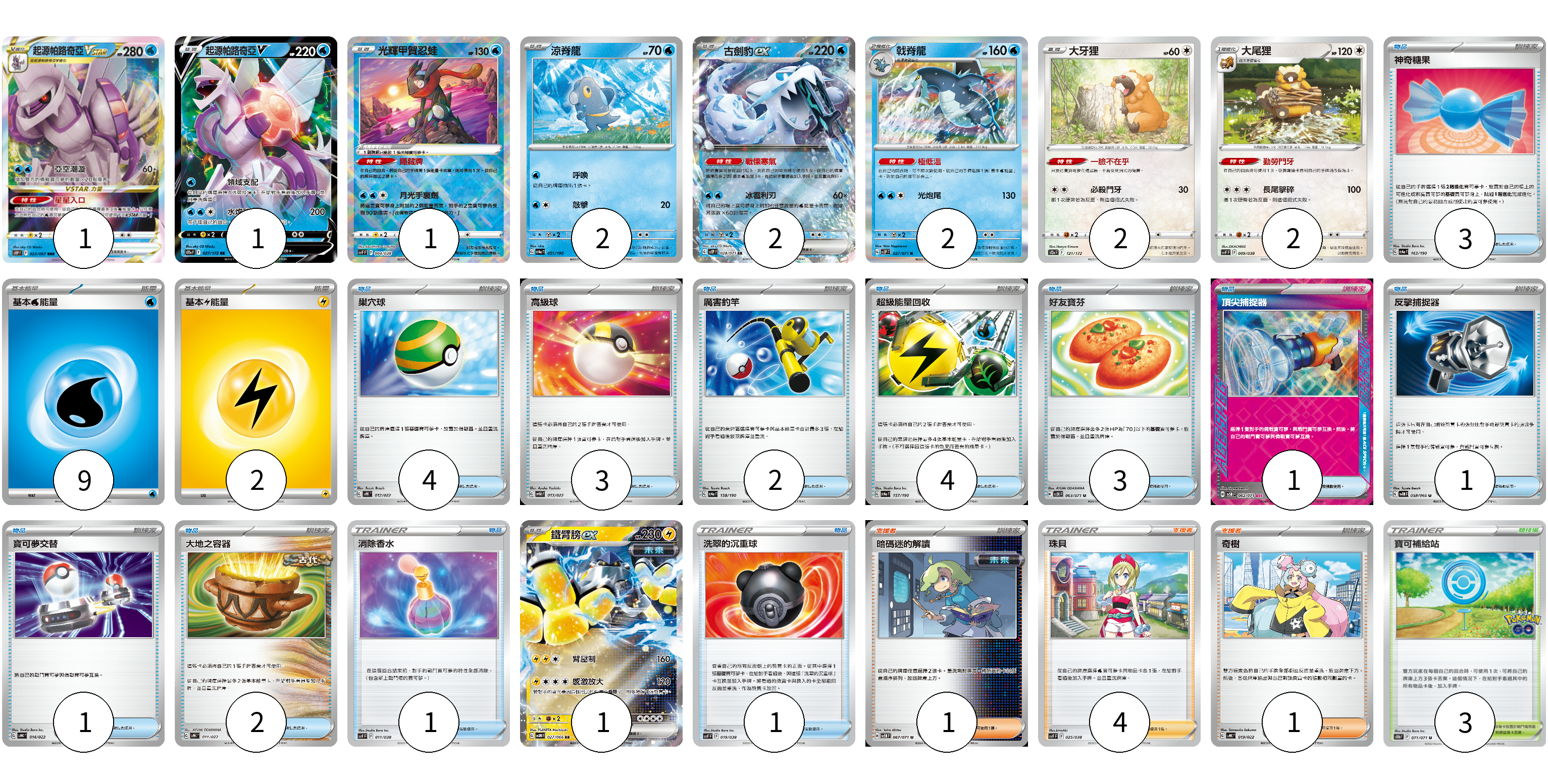 牌組構築方案 以此牌組為基礎新構築牌組 顯示卡面 顯示列表 寶可夢卡(14) 1 1 1 2 2 2 2 2 1 物品卡(26) 3 4 3 2 4 3 1 1 1 2 1 1 支援者卡(6) 1 4 1 競技場卡(3) 3 能量卡(11) 9 2 寶可夢卡(14) 卡牌名稱 張數 卡牌名稱 張數 起源帕路奇亞VSTAR S10P 023/067 01 起源帕路奇亞V S12a 027/172 01 光輝甲賀忍蛙 SVF 004/038 01 涼脊龍 SV4a 051/190 02 古劍豹ex SV2P 028/071 02 戟脊龍 SV2P 027/071 02 大牙狸 S12a 121/172 02 大尾狸 SVF 009/038 02 鐵臂膀ex SV4M 027/066 01 物品卡(26) 卡牌名稱 張數 卡牌名稱 張數 神奇糖果 SV4a 163/190 03 巢穴球 SVHK 012/022 04 高級球 SVHM 013/022 03 厲害釣竿 SV4a 158/190 02 超級能量回收 SV4a 157/190 04 好友寶芬 SV5K 063/071 03 頂尖捕捉器 SV5M 062/071 01 反擊捕捉器 SV4M 059/066 01 寶可夢交替 SVHK 014/022 01 大地之容器 SVHK 011/022 02 消除香水 SVF 011/038 01 洗翠的沉重球 SVF 019/038 01 支援者卡(6) 卡牌名稱 張數 卡牌名稱 張數 暗碼迷的解讀 SV5M 067/071 01 珠貝 SVF 025/038 04 奇樹 SVHK 019/022 01 競技場卡(3) 卡牌名稱 張數 卡牌名稱 張數 寶可補給站 S10b 071/071 03 能量卡(11) 卡牌名稱 張數 卡牌名稱 張數 基本【水】能量 SVD WAT 09 基本【雷】能量 SVC LIG 02 以此牌組為基礎新構築牌組 牌組編碼 Zbiidt-rJvpNJ-ICkXQR copy 列印牌組單 牌組編碼已複製 分享至SNS